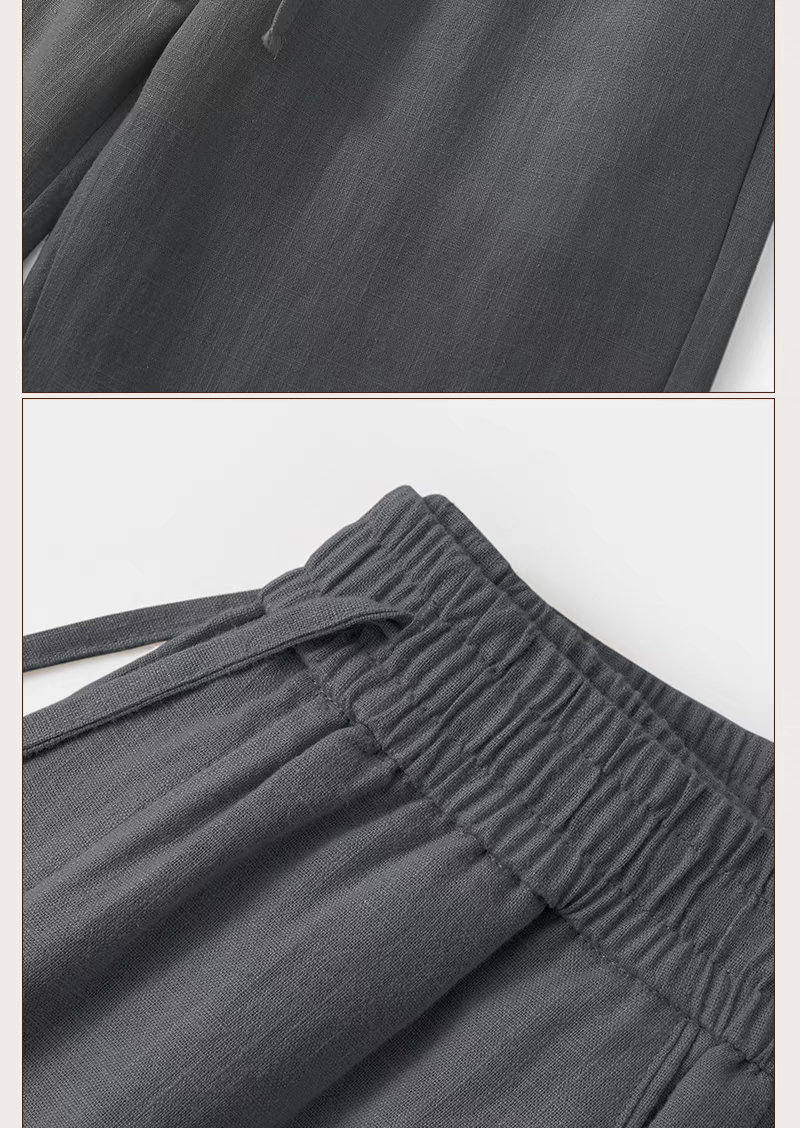 亚麻裤炭灰色棉麻裤子宽松直筒裤夏季薄款长裤男士垂感休闲裤