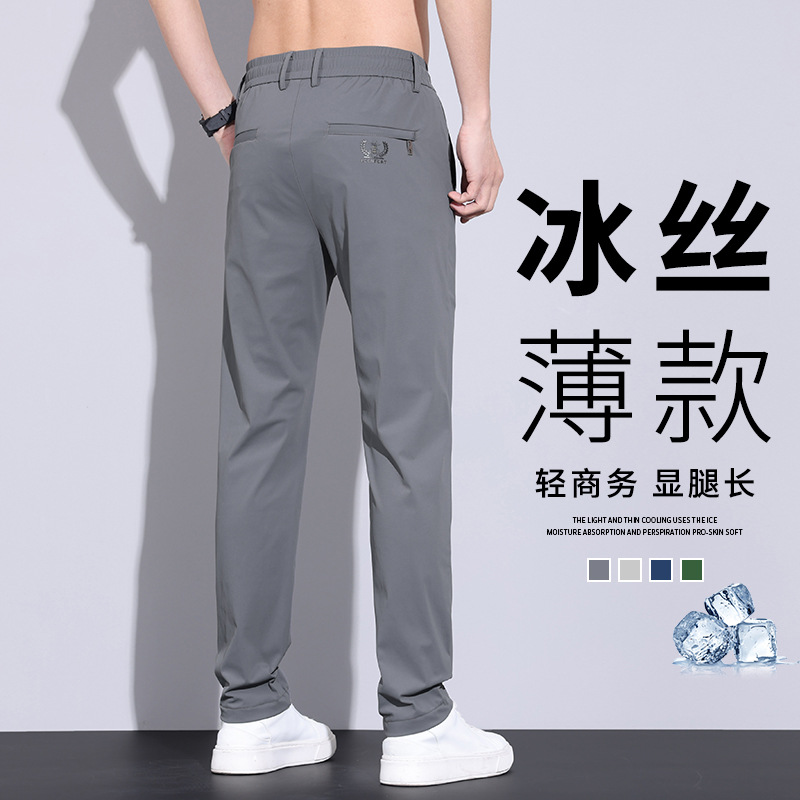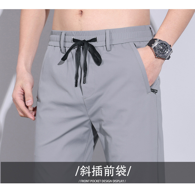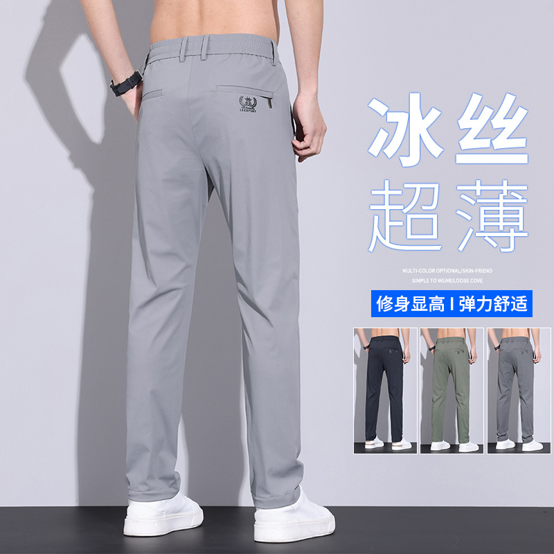 男士休闲裤夏季新款薄款冰丝长裤宽松直筒空调速干运动裤子潮牌男