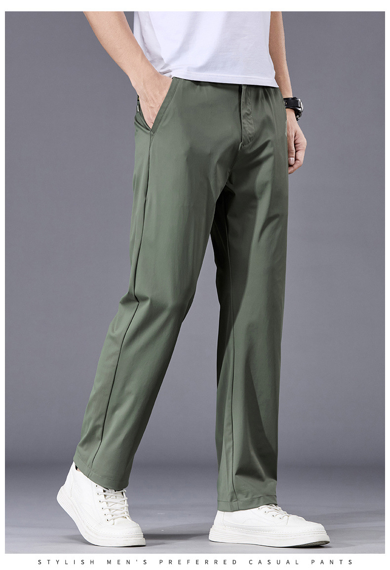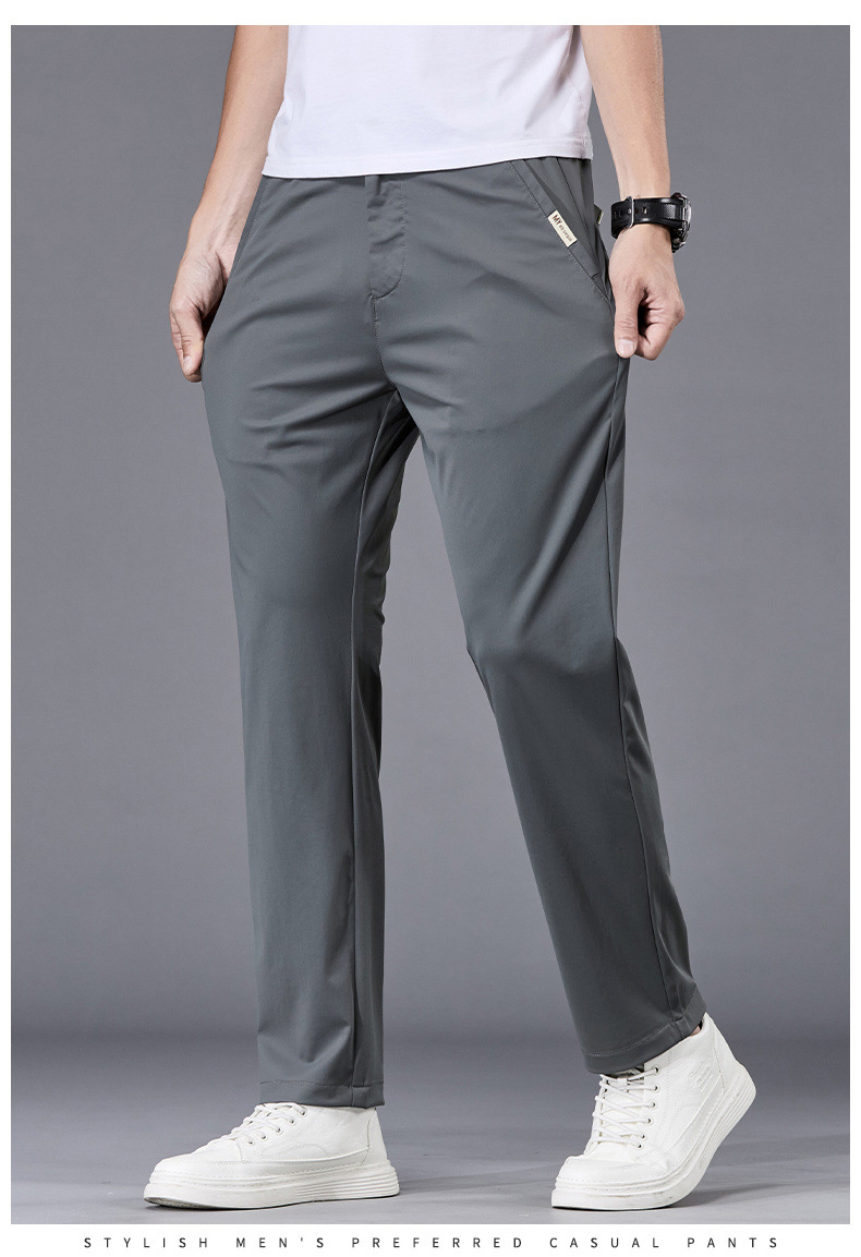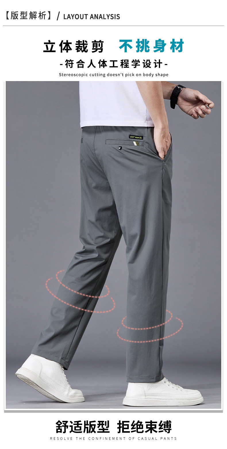 2025年春夏新款冰丝直筒休闲裤男潮流时尚舒适四面弹面料休闲裤子