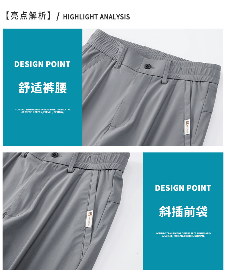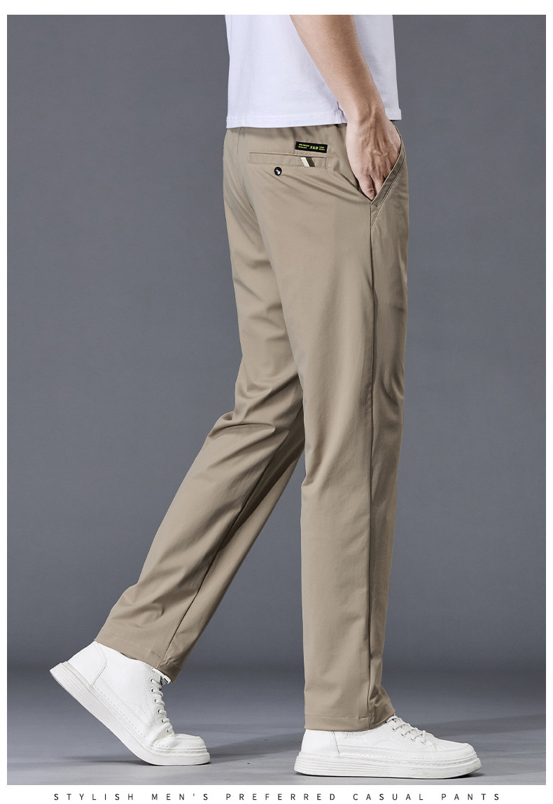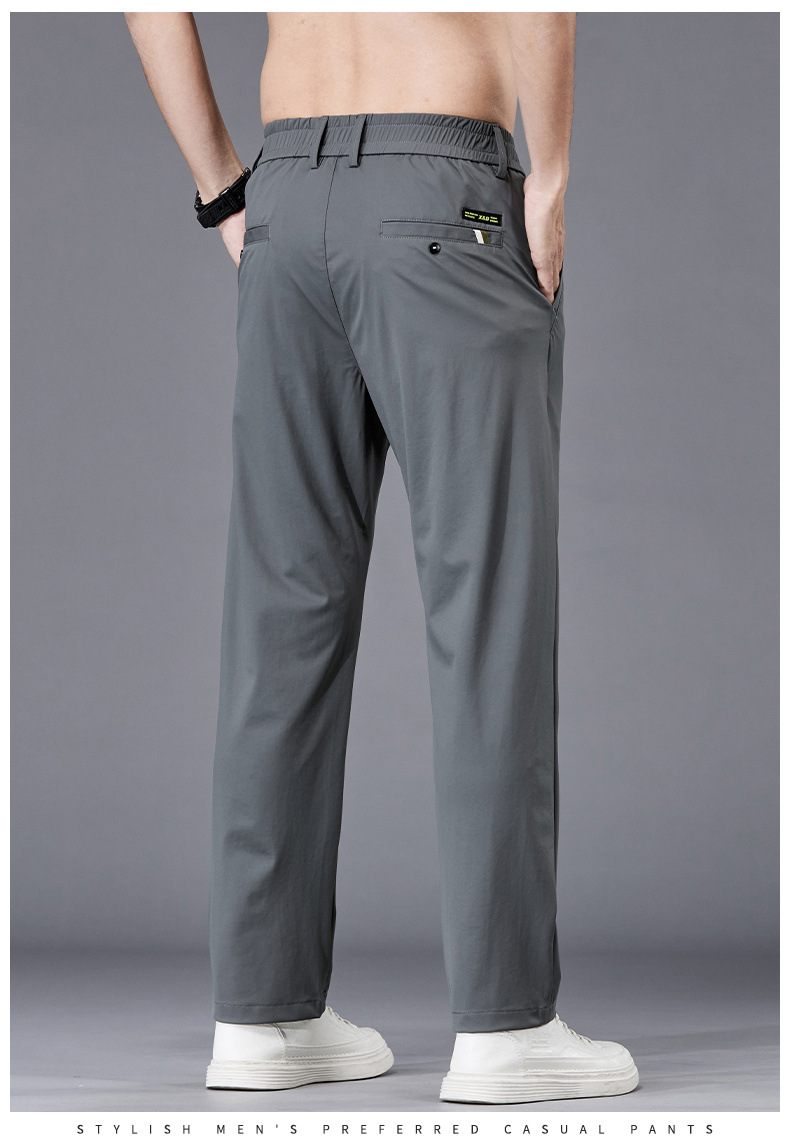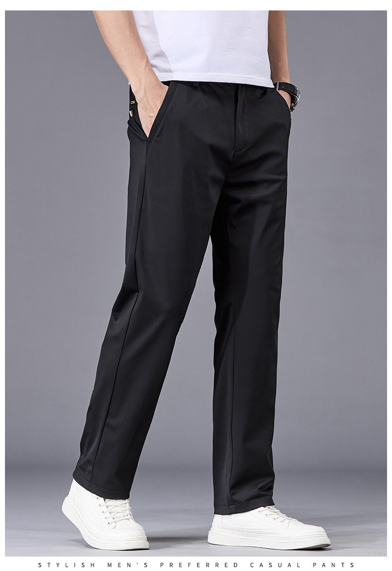 2025年春夏新款冰丝直筒休闲裤男潮流时尚舒适四面弹面料休闲裤子