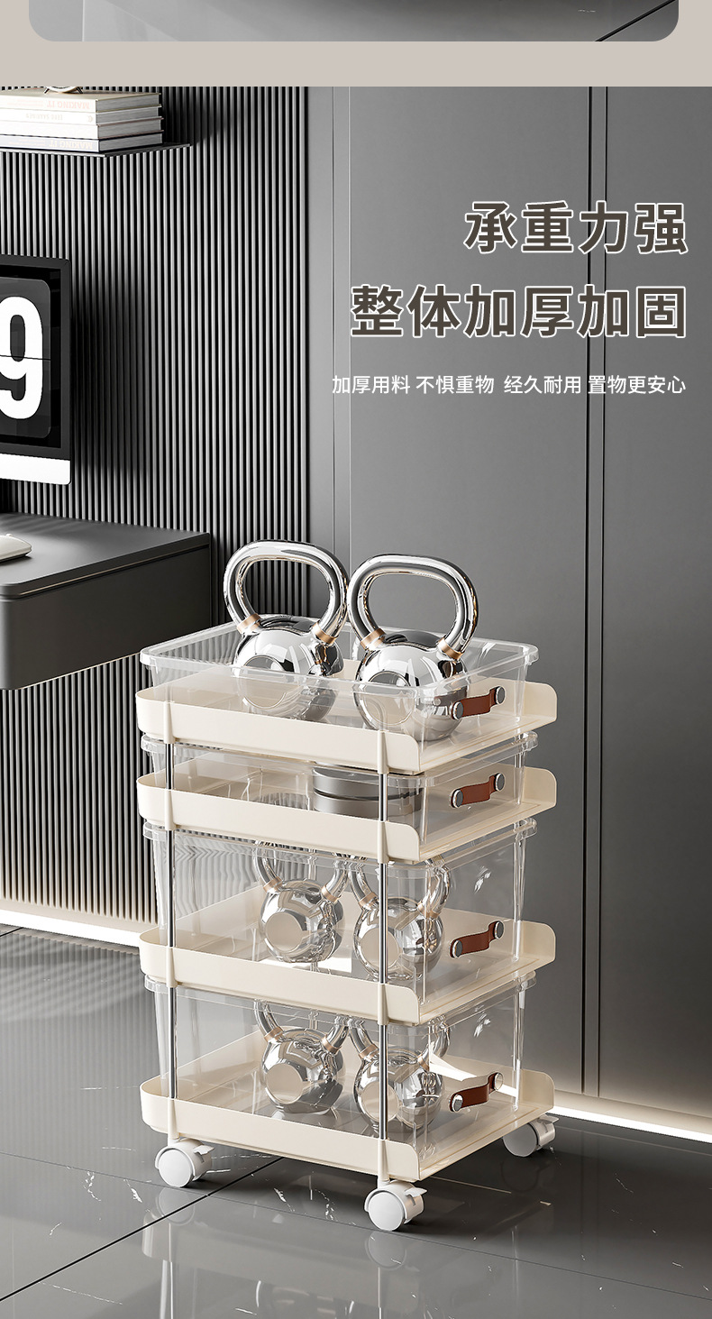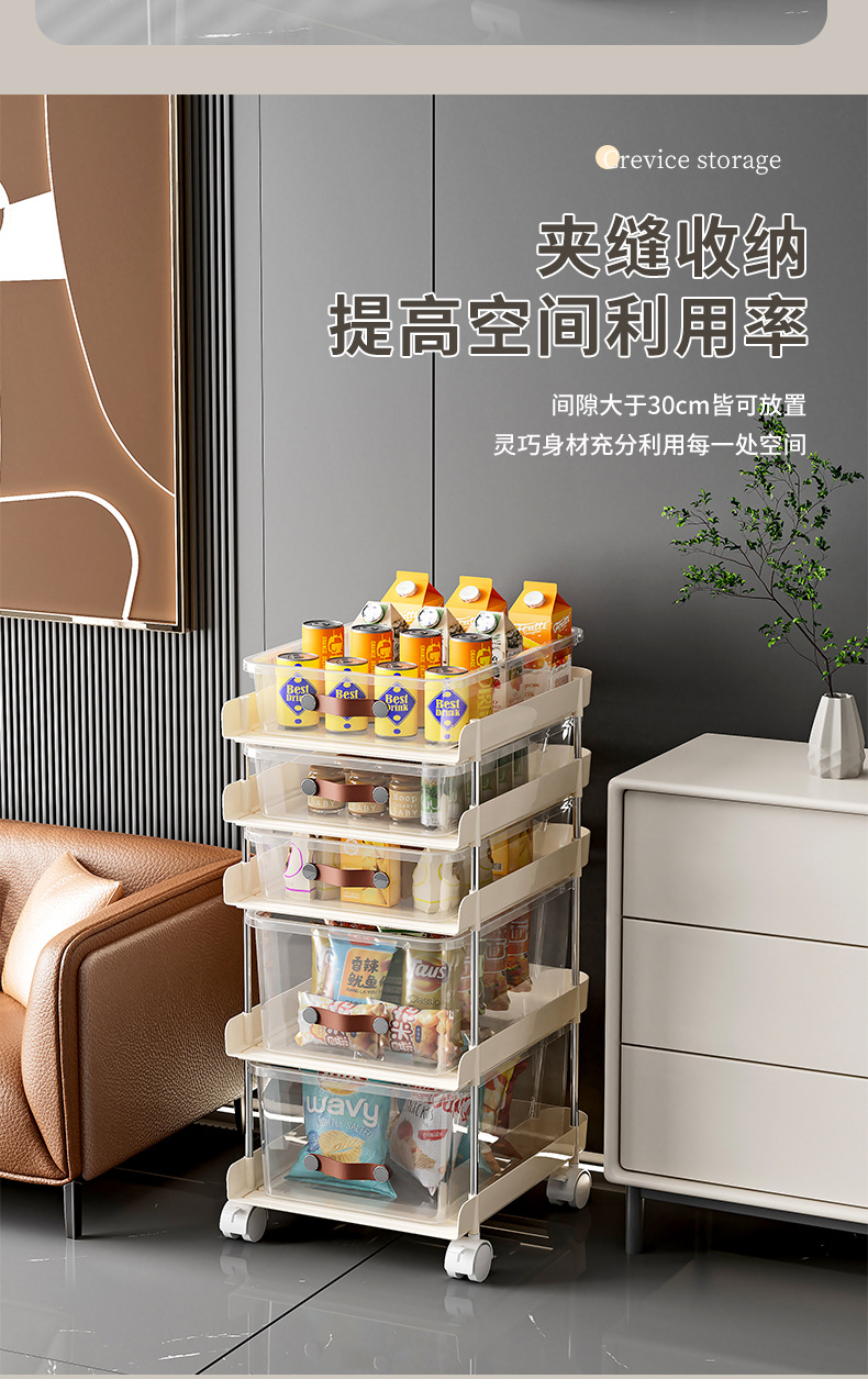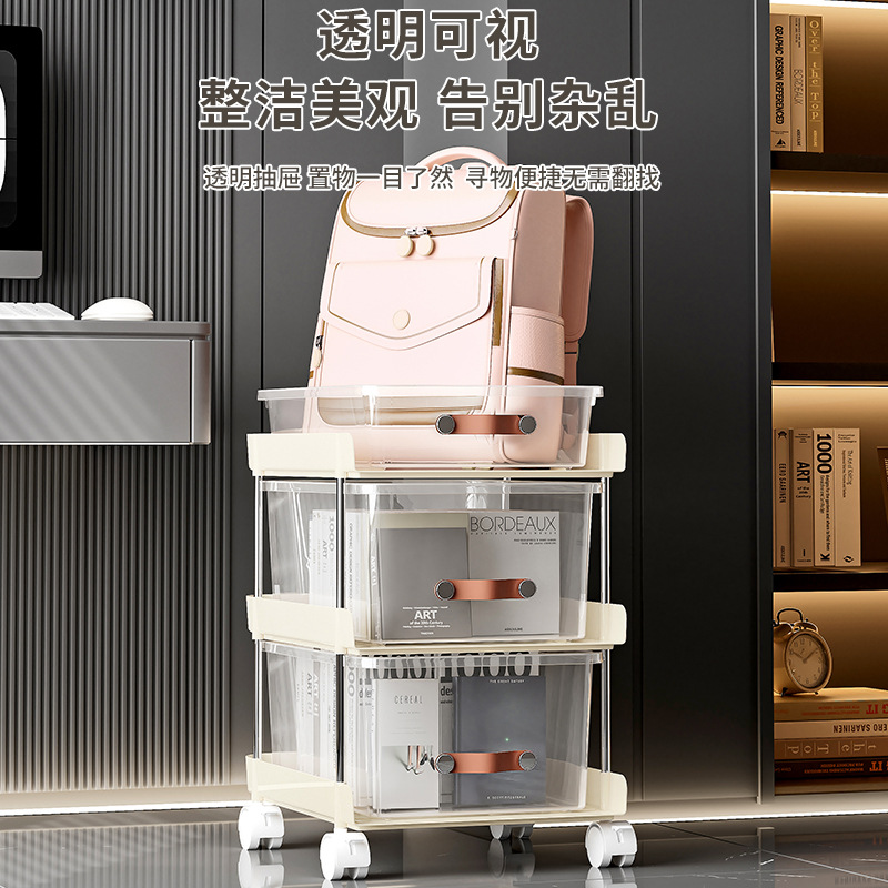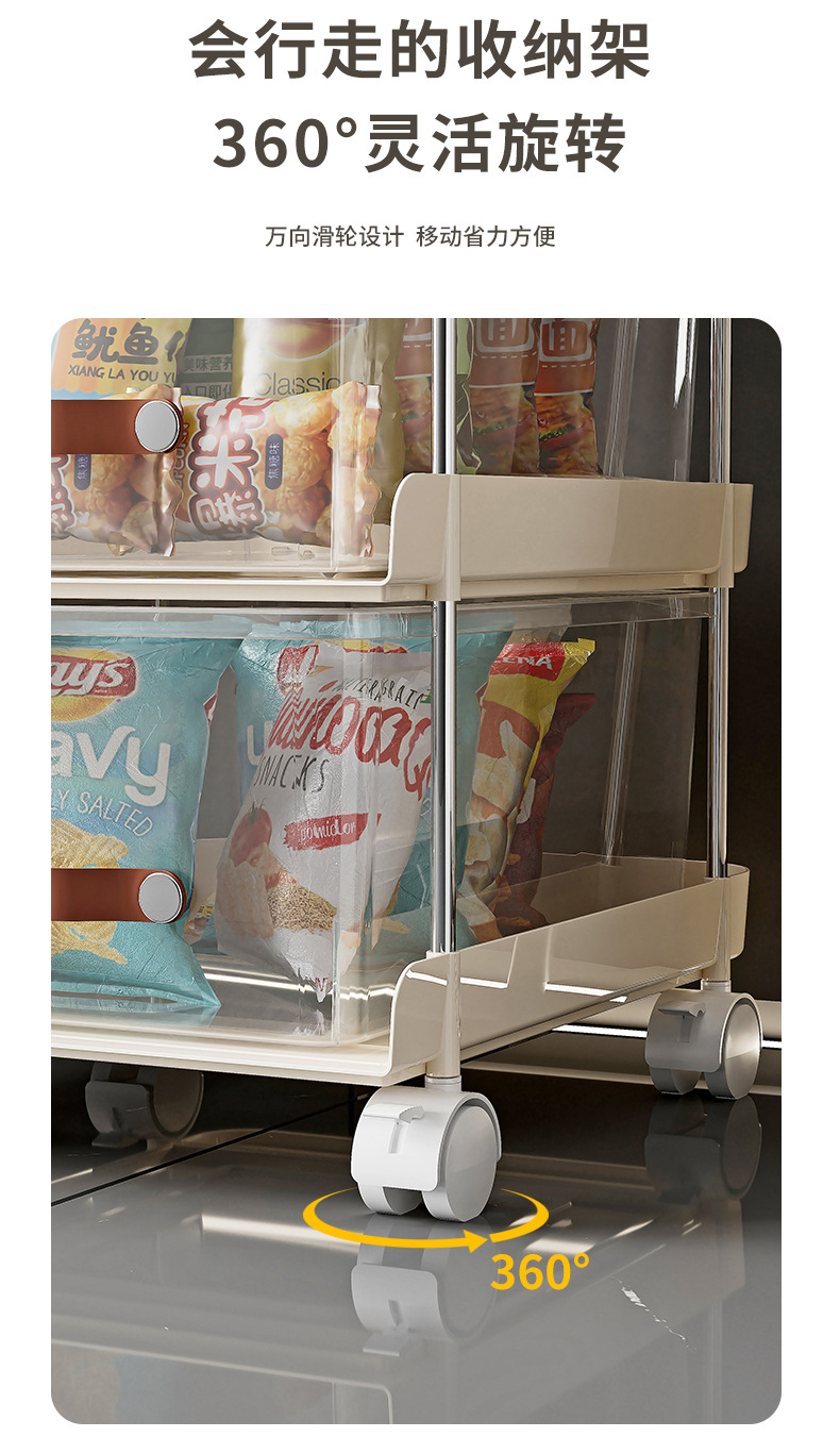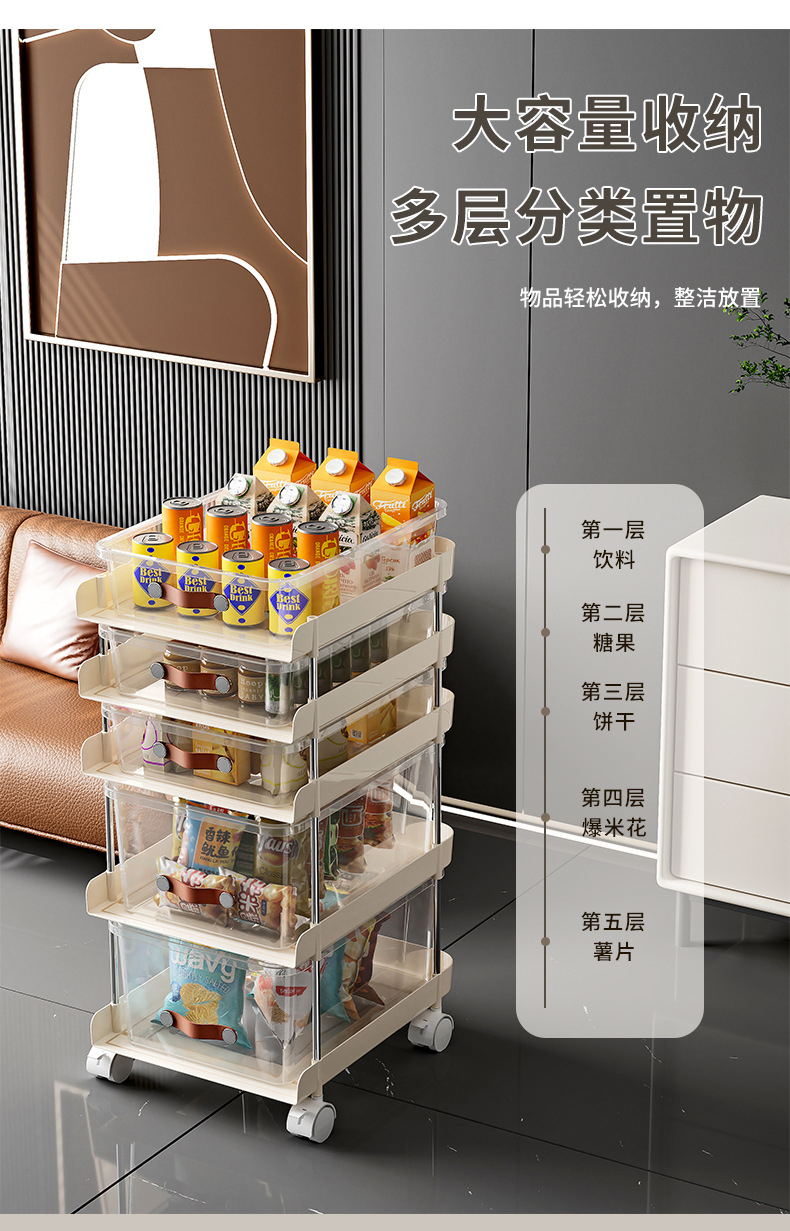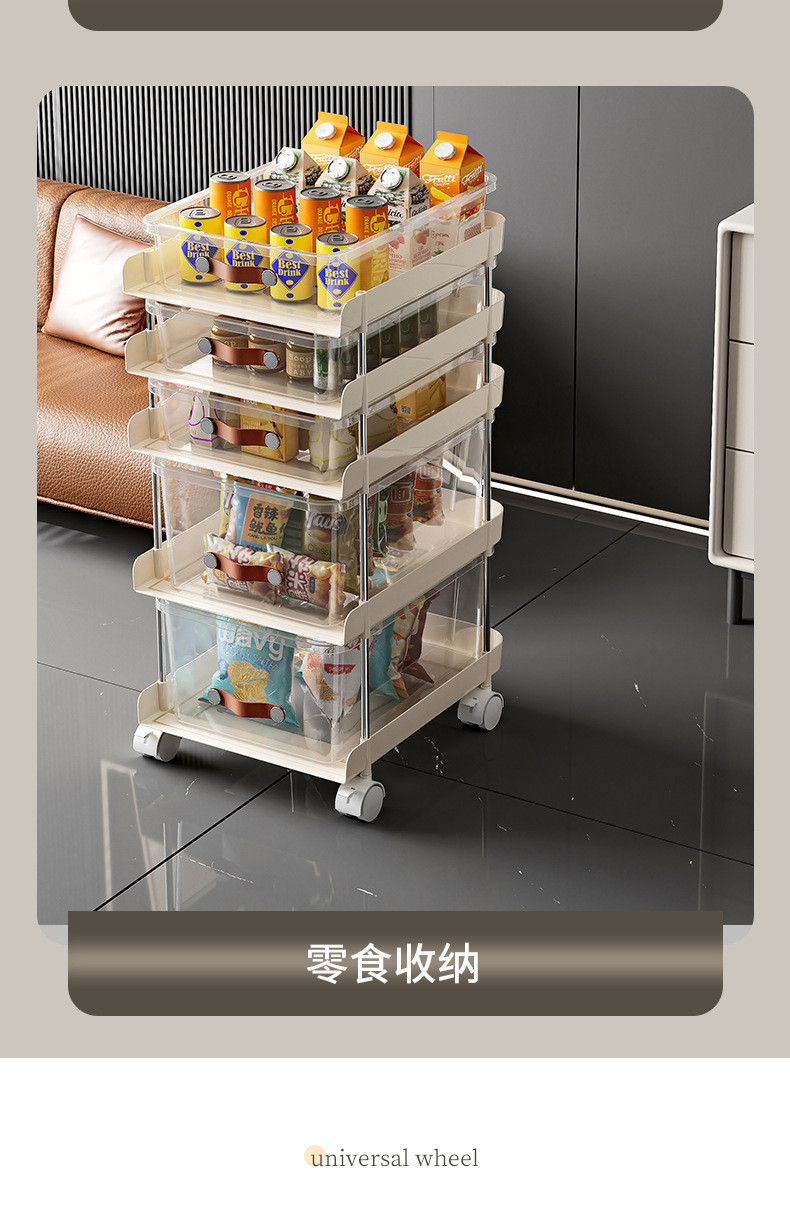 透明亚克力小推车置物架带滚款多层落地移动收纳架零食收纳储物架