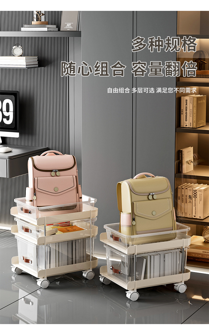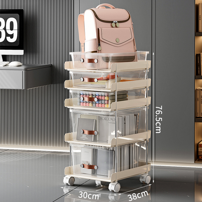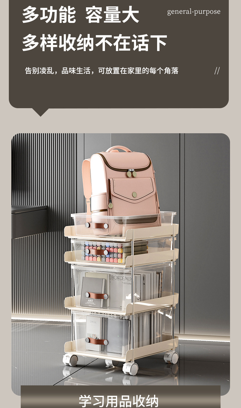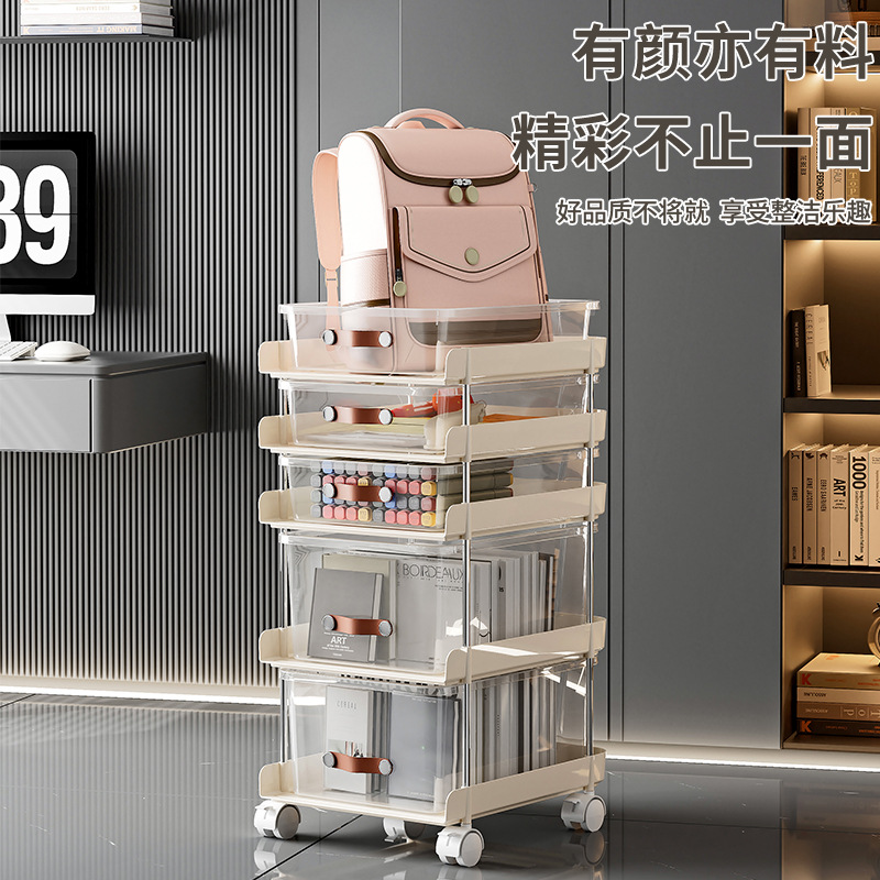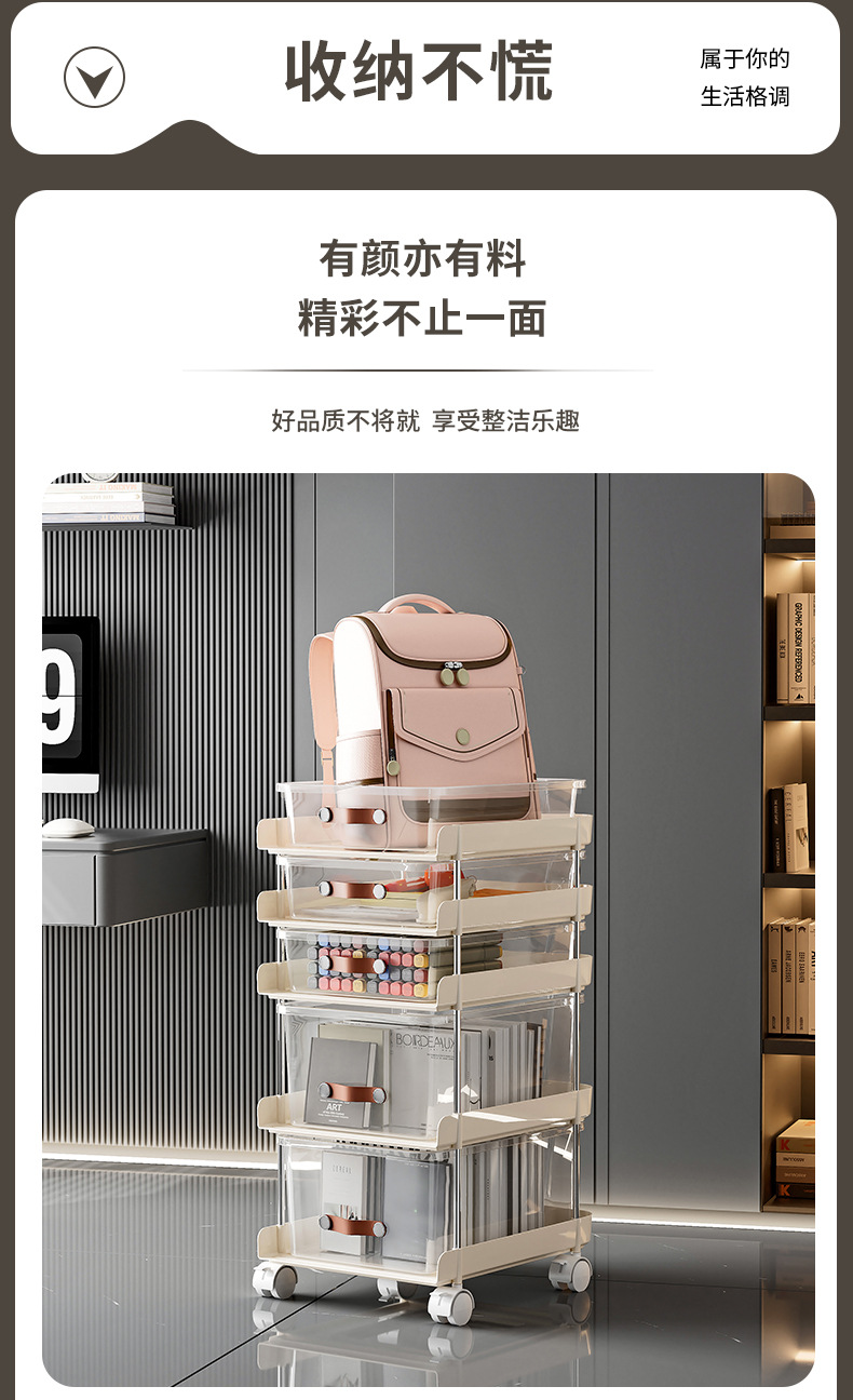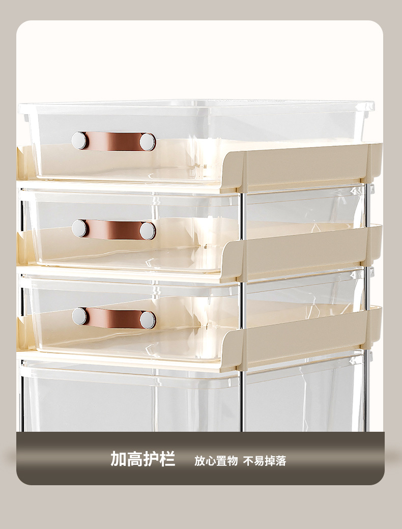 透明亚克力小推车置物架带滚款多层落地移动收纳架零食收纳储物架