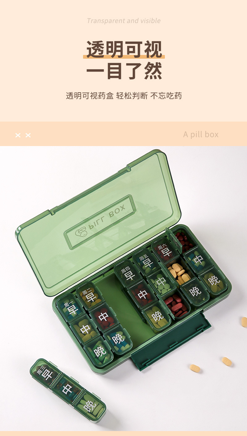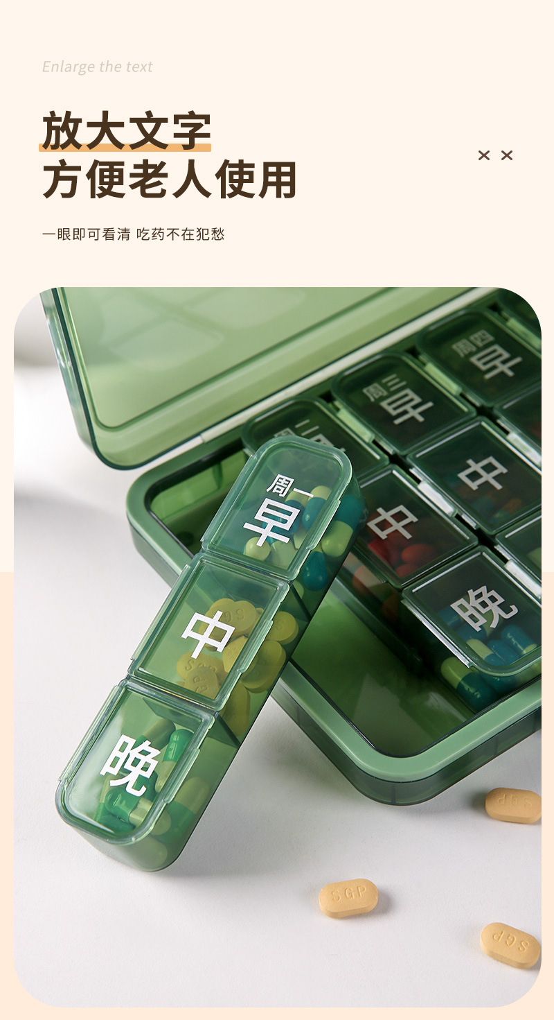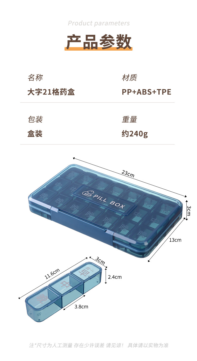 21格大字药盒7天分类随身便携药盒早中晚一周分类旅行药品收纳盒