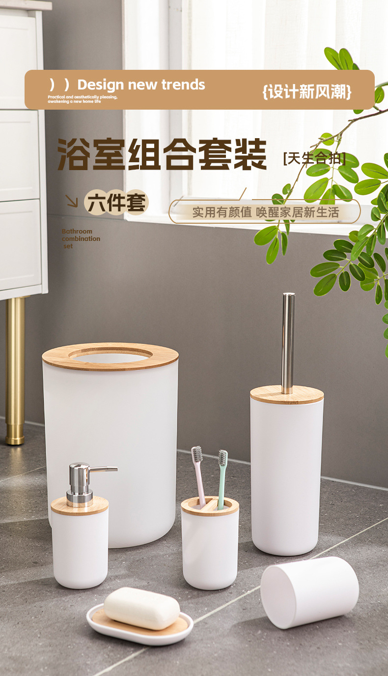 卫浴套装家用浴室卫生间清洁工具洗漱用品垃圾桶液压杯皂盒牙刷架