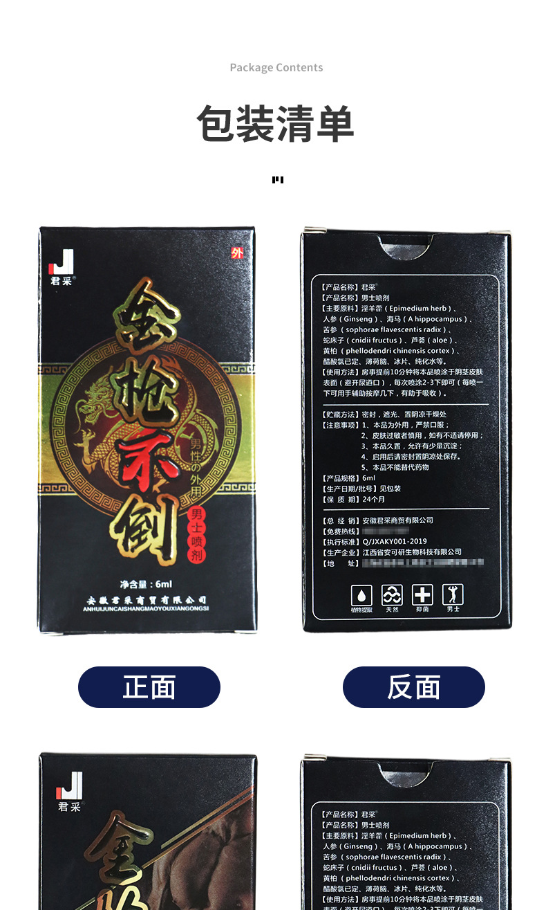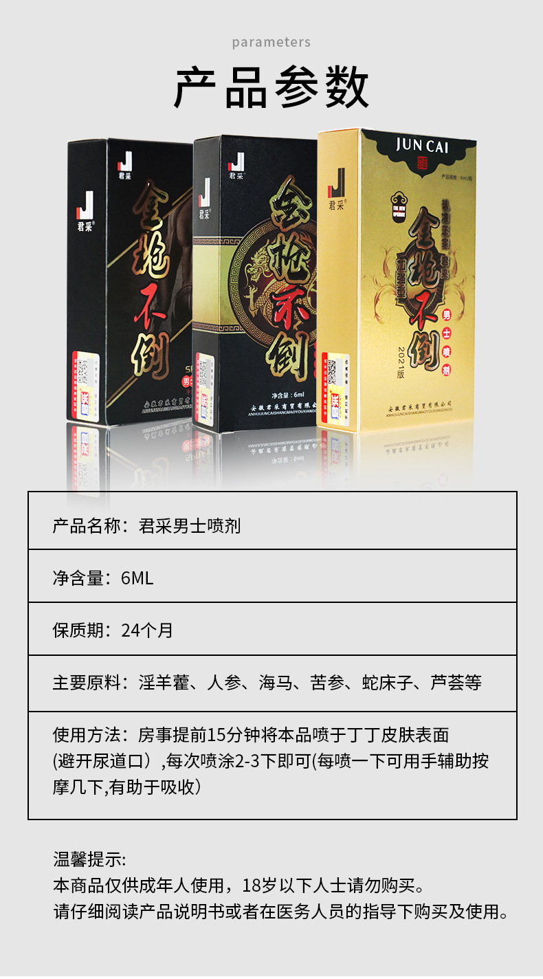 君采金枪不倒男士外用喷剂6ml房事神油喷雾情趣保健性用品代批发