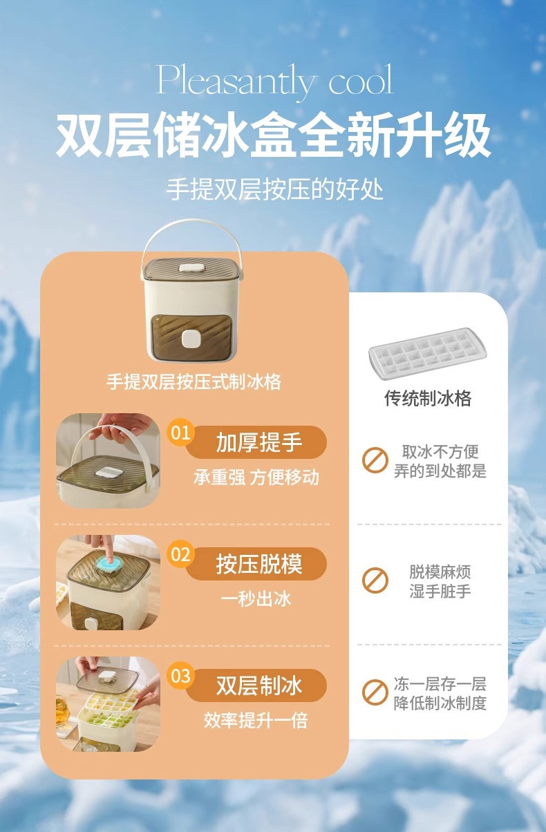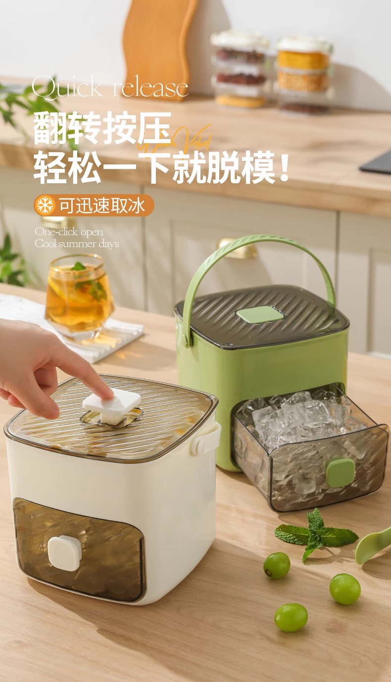 T5258按压式冰桶手提家用易脱膜大容量储冰制冰盒冰块模具