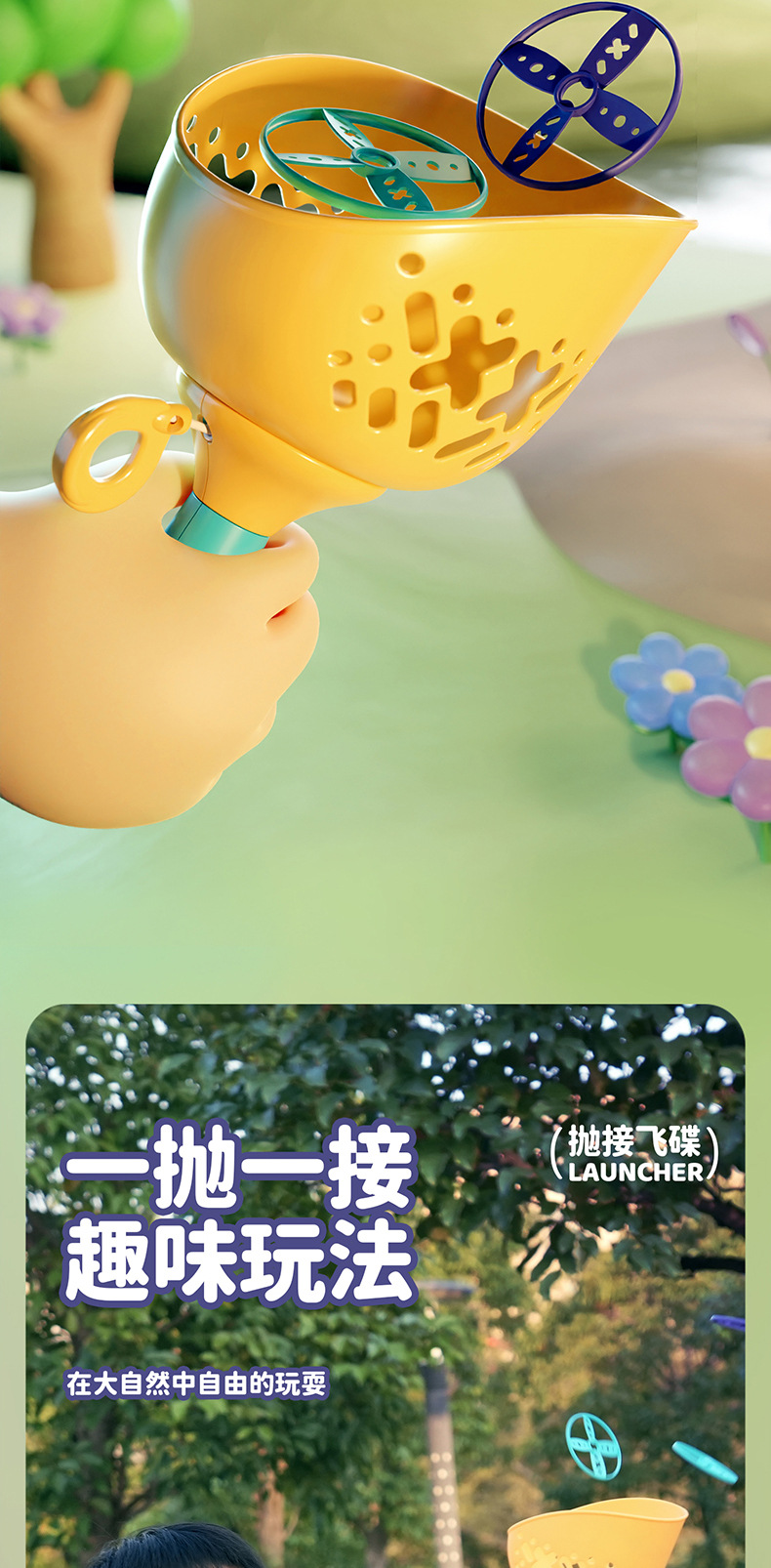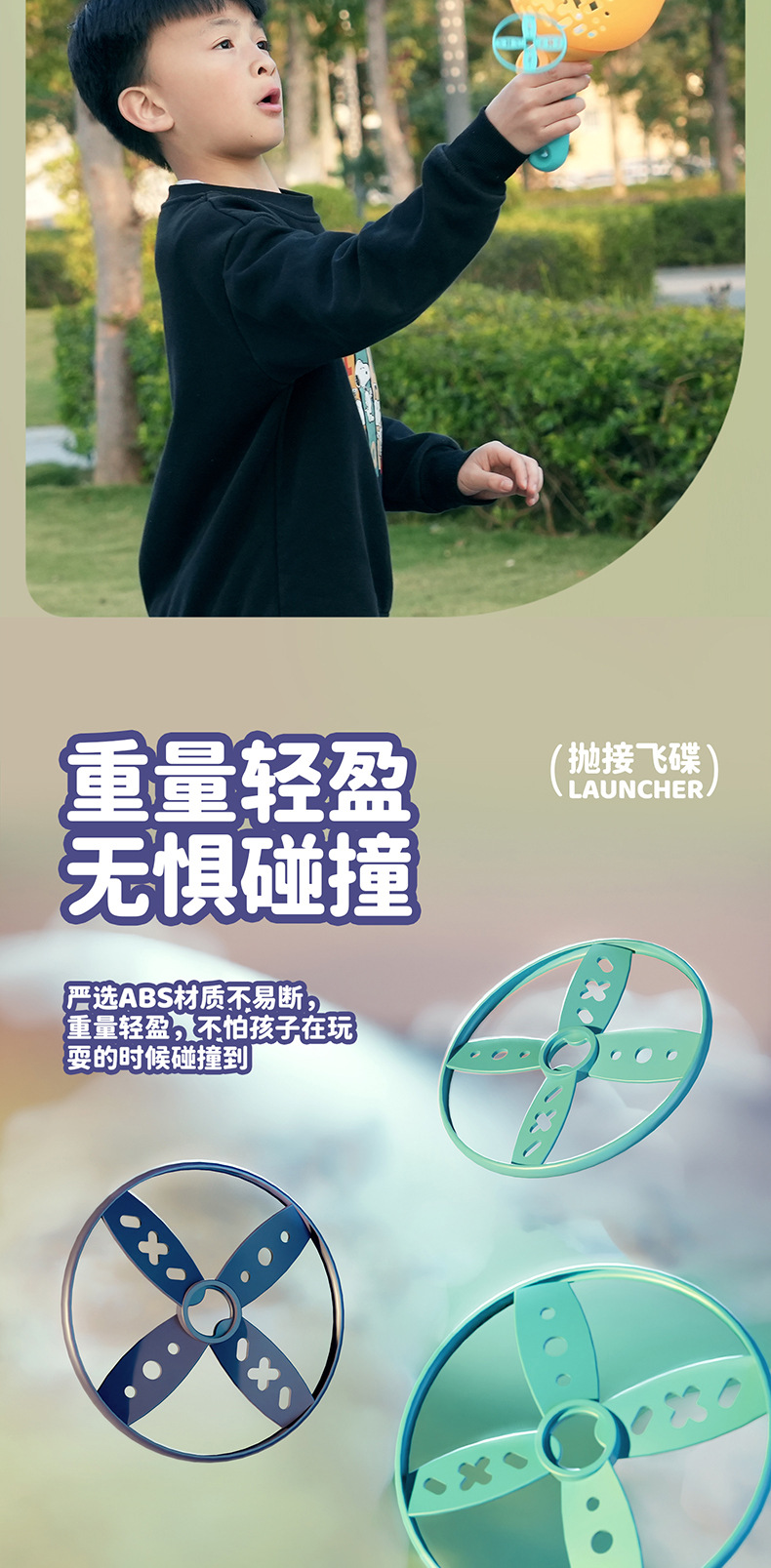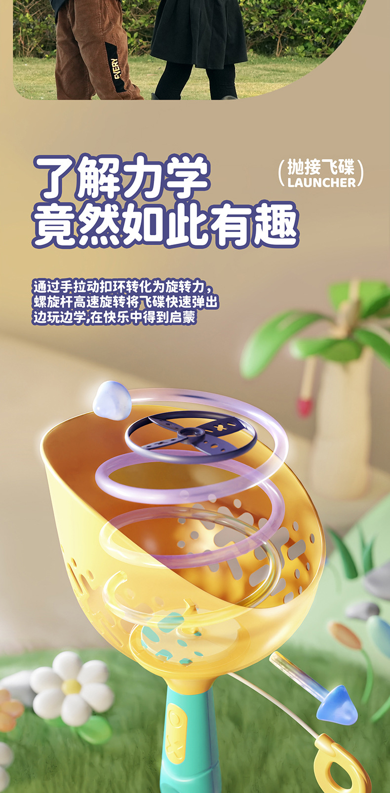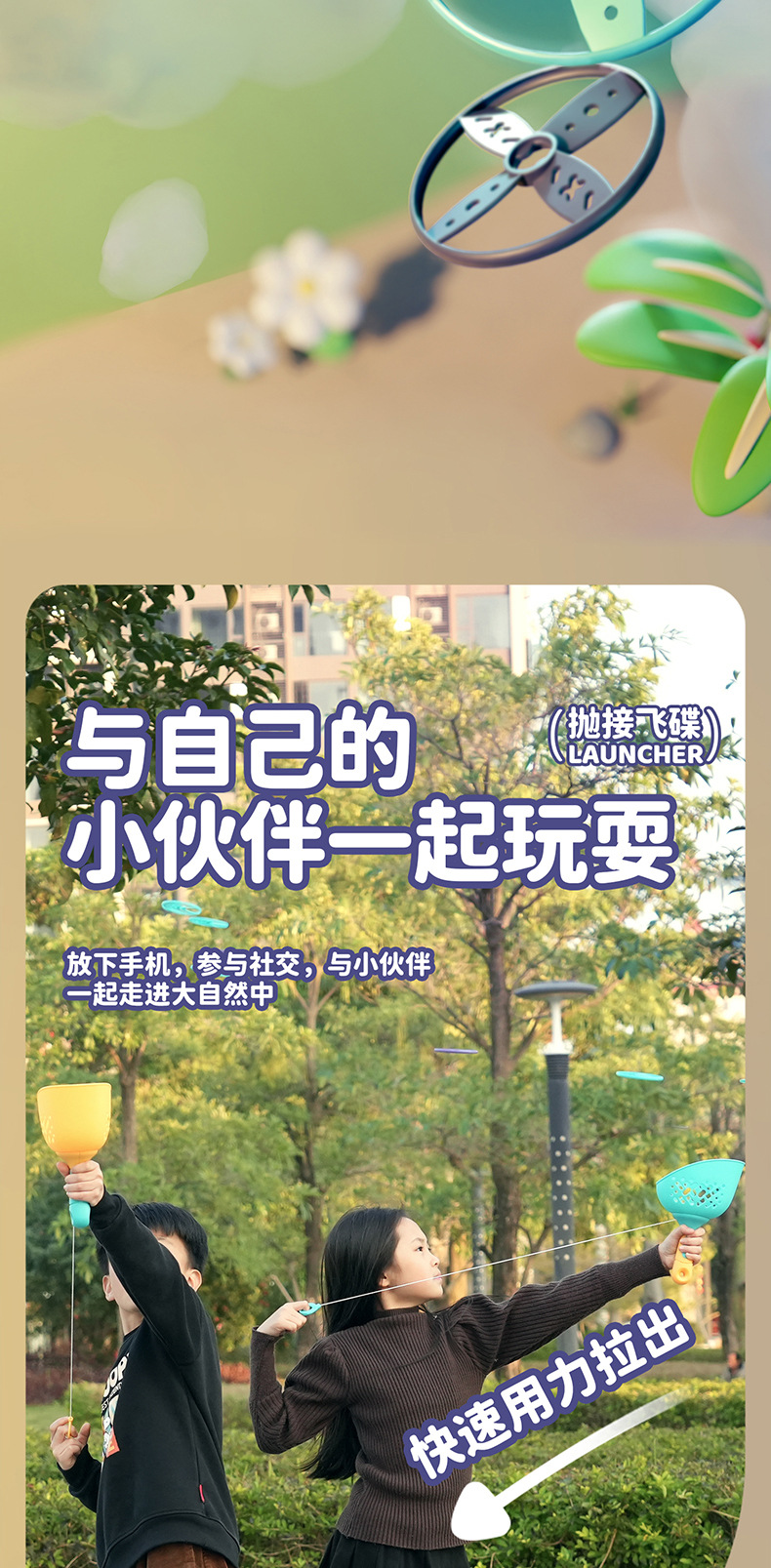 儿童手抛拉线飞碟玩具户外趣味弹射竹蜻蜓手持发射飞盘摆地摊批发