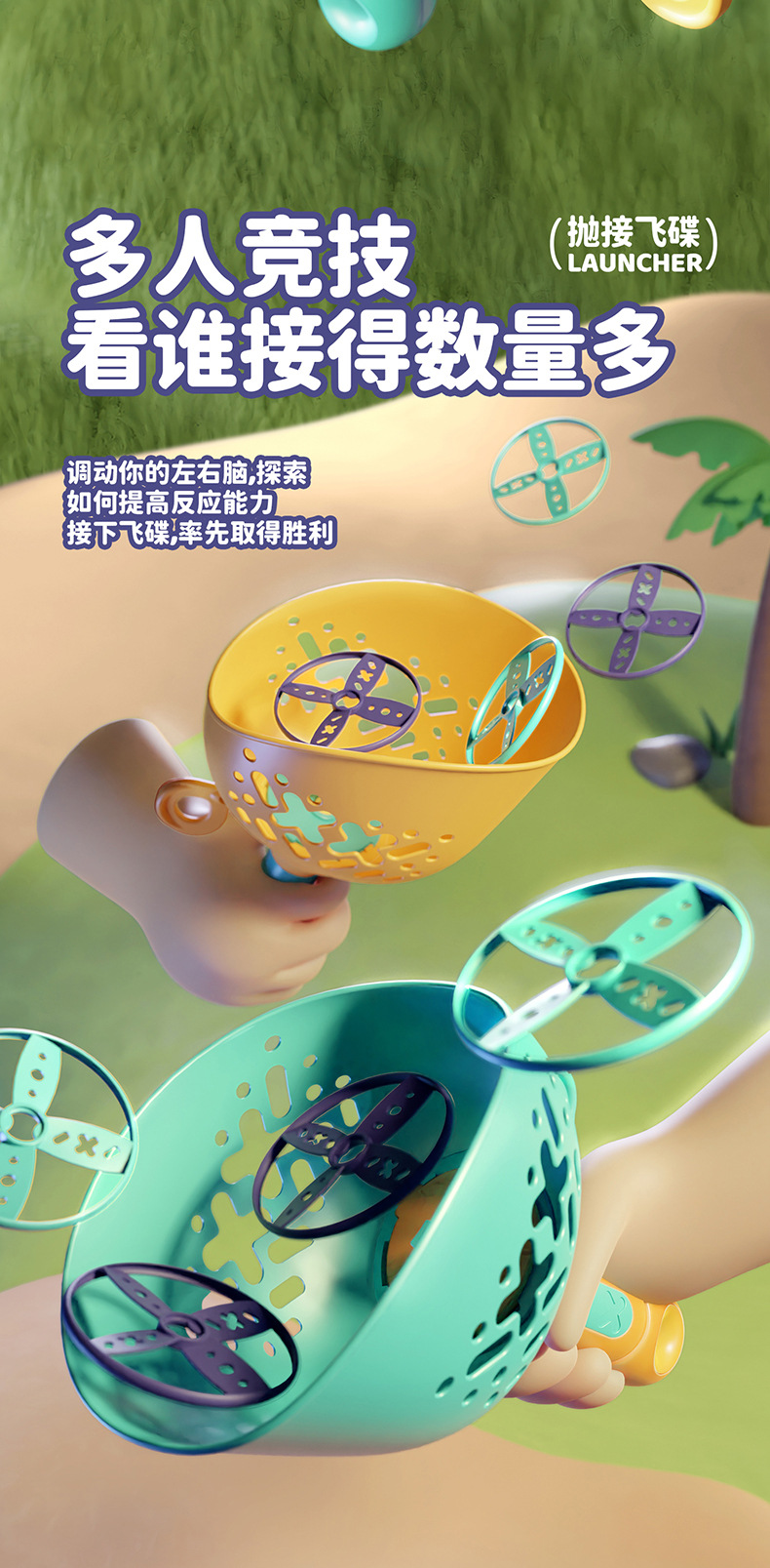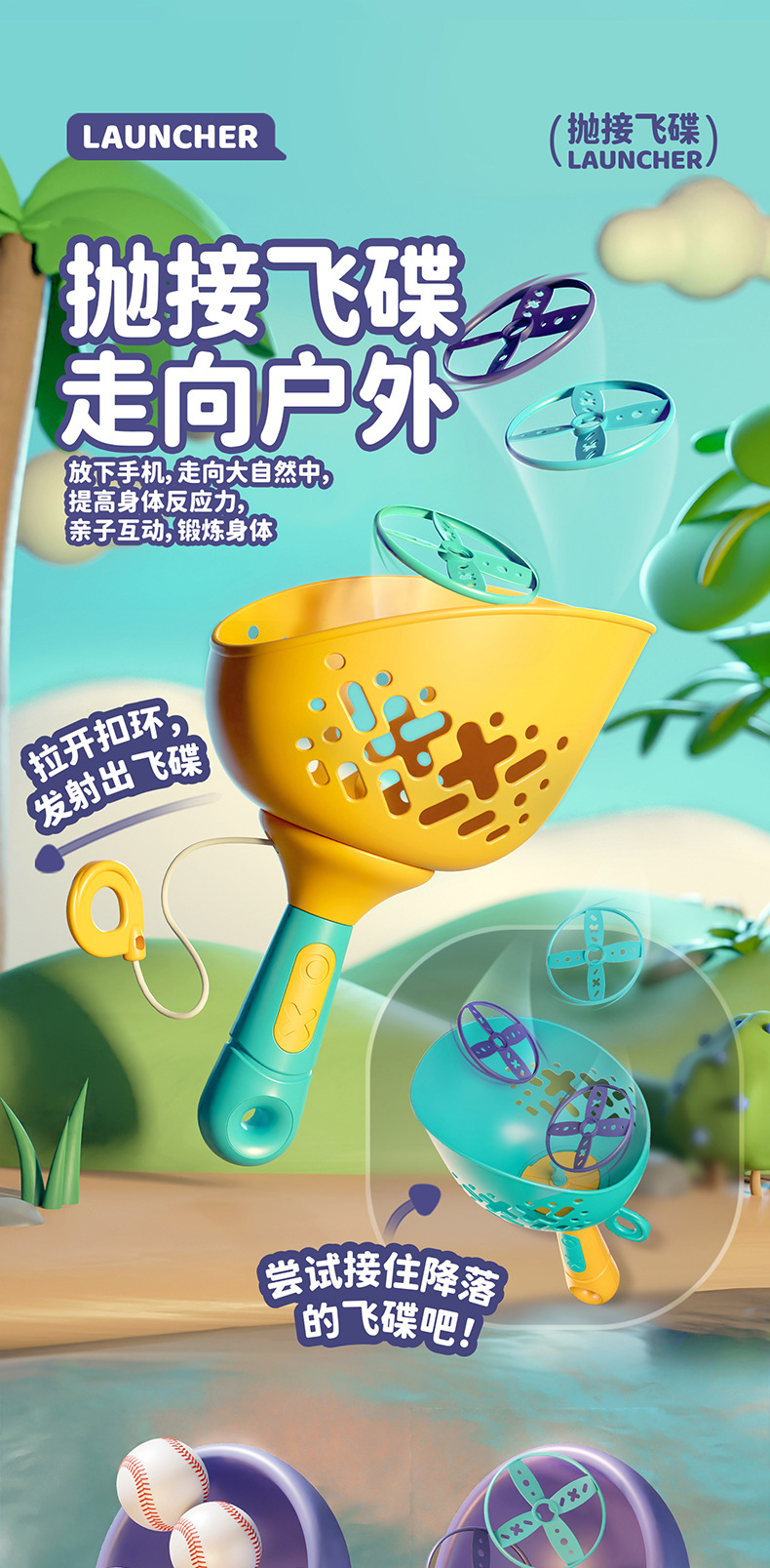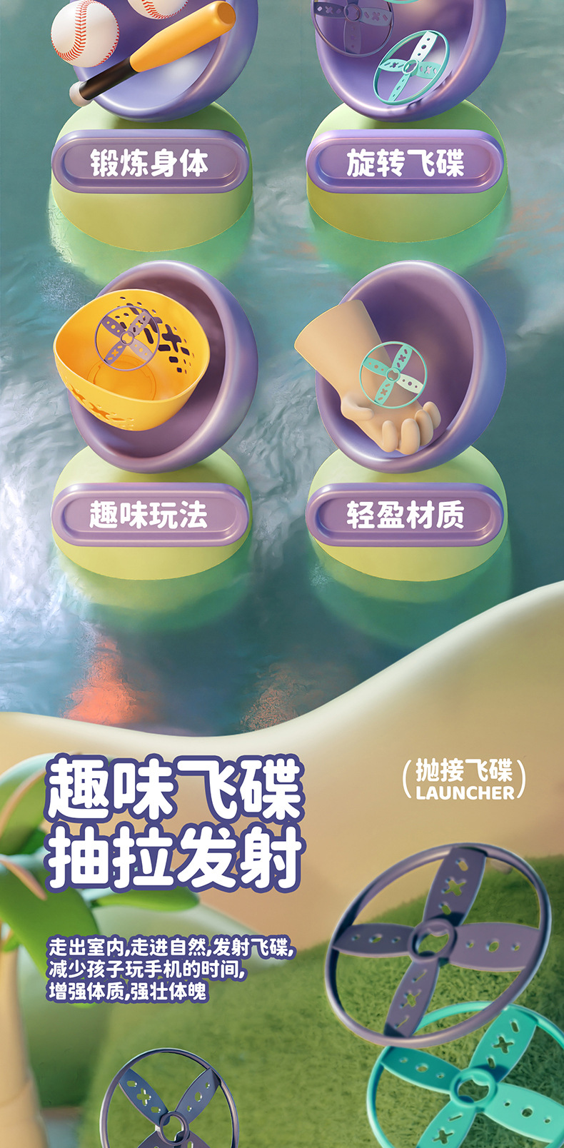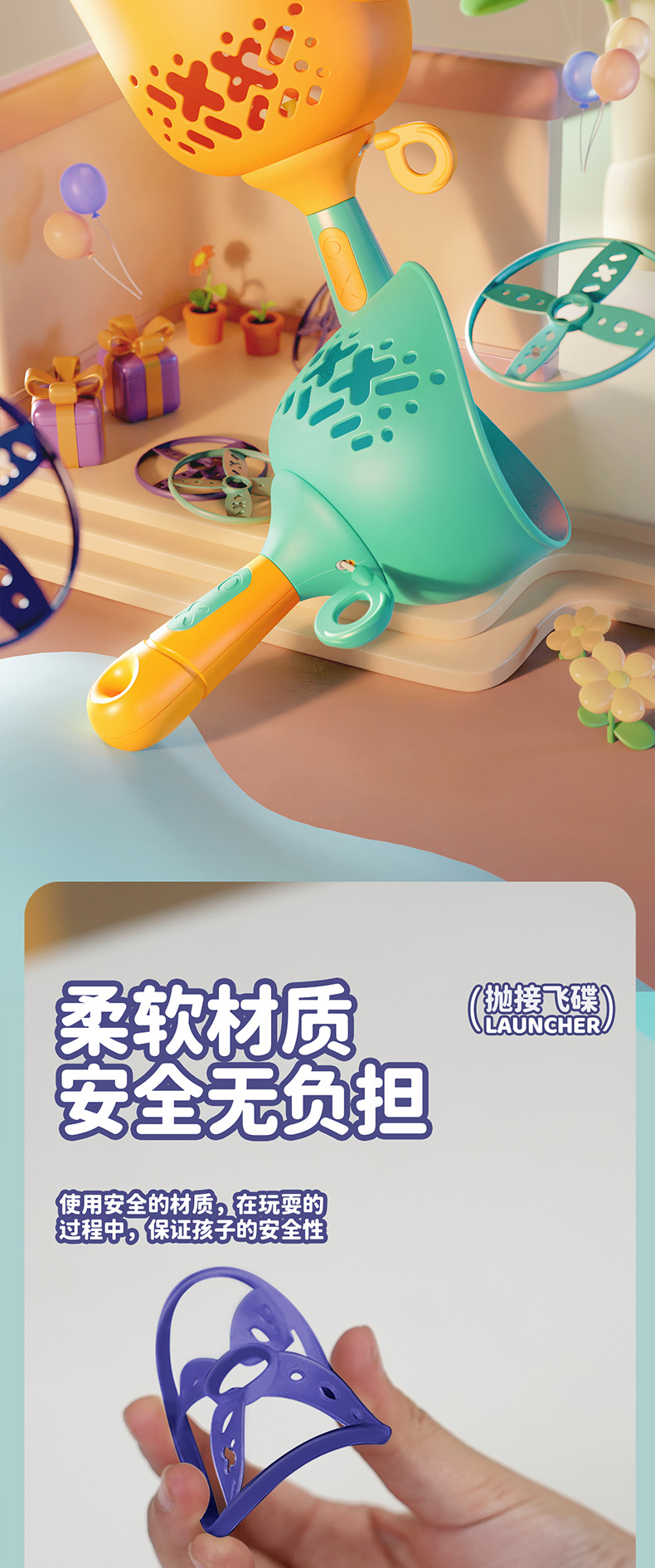 儿童手抛拉线飞碟玩具户外趣味弹射竹蜻蜓手持发射飞盘摆地摊批发
