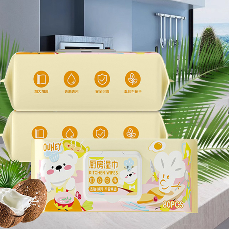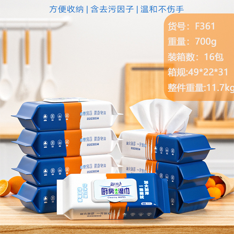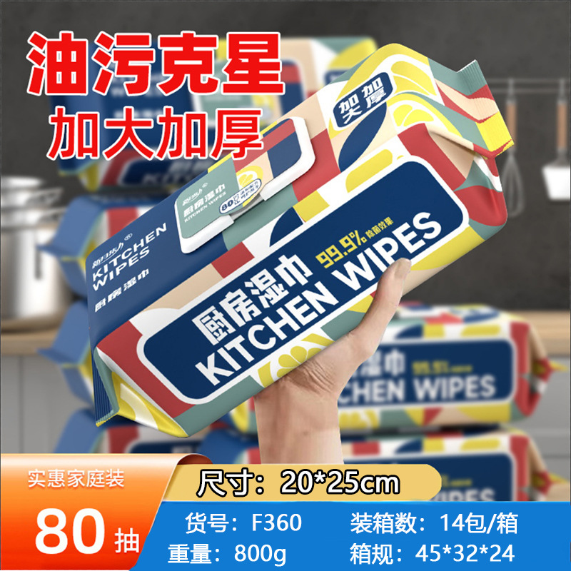 厨房湿巾强力去油污加大加厚一次性厨房专用80抽超大包清洁湿纸巾