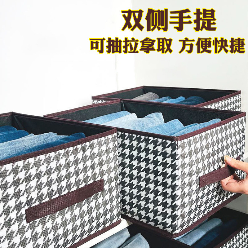 大号衣物收纳箱家用千鸟格无纺布分层抽屉式折叠阳离子钢架收纳盒