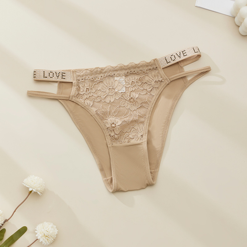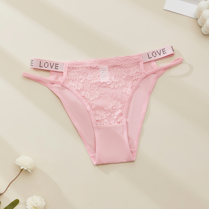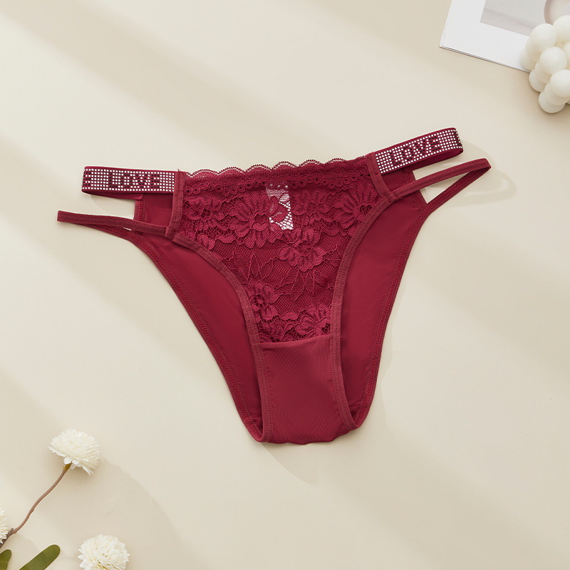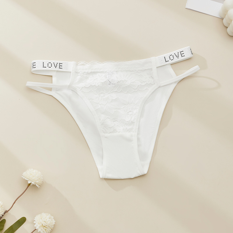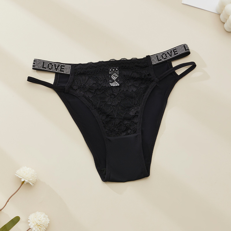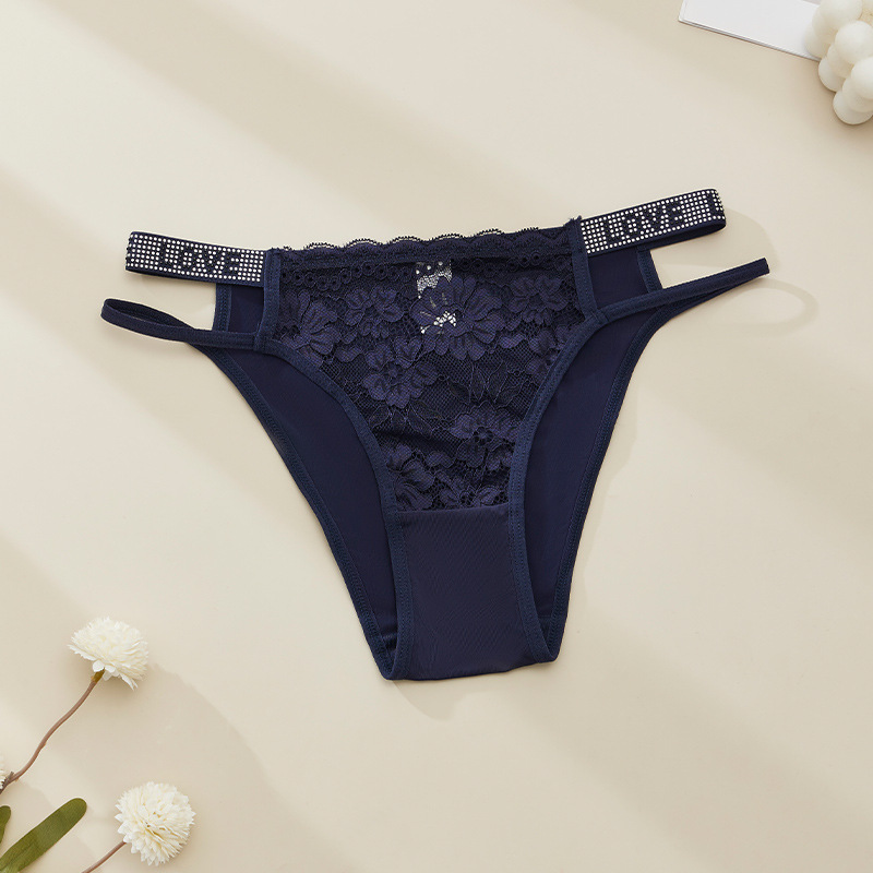 欧美性感蕾丝丁字裤女纯欲花朵镂空中腰带钻纯棉内档舒适透气跨境