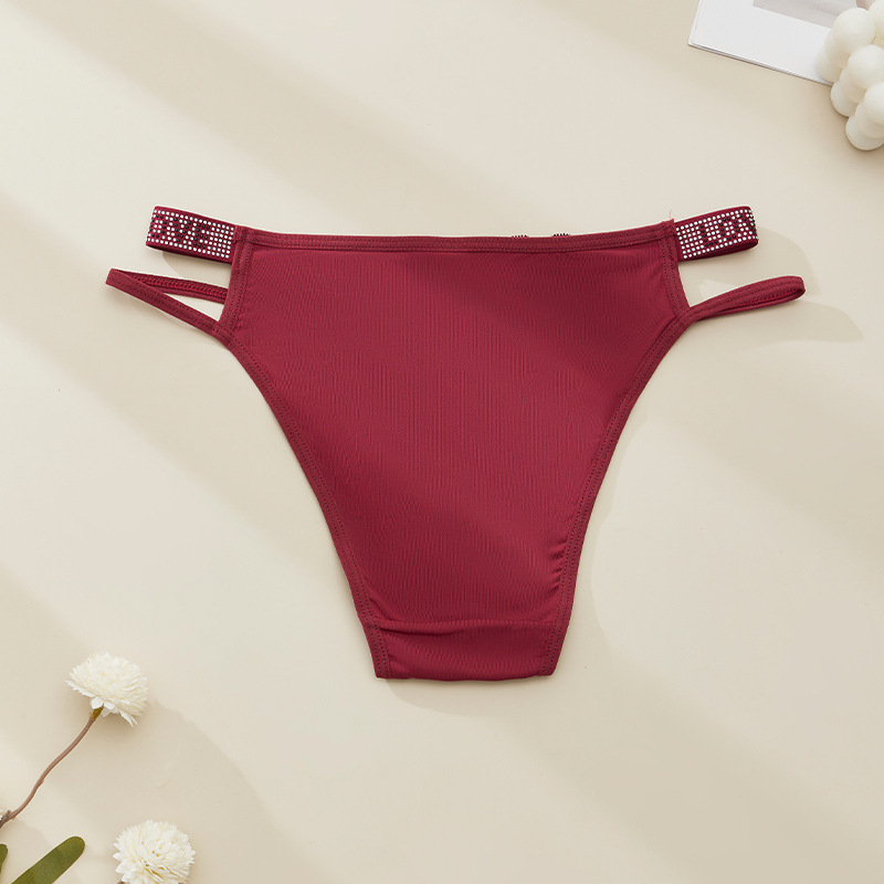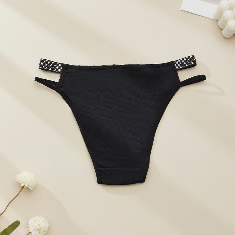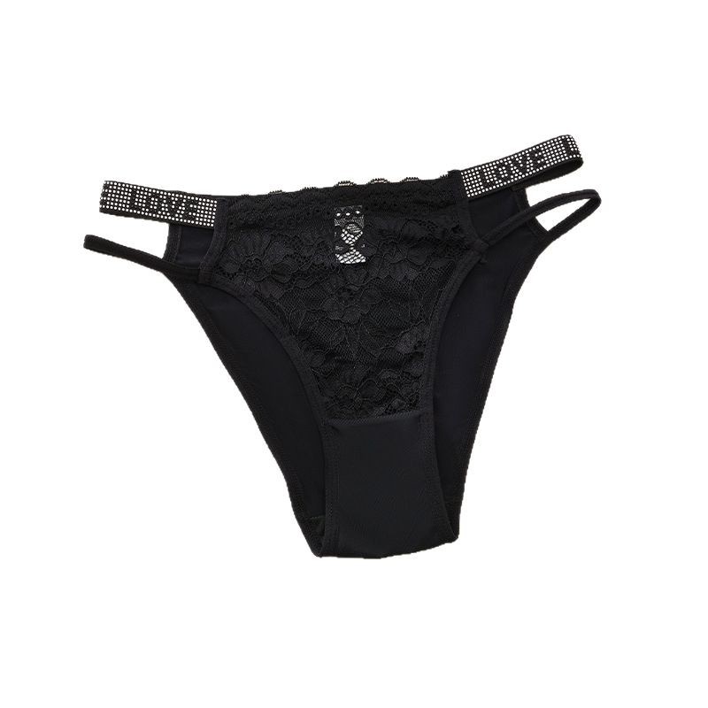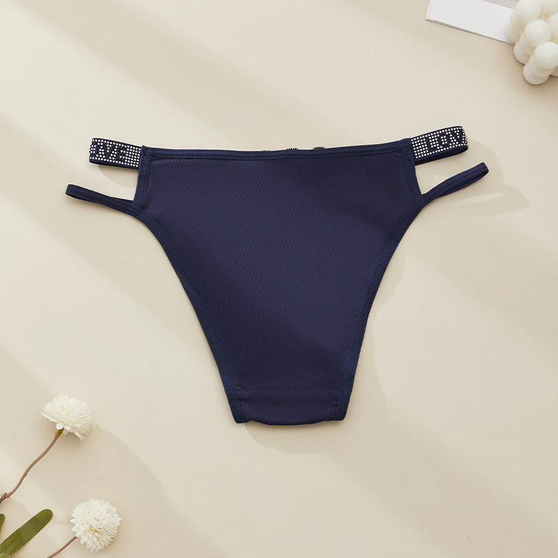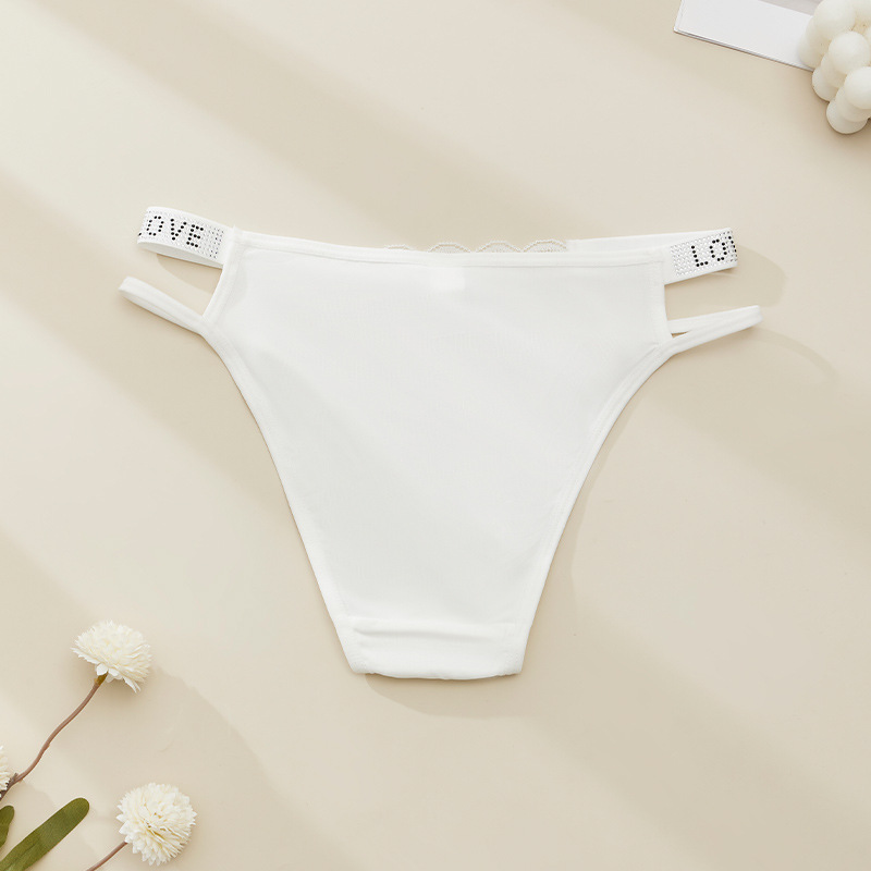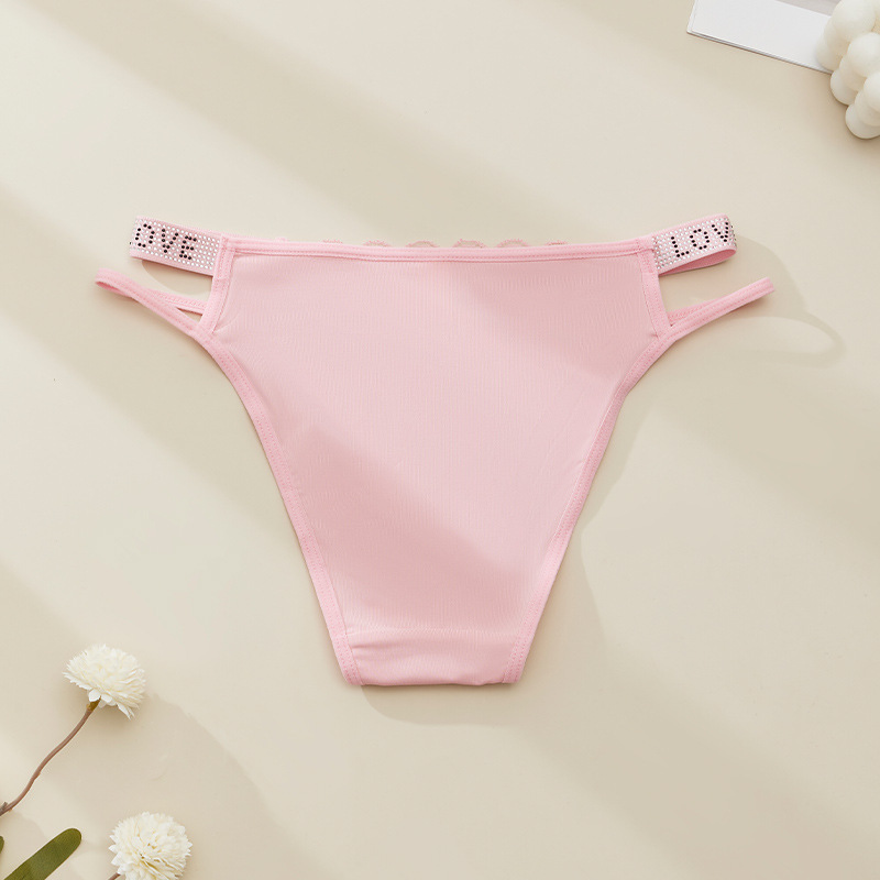 欧美性感蕾丝丁字裤女纯欲花朵镂空中腰带钻纯棉内档舒适透气跨境