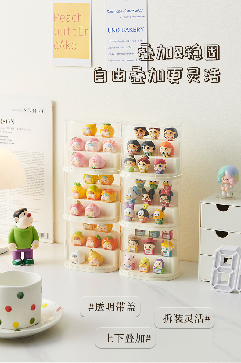 展示盒萌粒盲盒可叠加防尘公仔乐高展示架透明泡泡玛特手办收纳盒