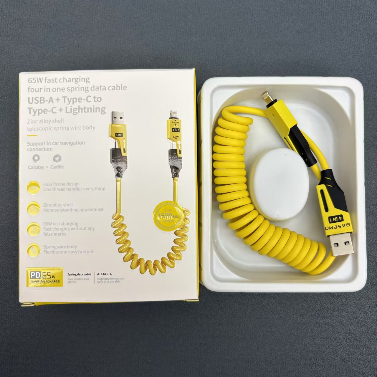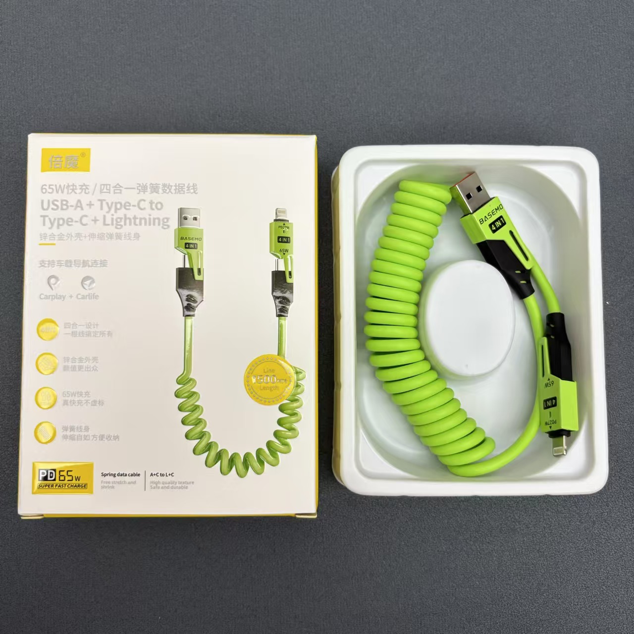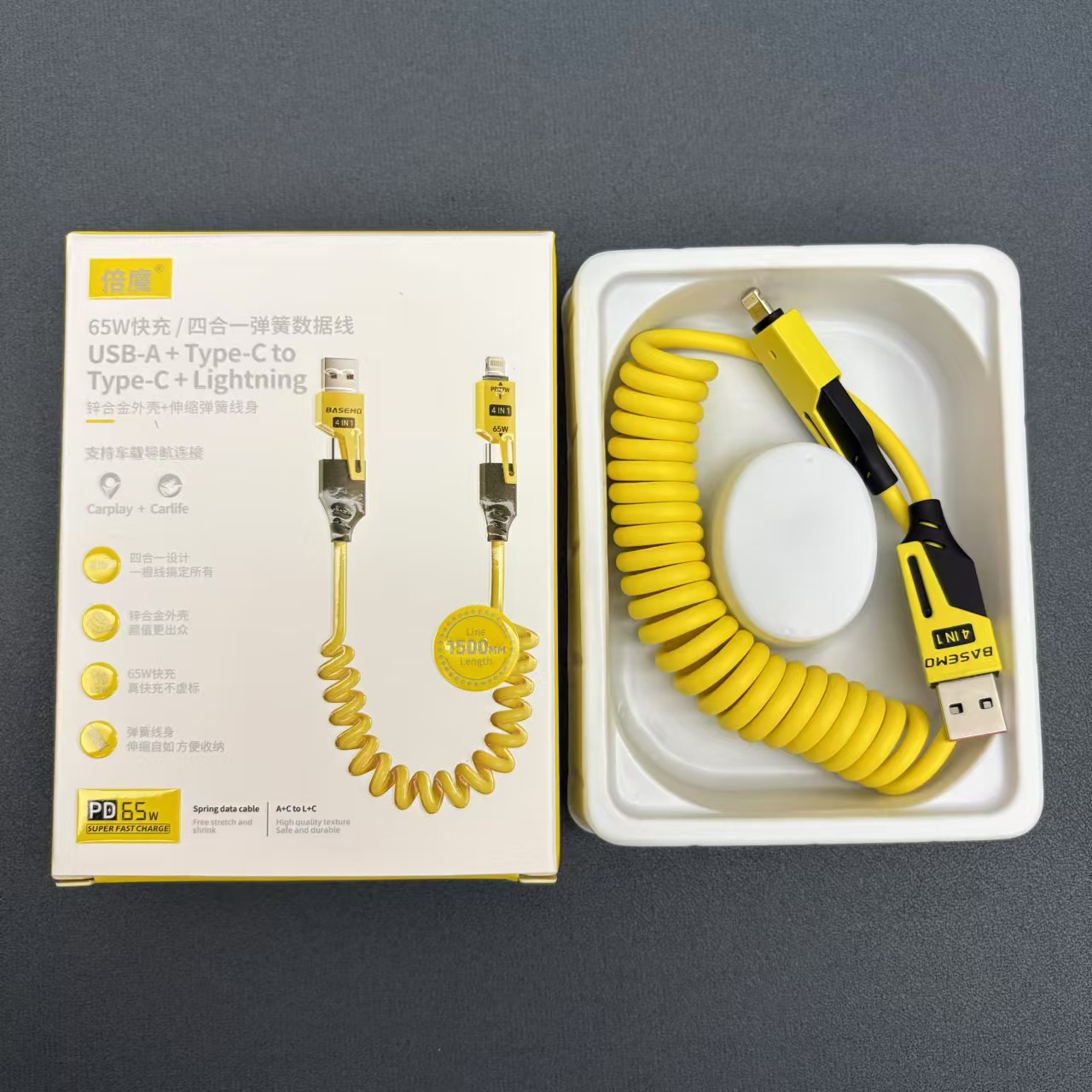 【真快充65W+27W】倍魔弹簧充电线四合一适用苹果16/14华为数据线