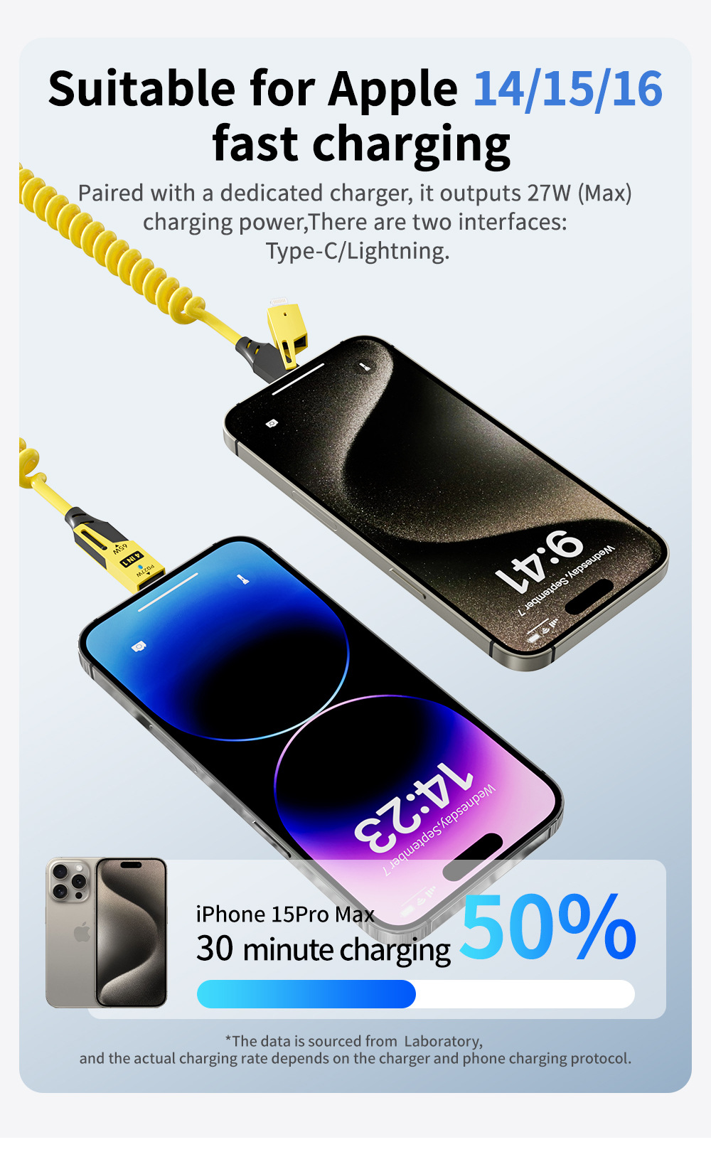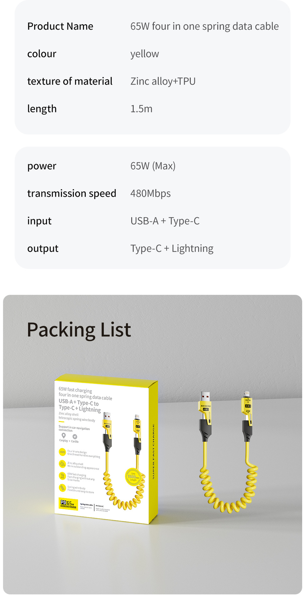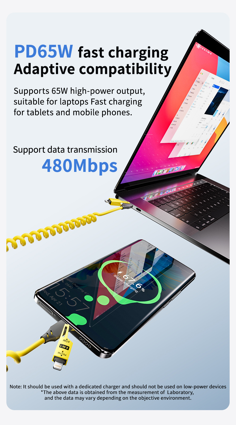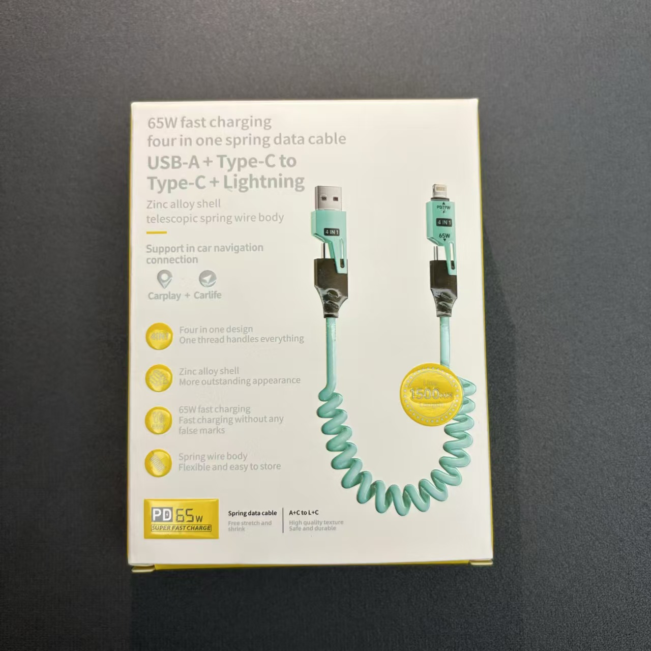 【真快充65W+27W】倍魔弹簧充电线四合一适用苹果16/14华为数据线