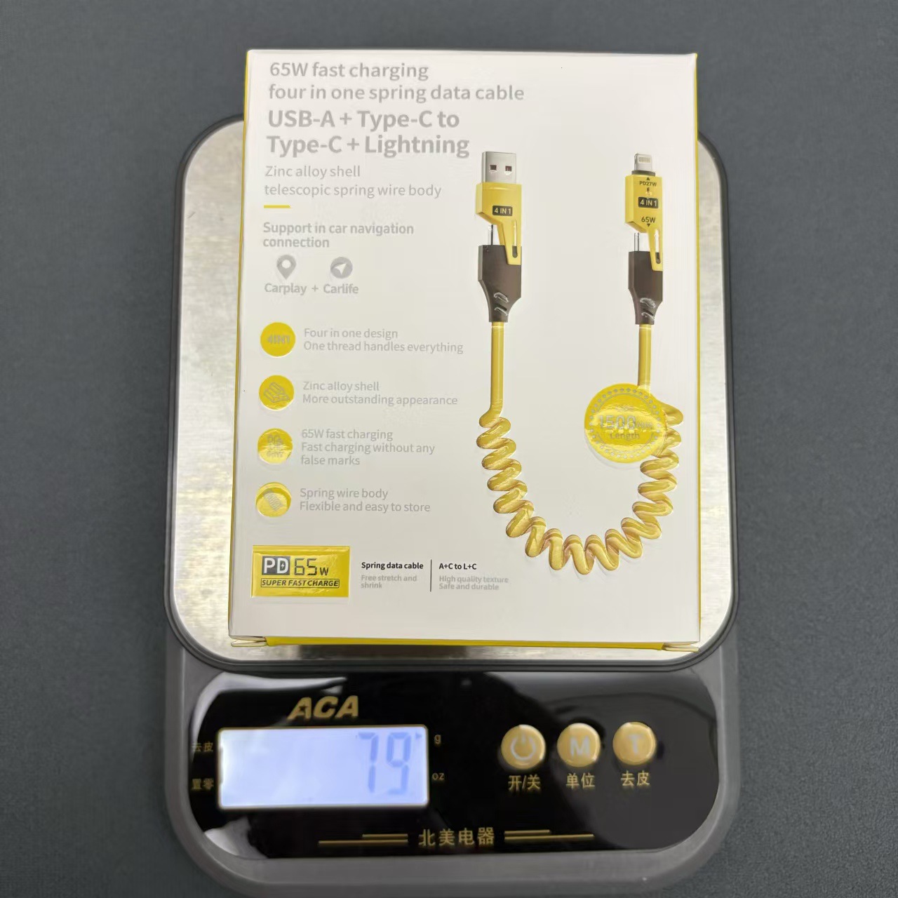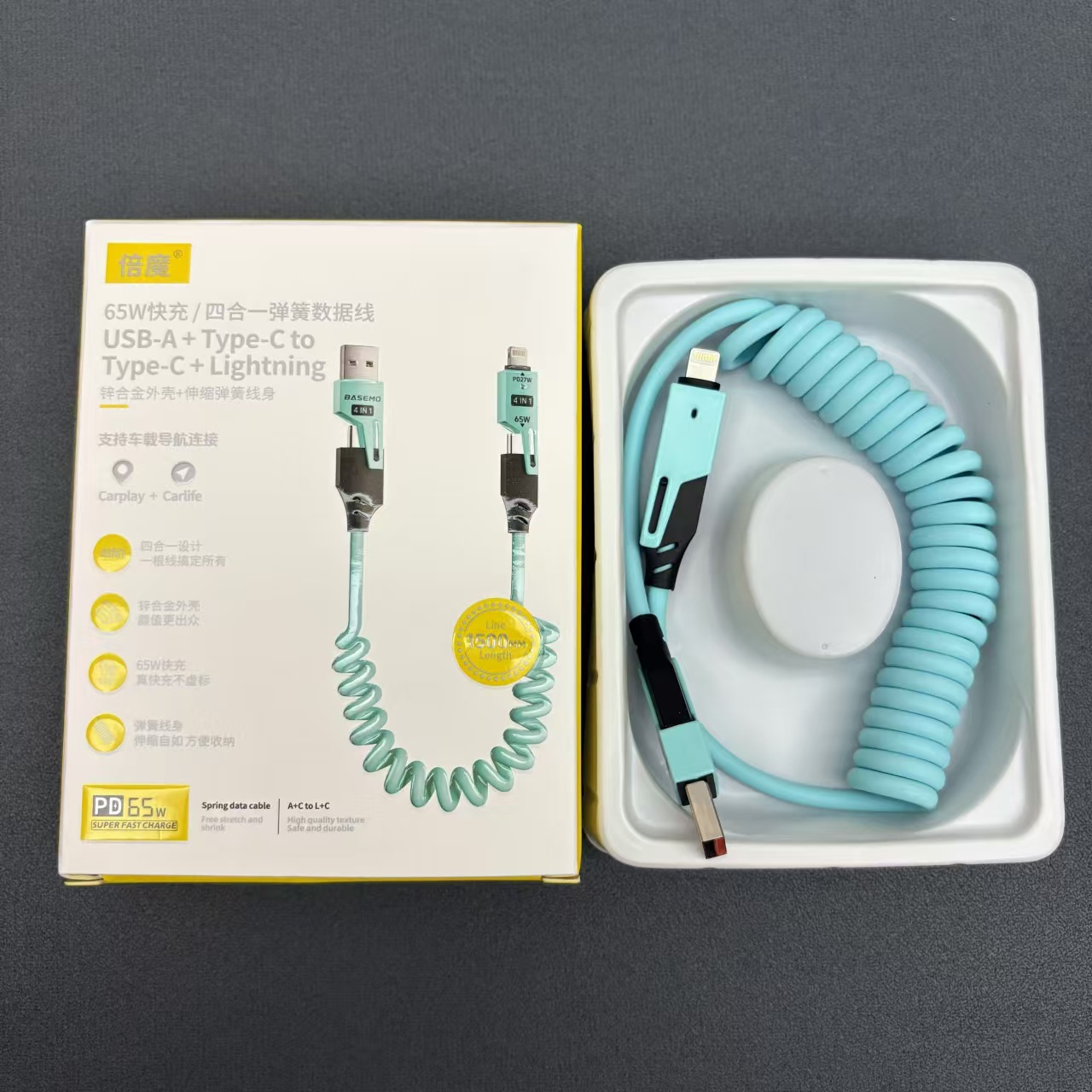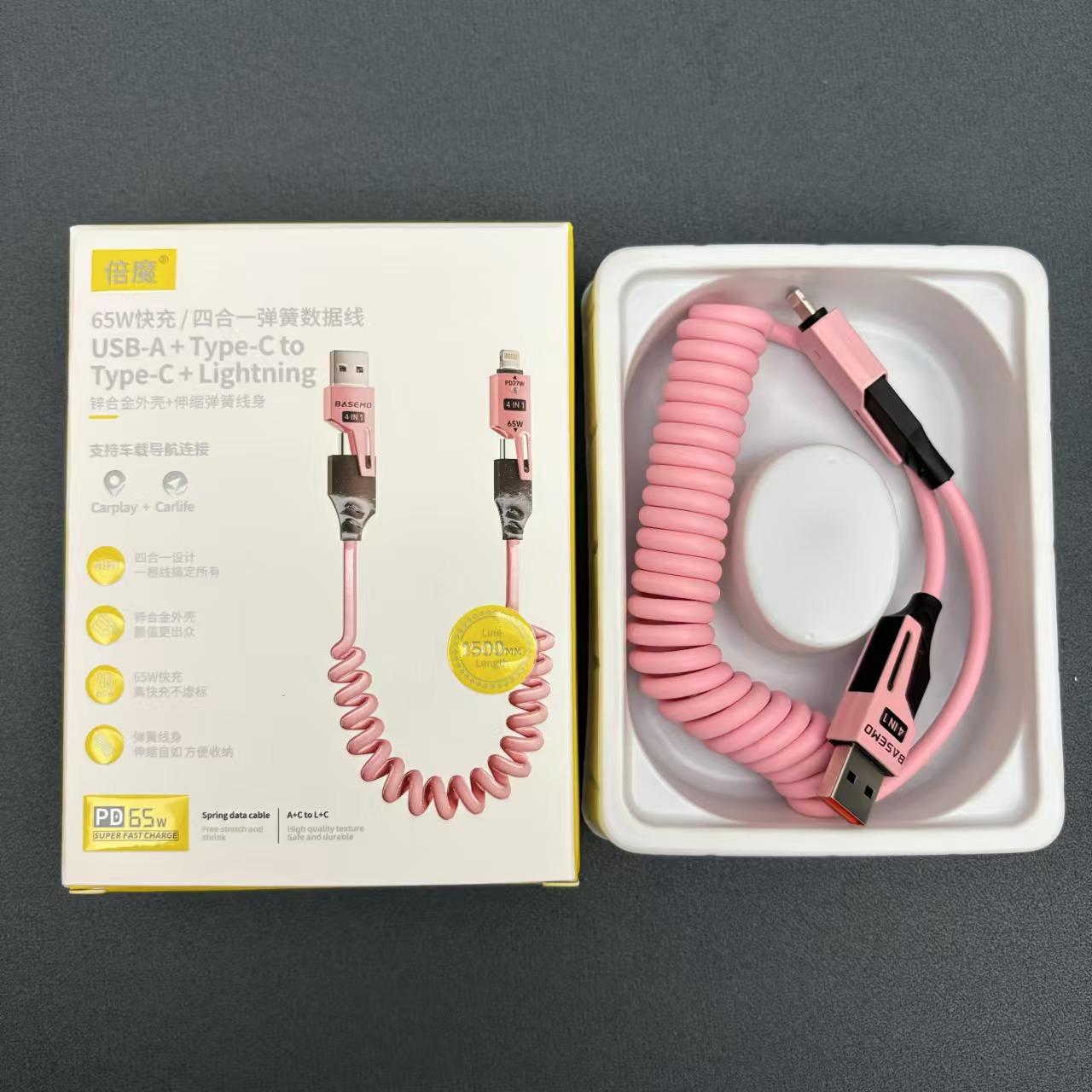 【品控卓越】倍魔弹簧伸缩四合一65W+27W快充适用苹果16/15华为