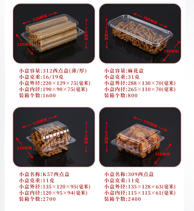 食品包装盒连盖pet透明糕点饼干打包桃酥干货塑料盒 一次性西点盒