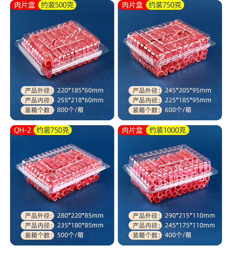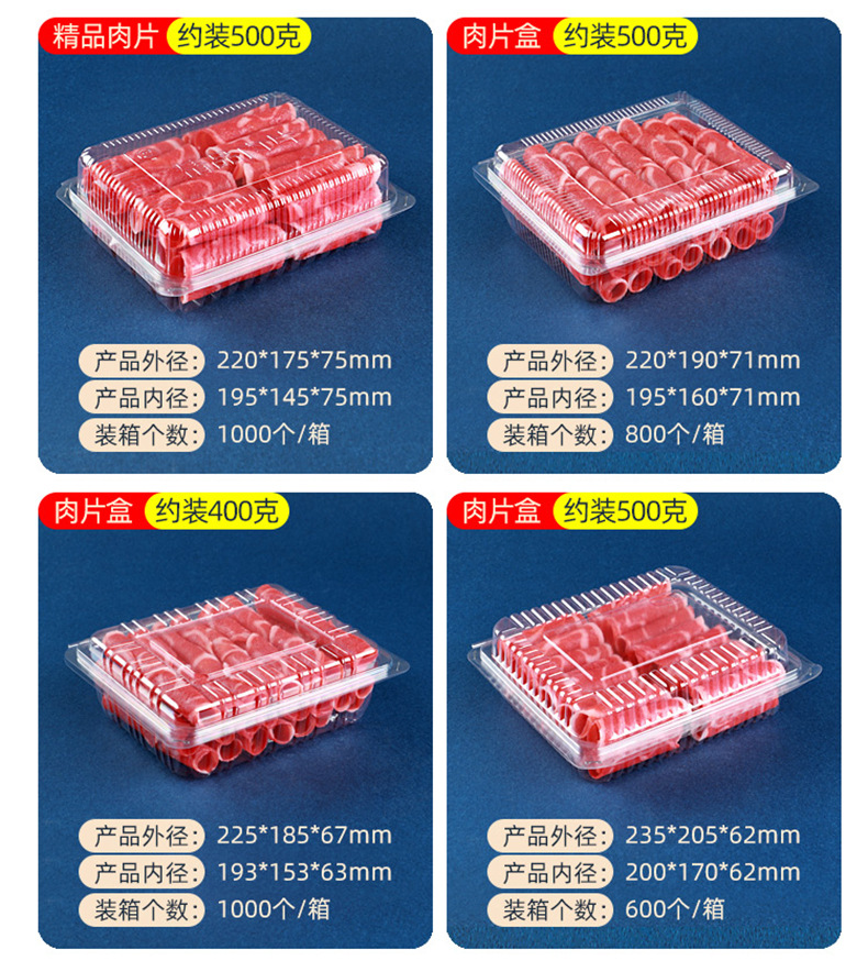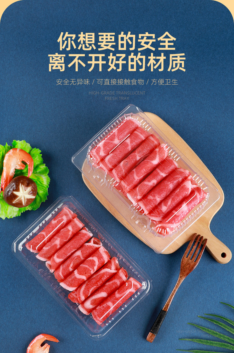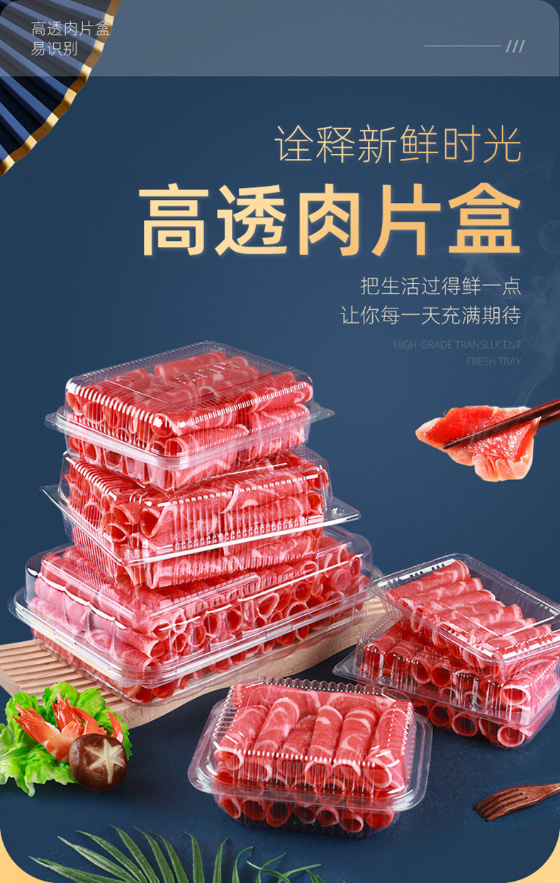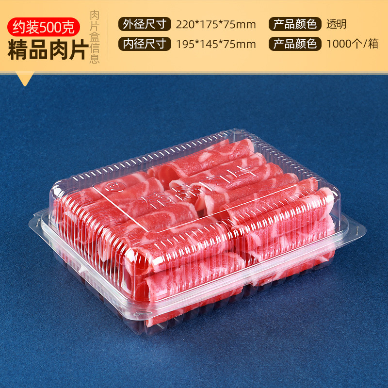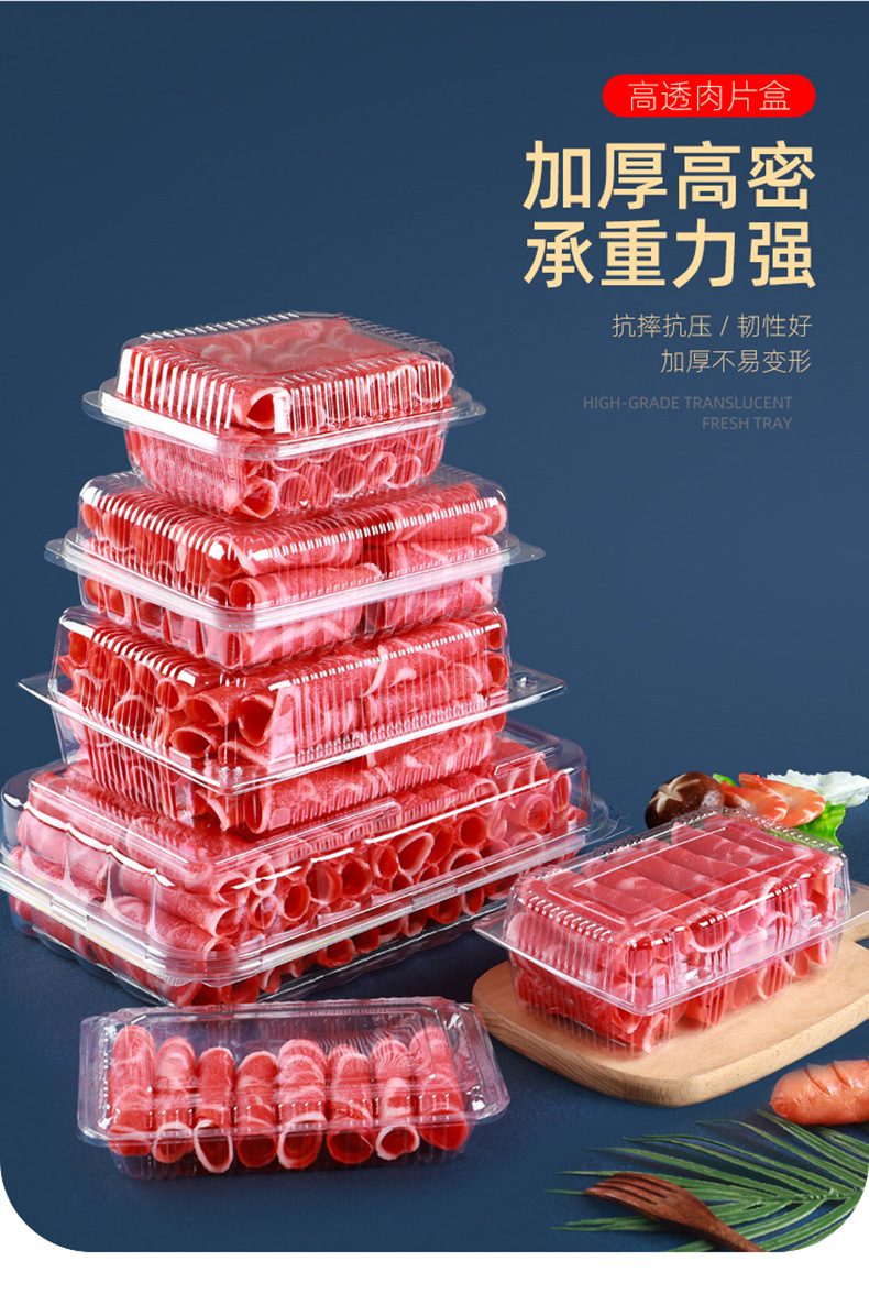 一次性透明肉片盒食品级加厚冷冻保鲜盒牛羊吸塑塑料盒打包盒批发