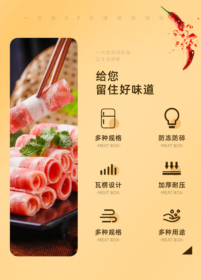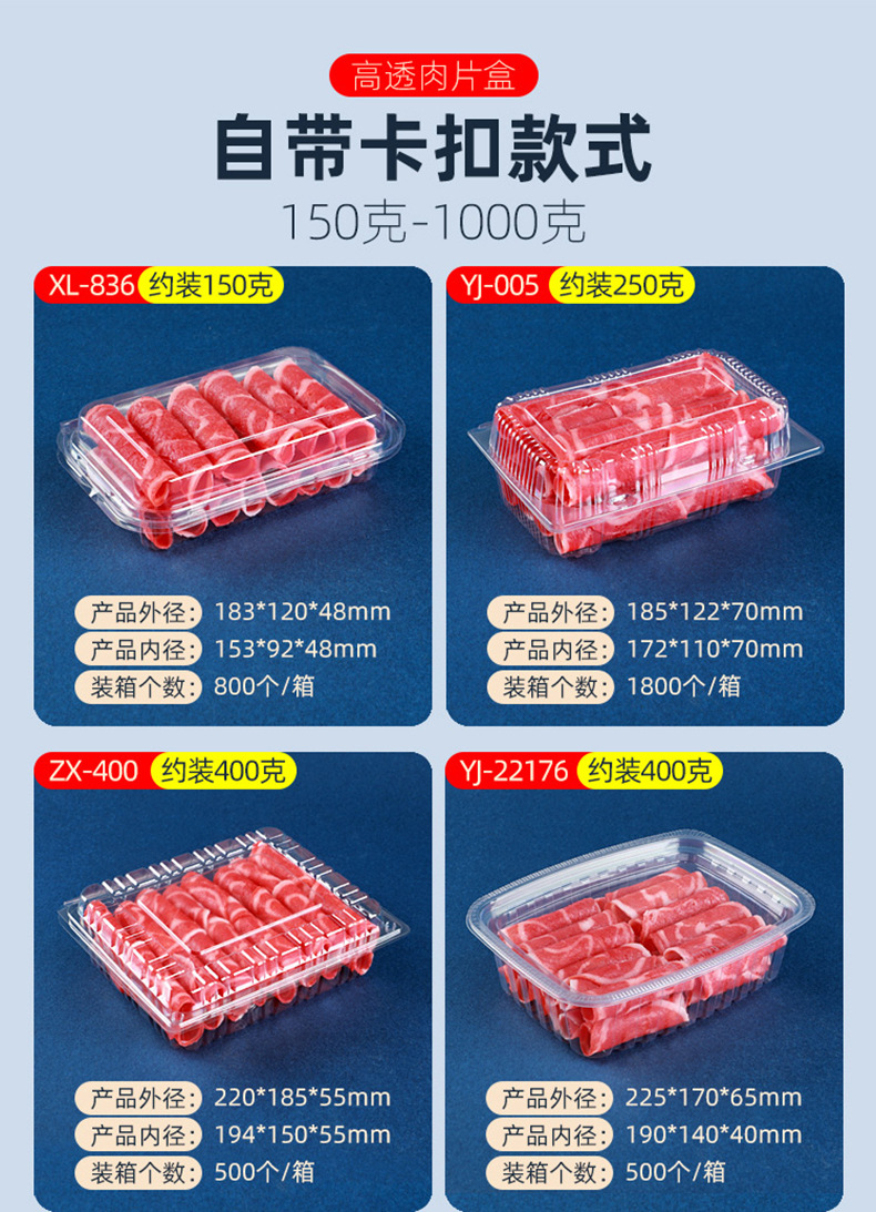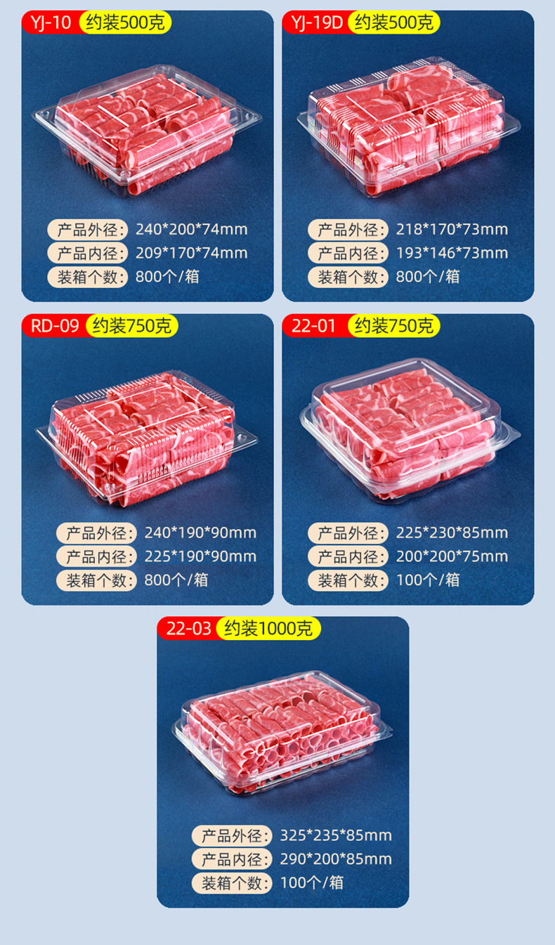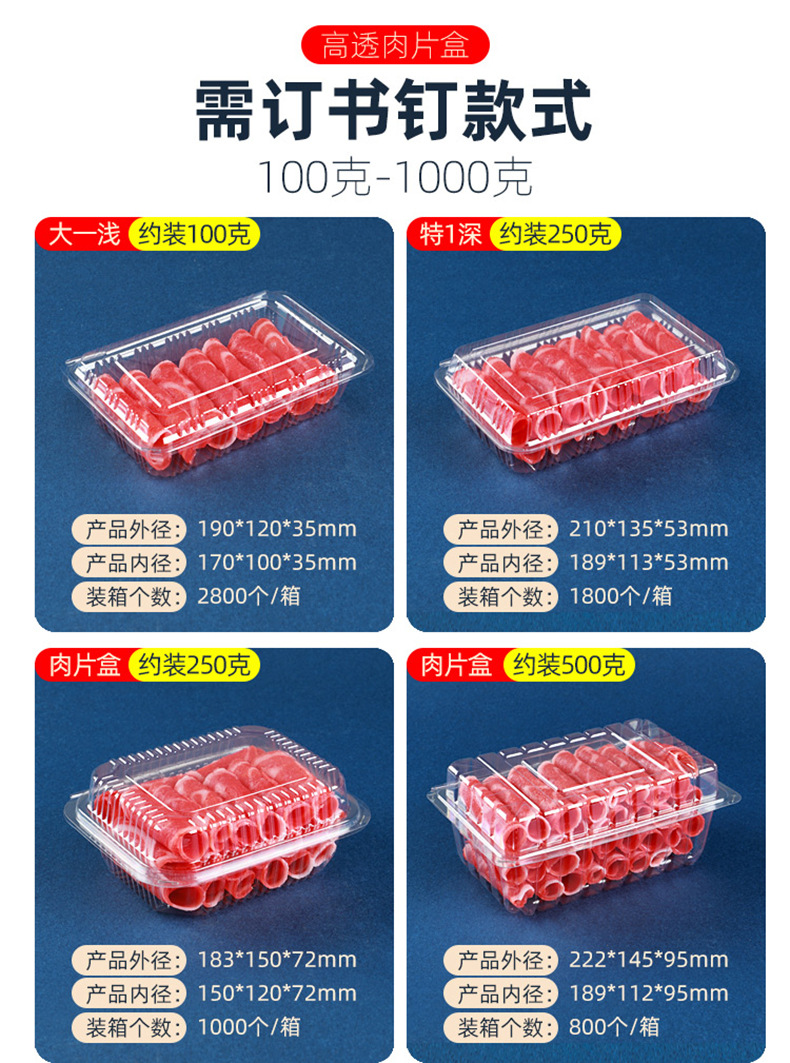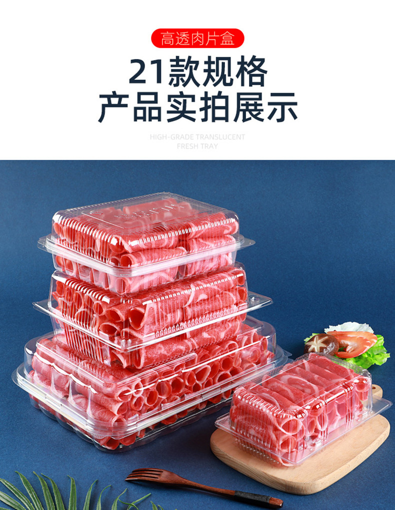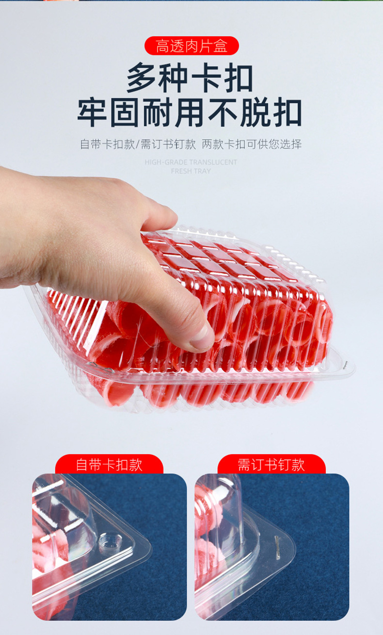 一次性透明肉片盒食品级加厚冷冻保鲜盒牛羊吸塑塑料盒打包盒批发