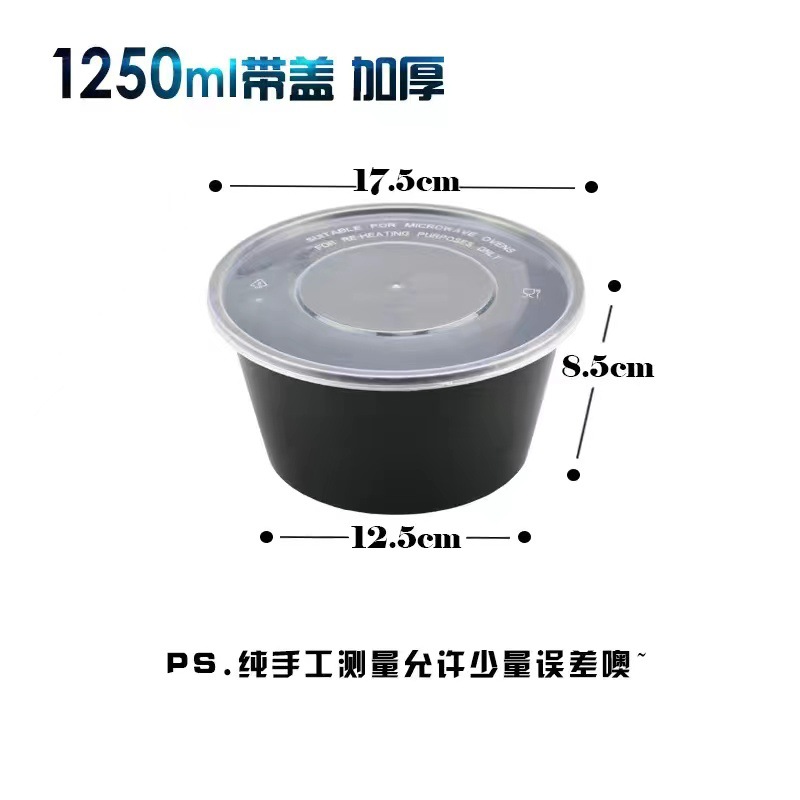 | black round 1250ml [200 with lid]](黑色圆形1250ML【200带盖】) | USD $23.48 | 11111 set available |