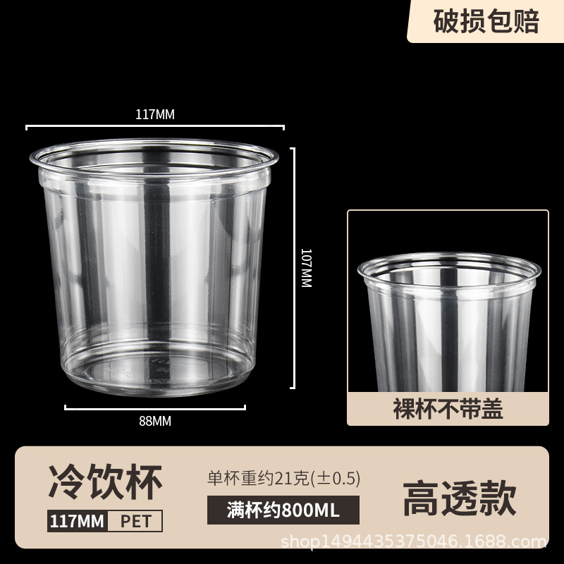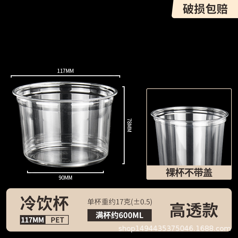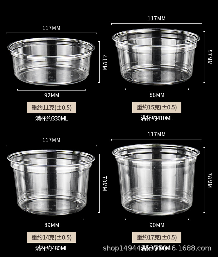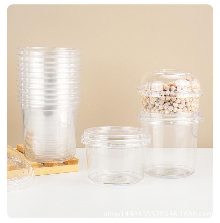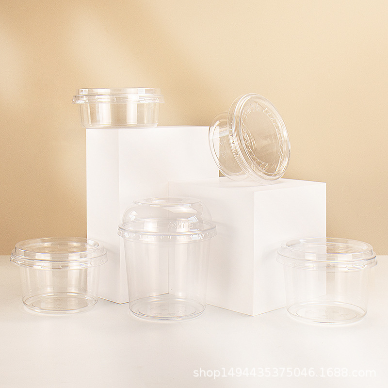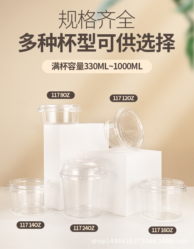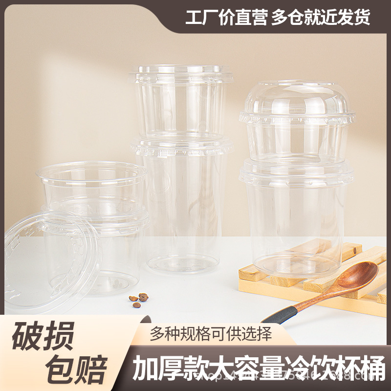 网红PET芋圆冰粉碗一次性塑料透明沙拉桶杯甜品水果捞打包盒带盖