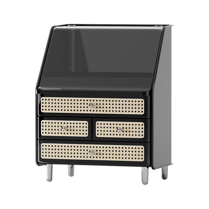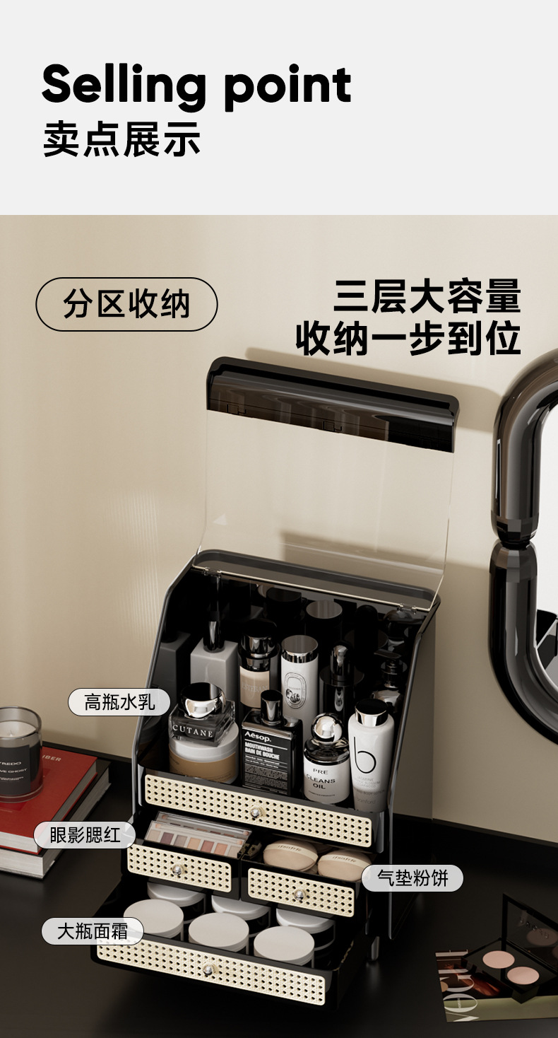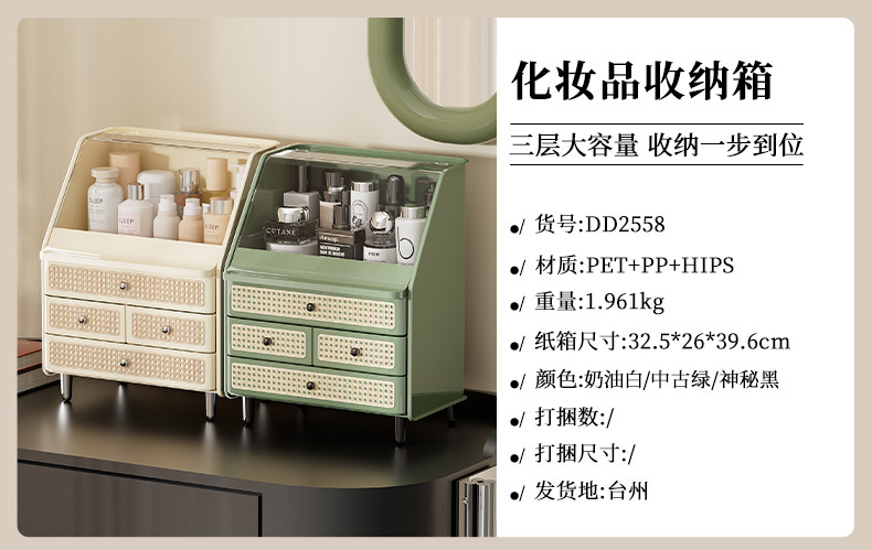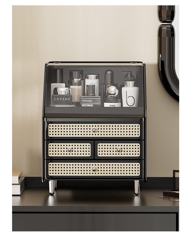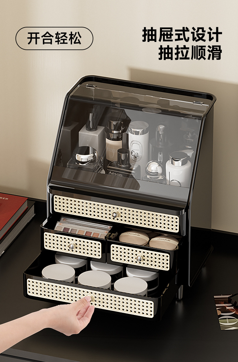 化妆品收纳盒桌面高级感多功能大容量藤编整理盒防尘抽屉式化妆箱