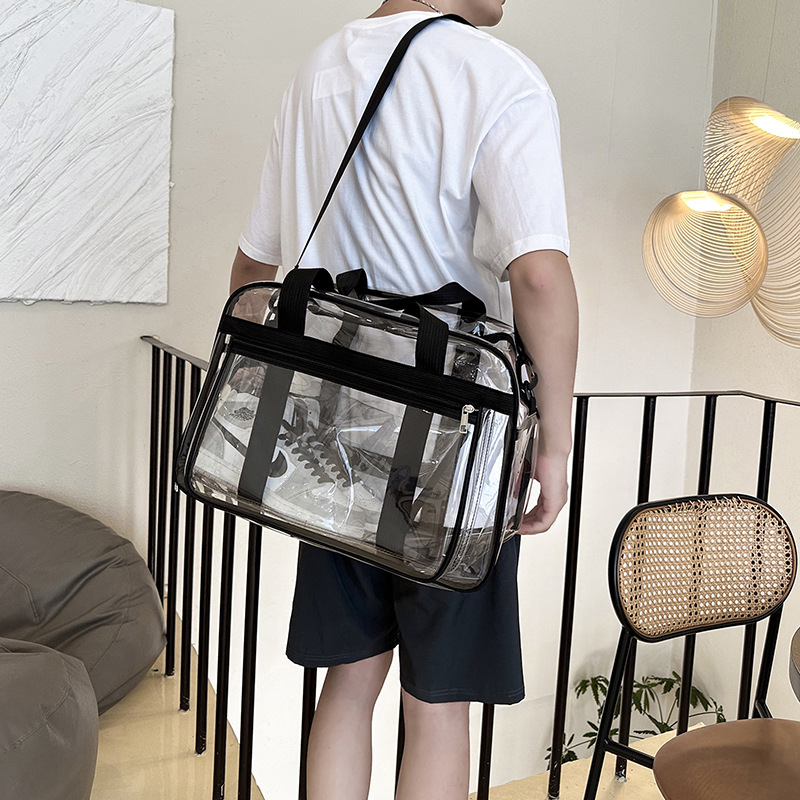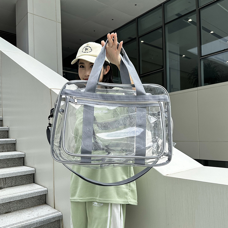 跨境亚马逊透明旅行包大容量透明pvc旅行包健身收纳透明包沙滩包