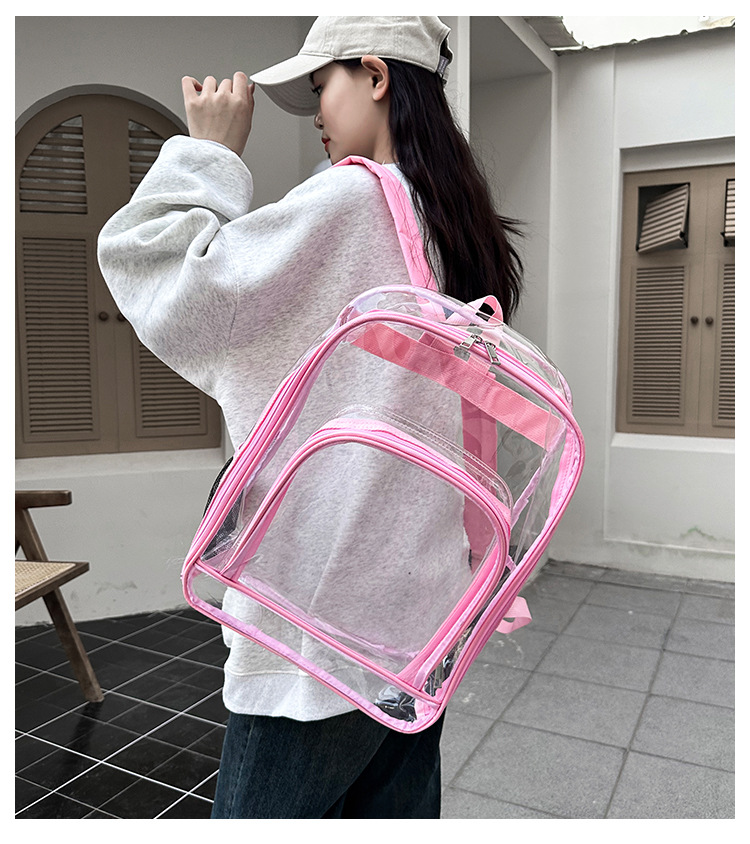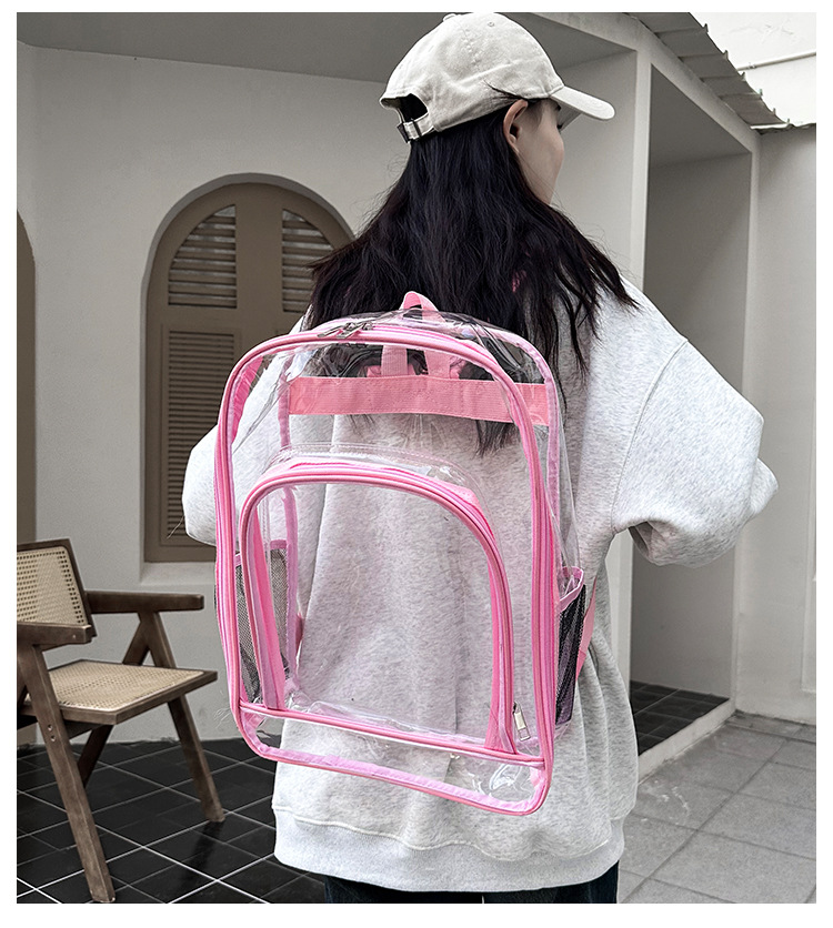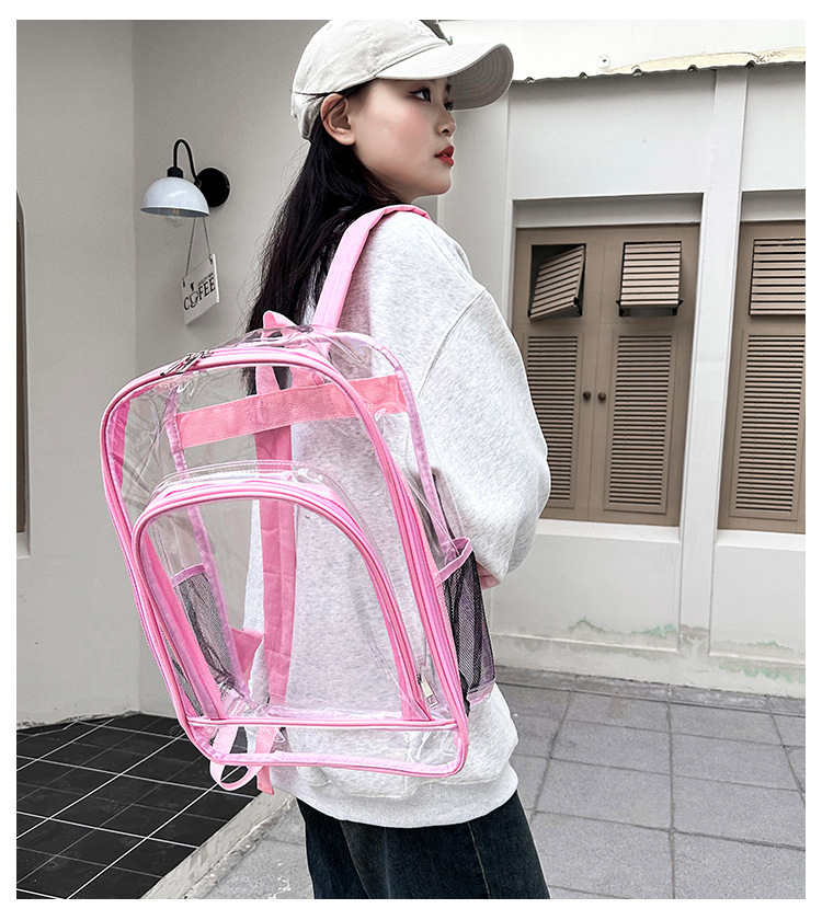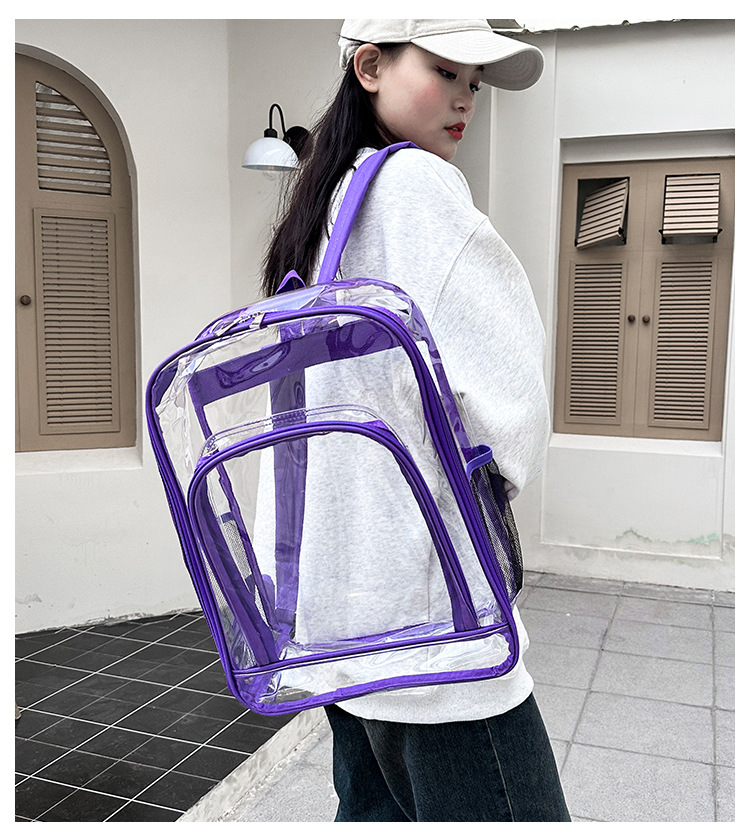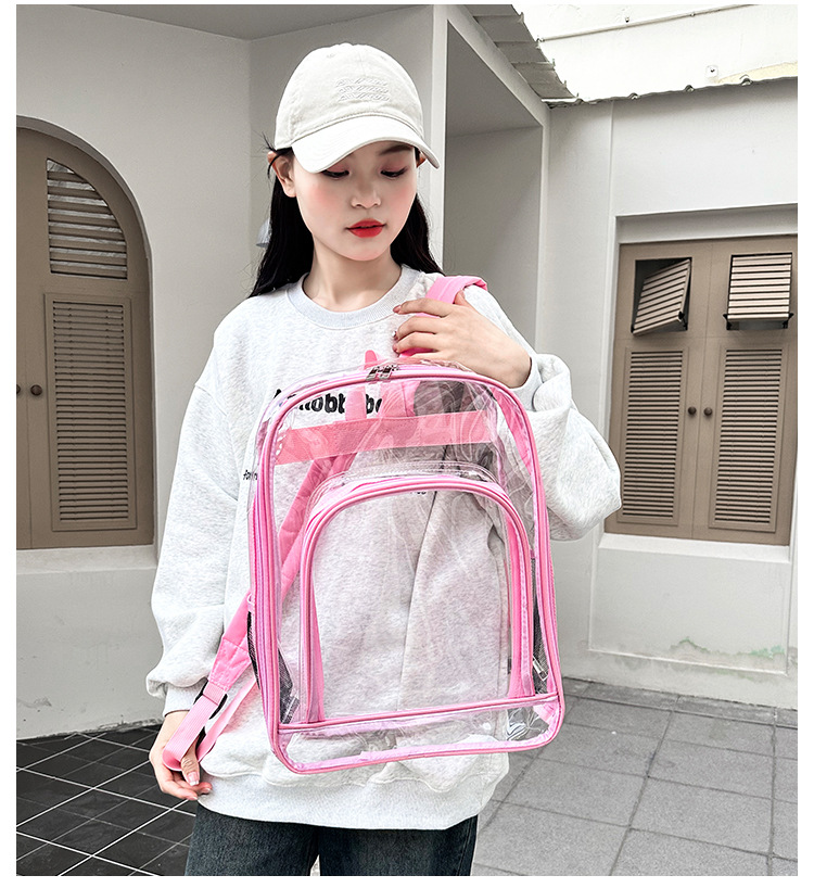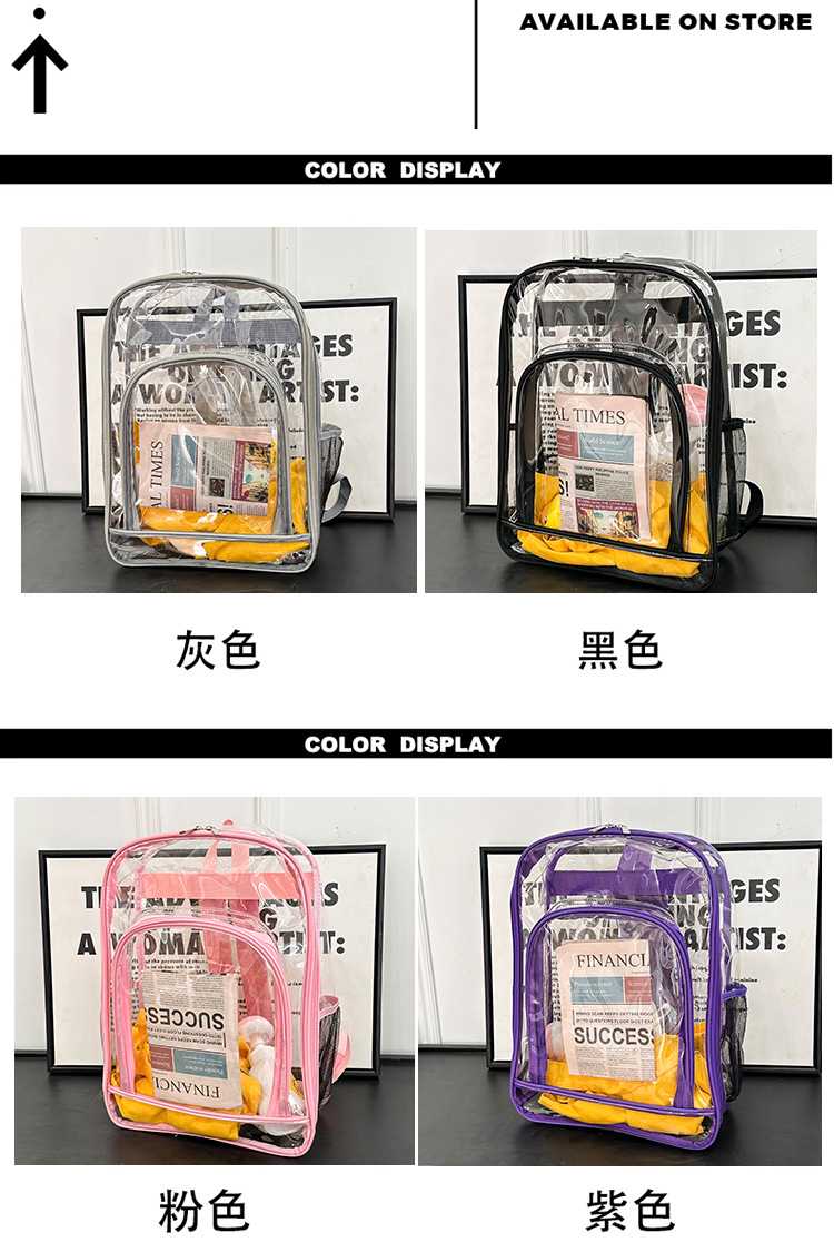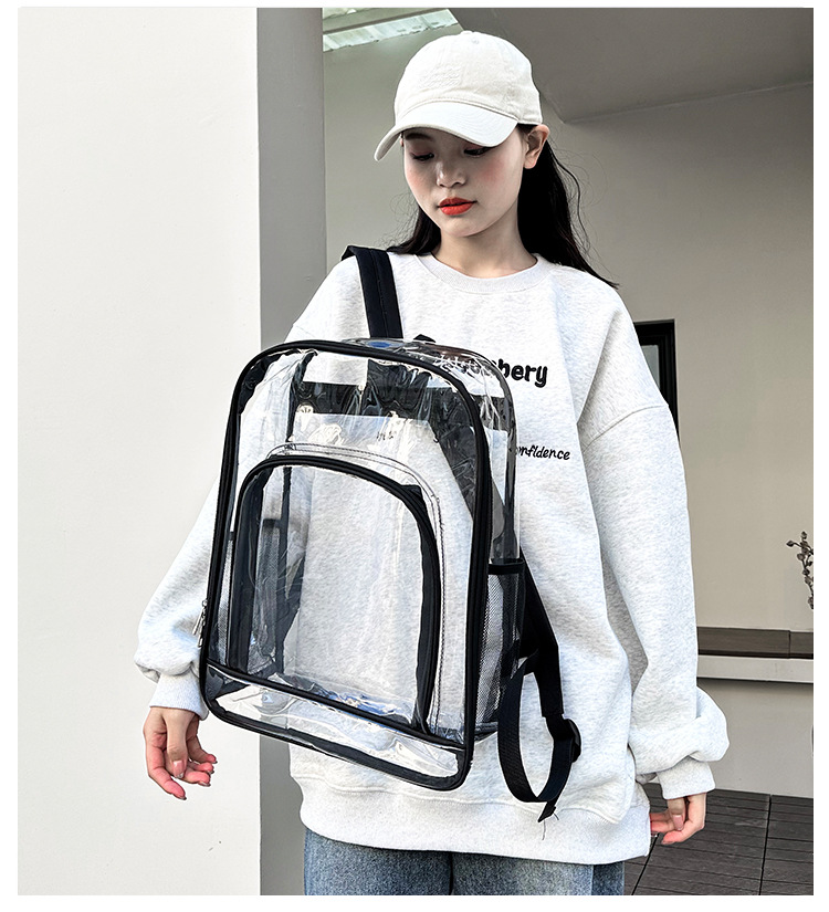 40丝跨境亚马逊环保pvc透明双肩包 时尚防水学生书包透明背包果冻