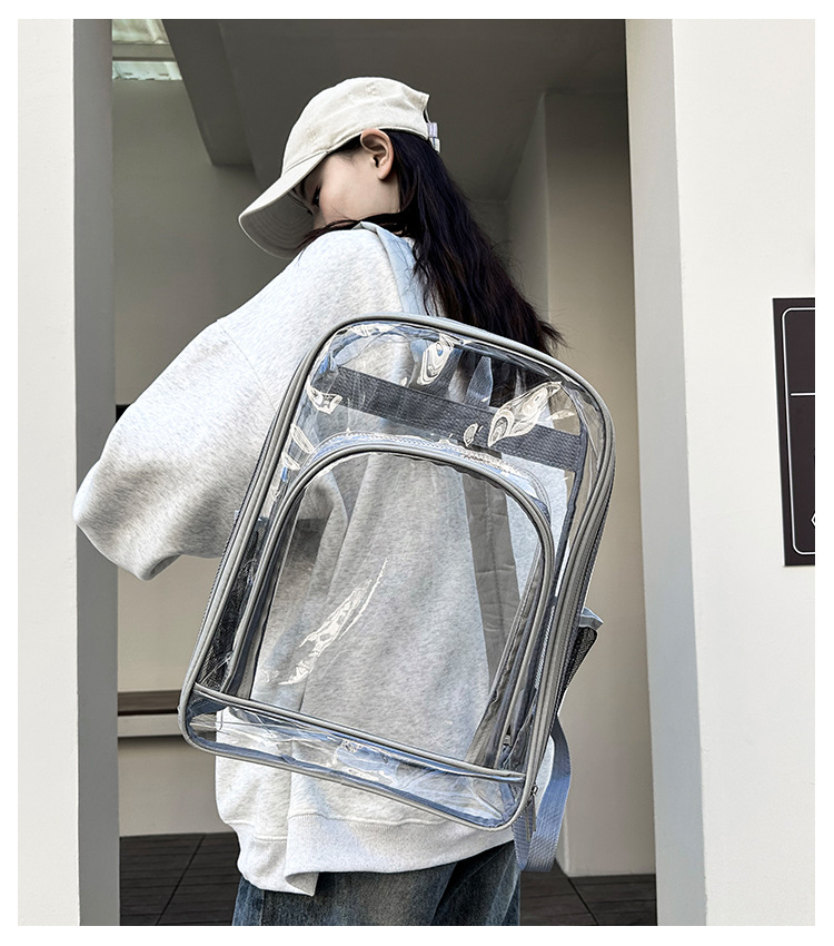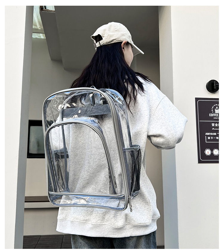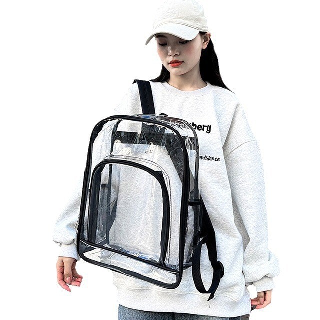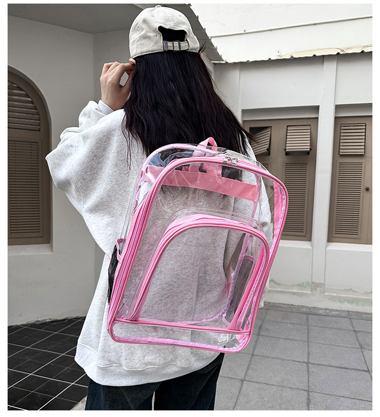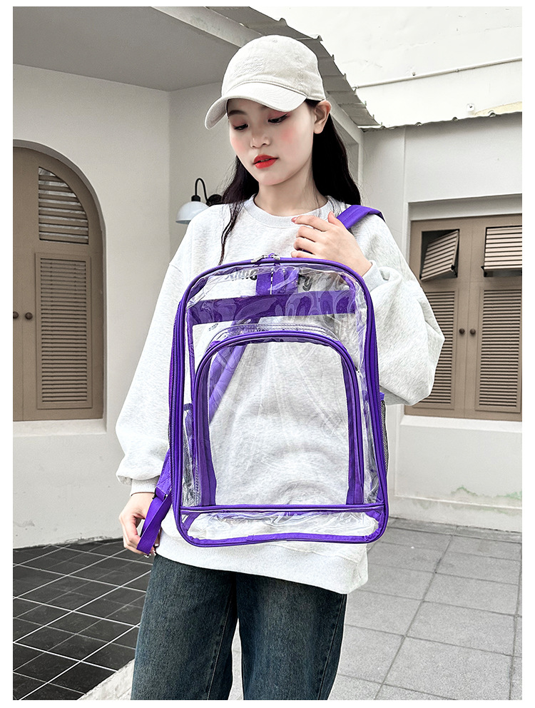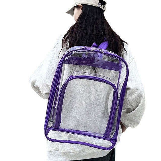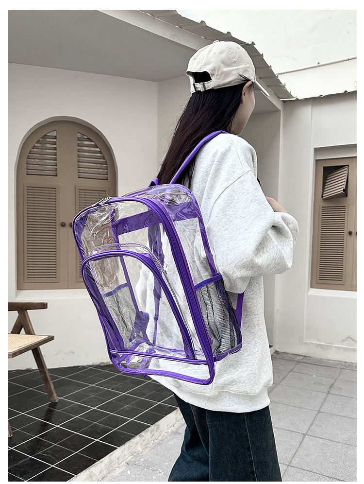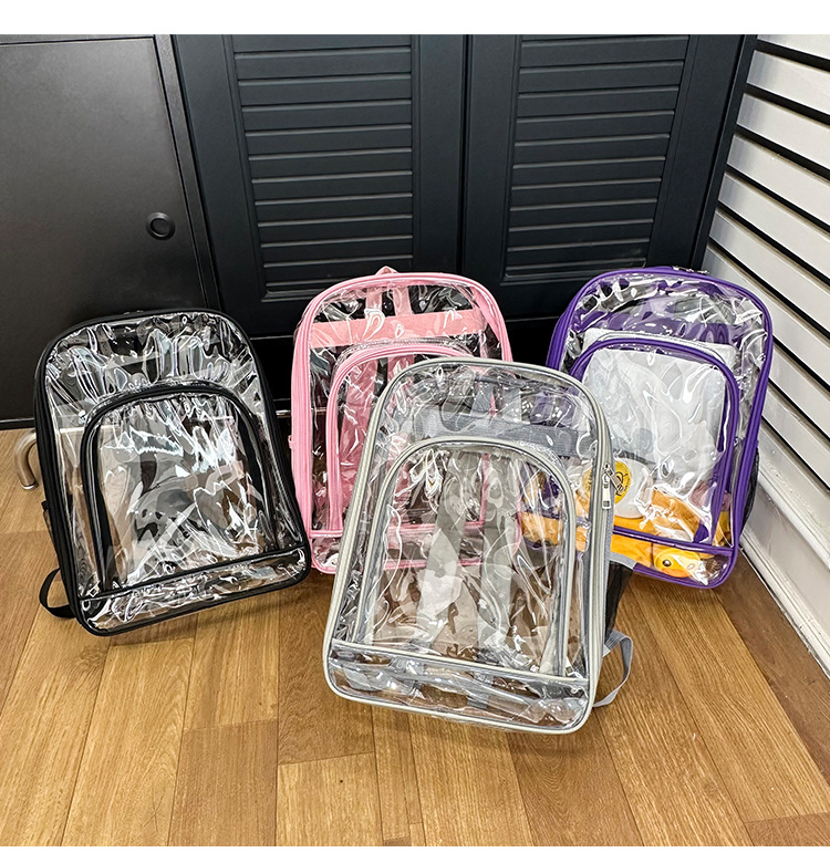 40丝跨境亚马逊环保pvc透明双肩包 时尚防水学生书包透明背包果冻