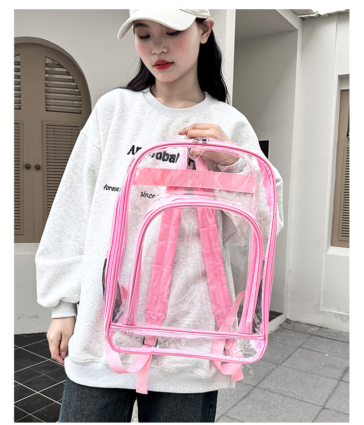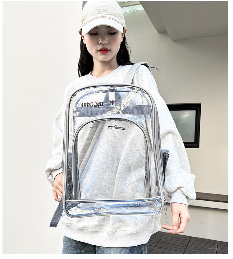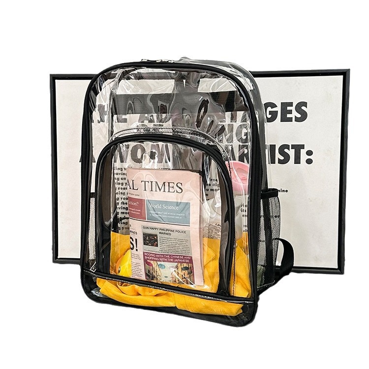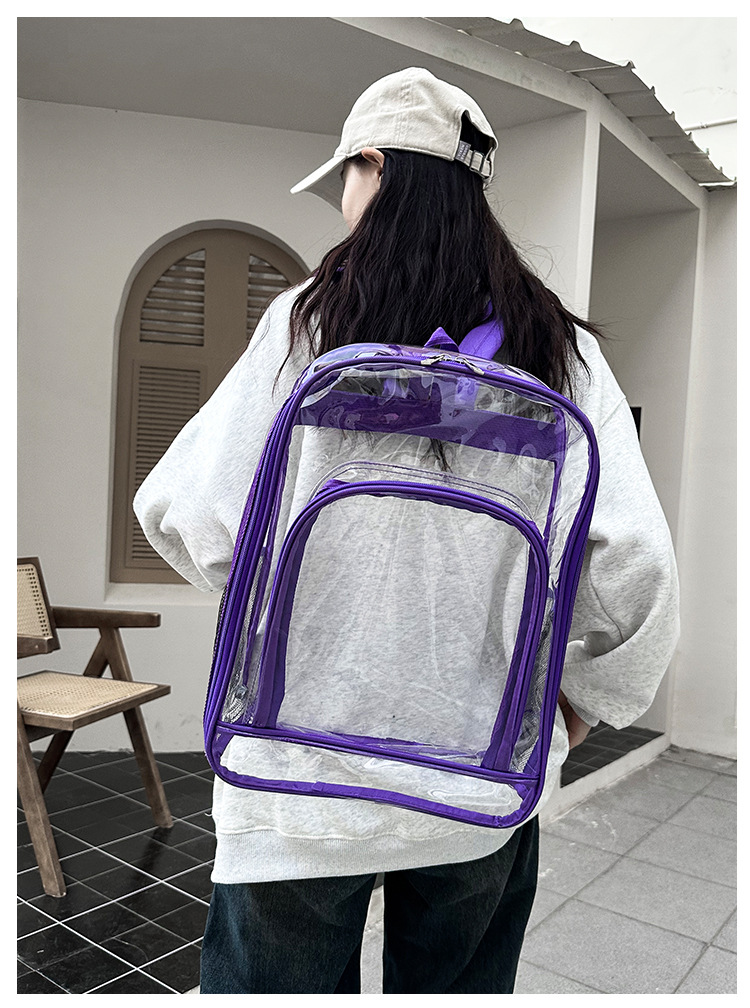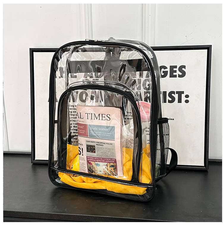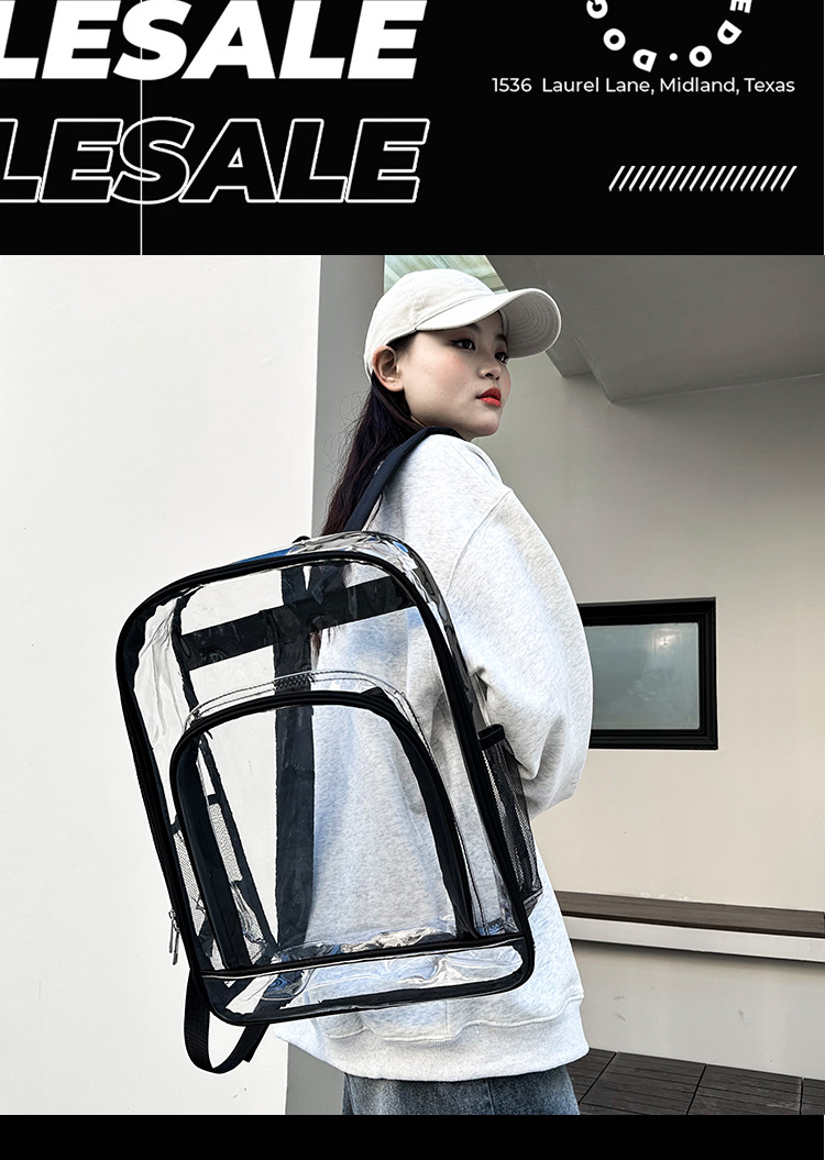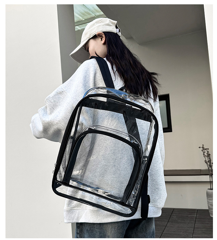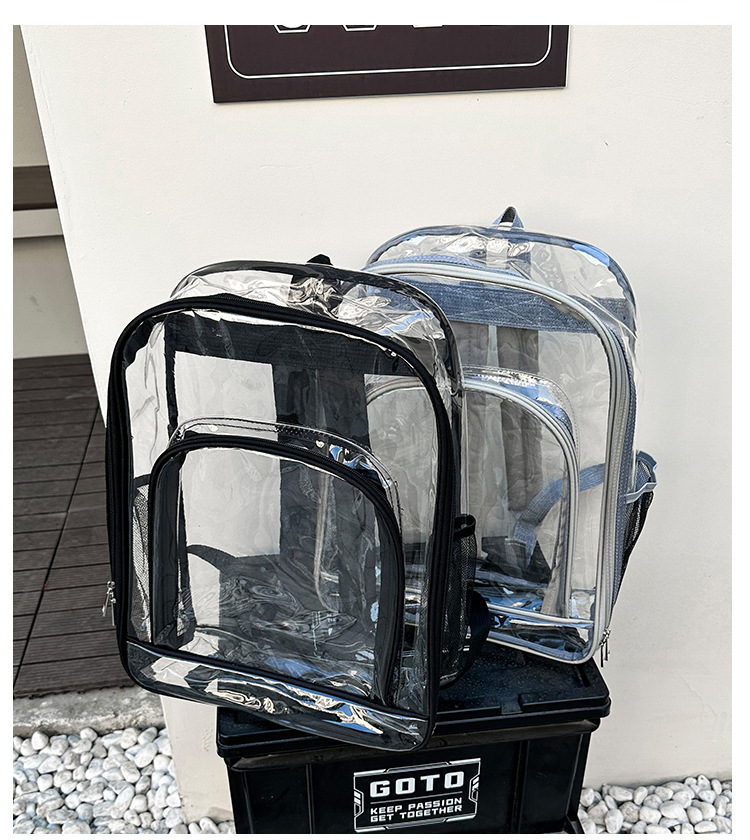 40丝跨境亚马逊环保pvc透明双肩包 时尚防水学生书包透明背包果冻