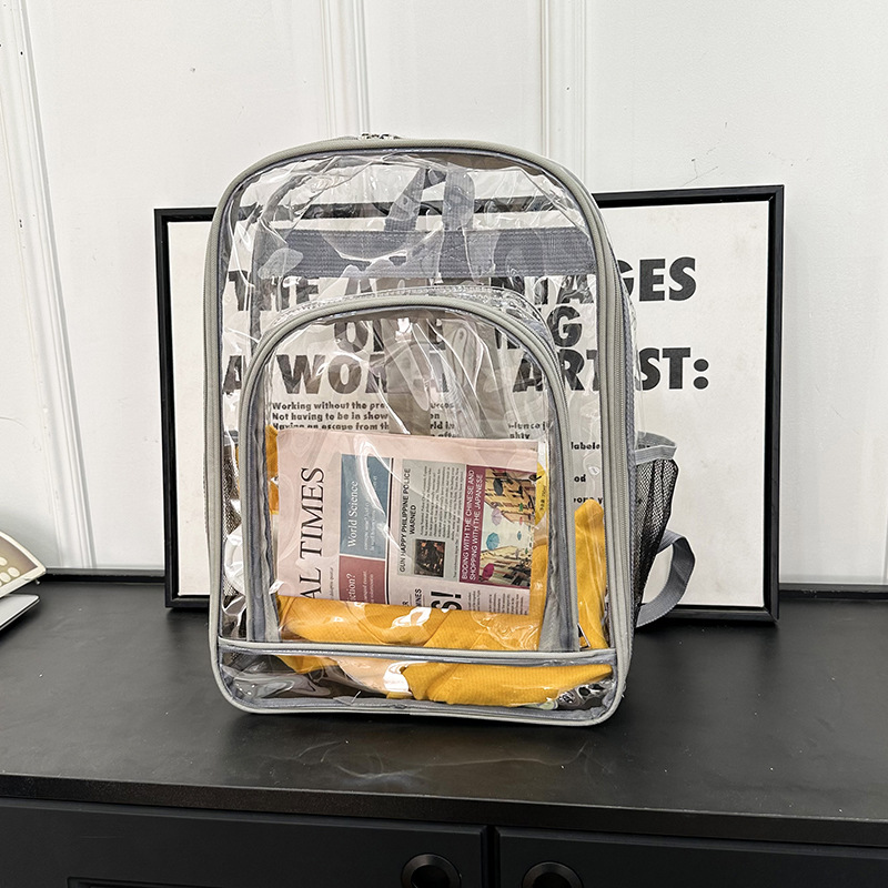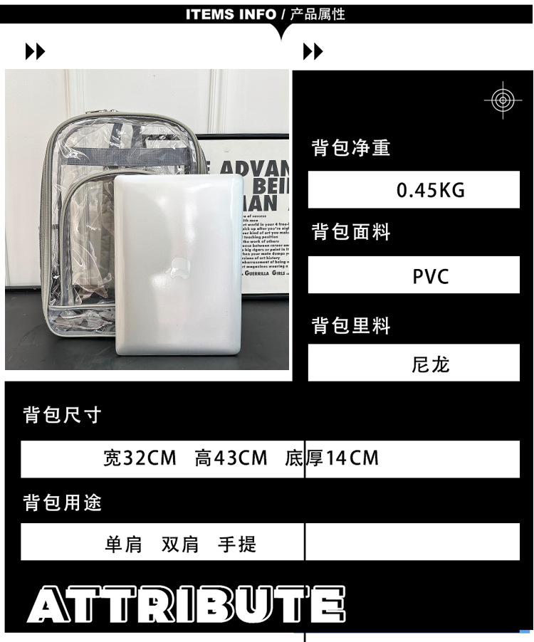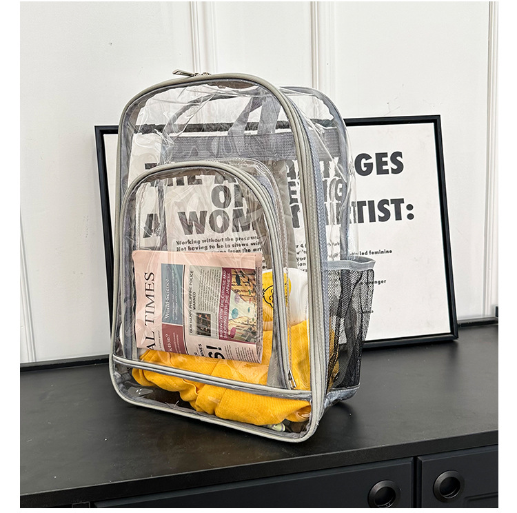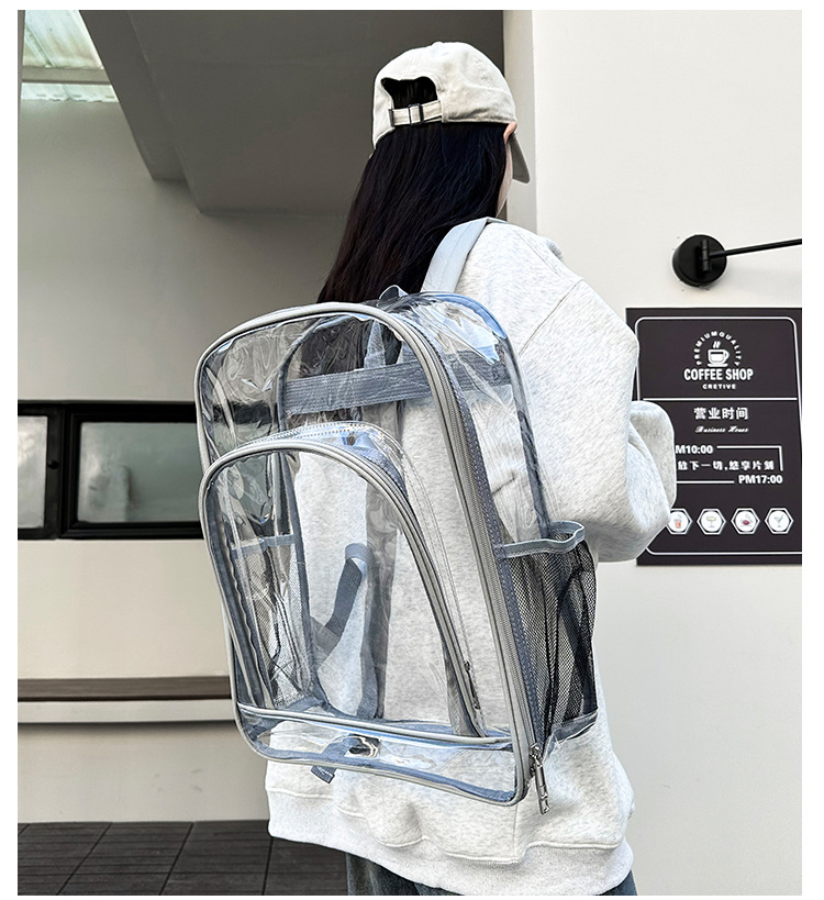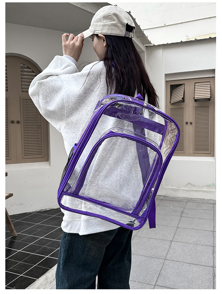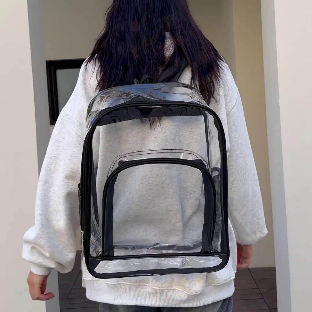 40丝跨境亚马逊环保pvc透明双肩包 时尚防水学生书包透明背包果冻