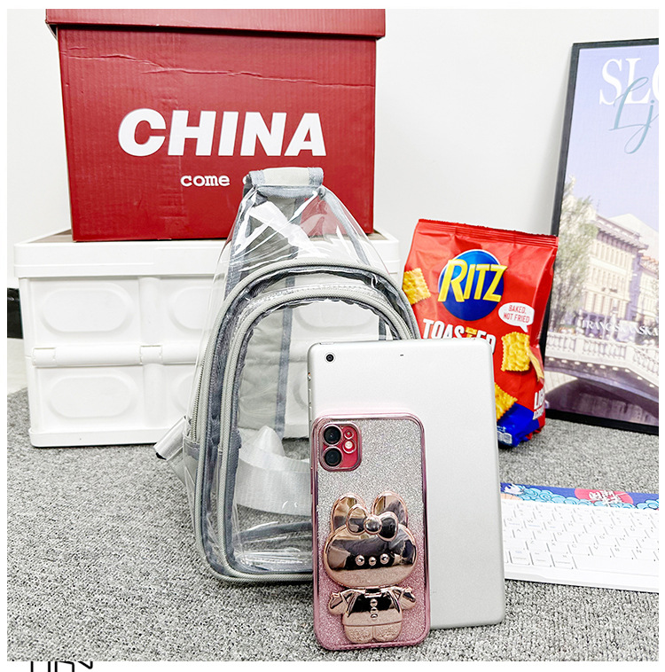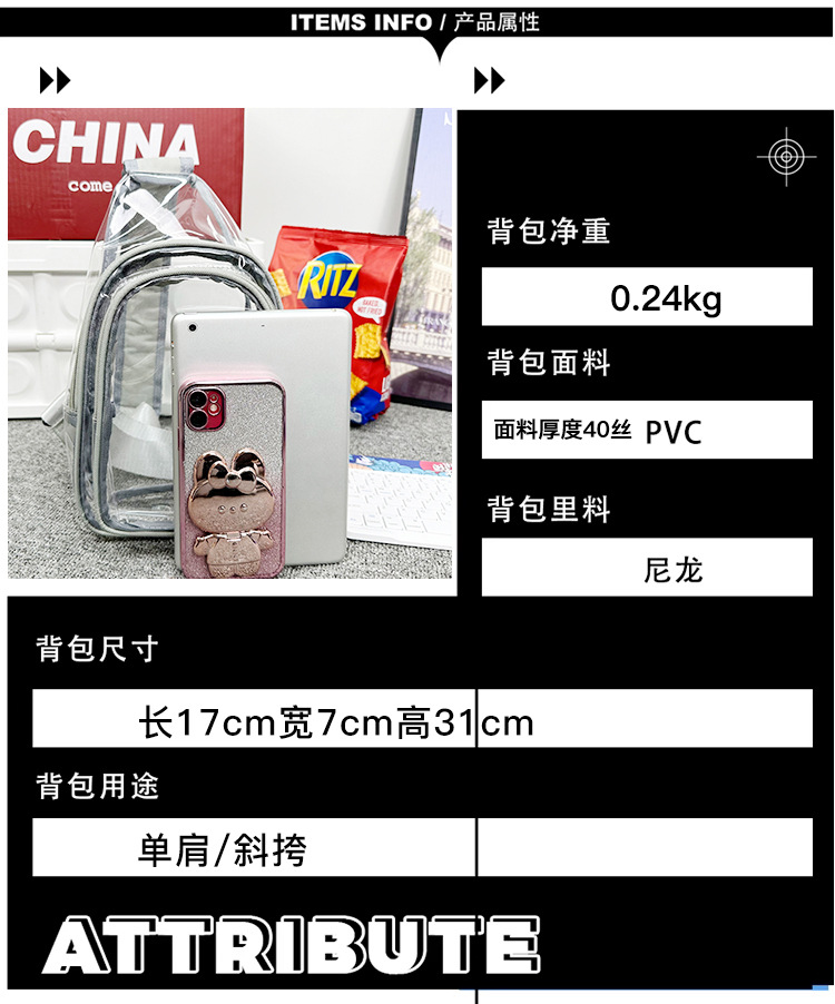 40丝透明胸包男女大容量PVC塑料果冻游泳背包无尘包沙滩防水书包