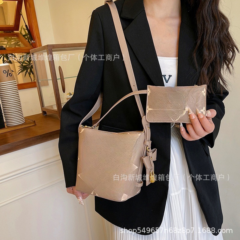 2025跨境新款老花单肩斜挎包两件套女包包袋旅行包高颜值女士包袋