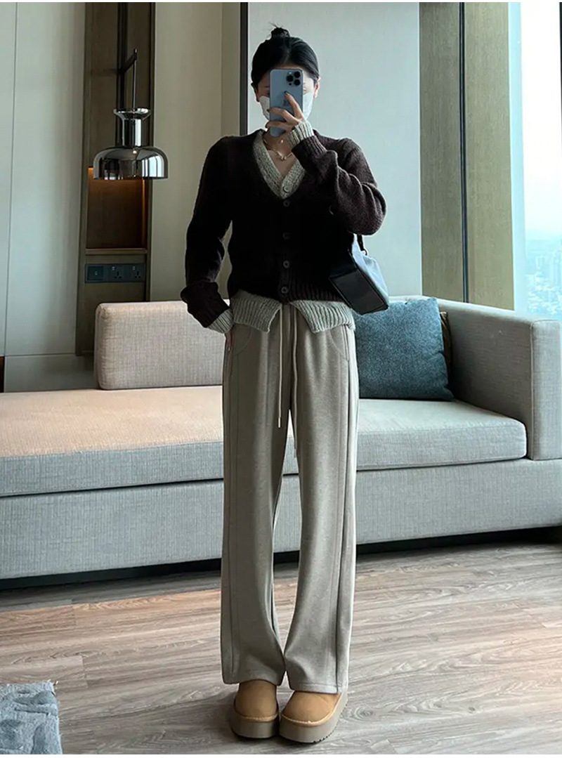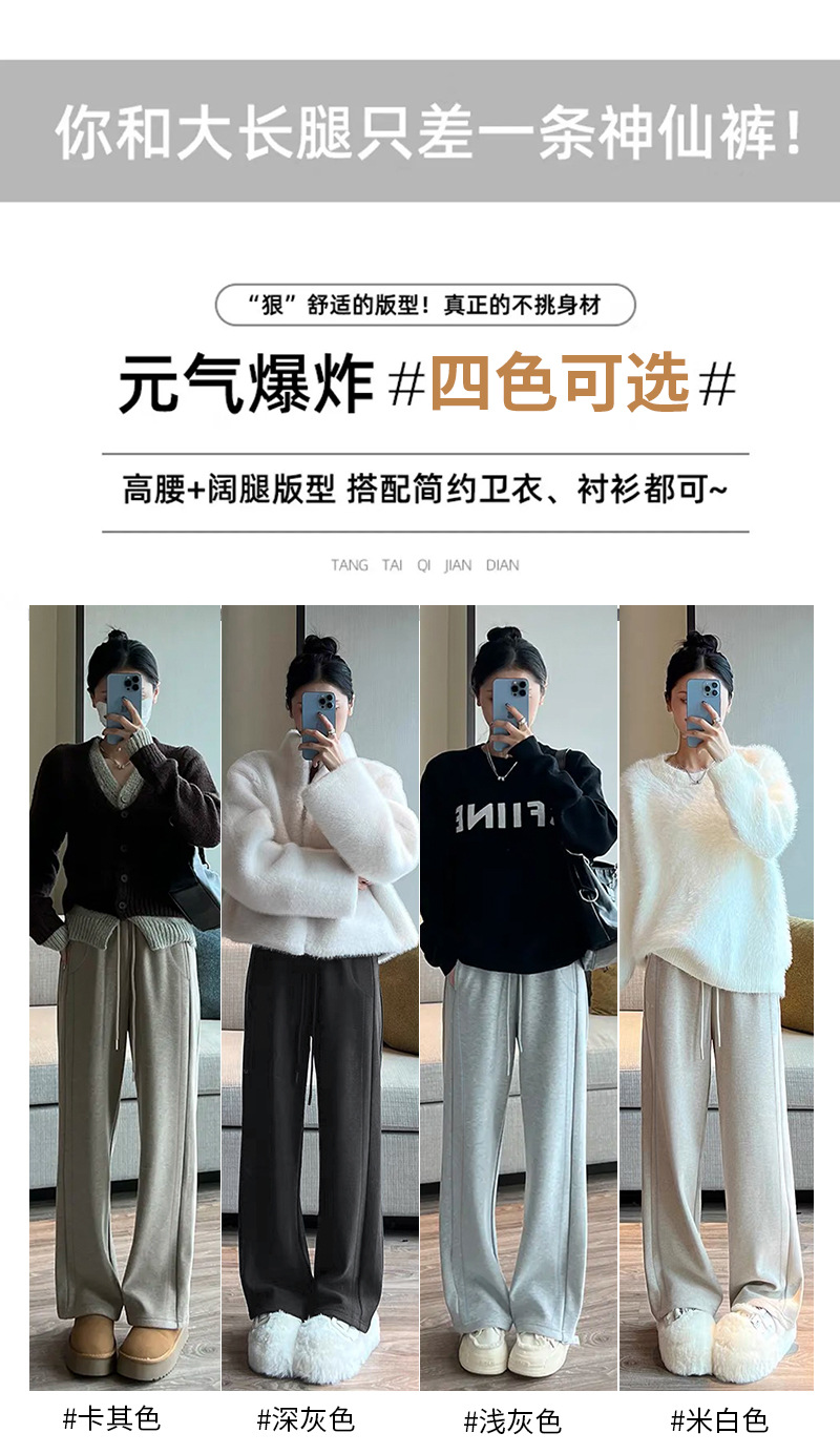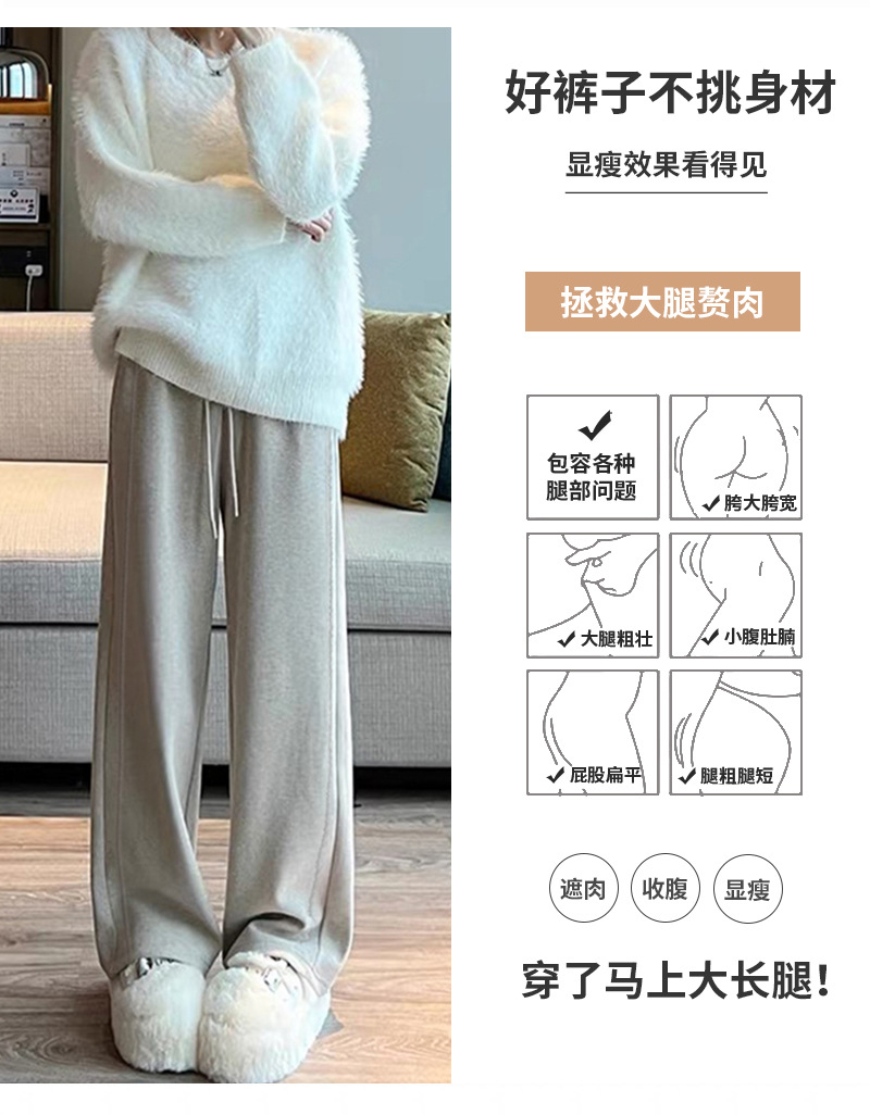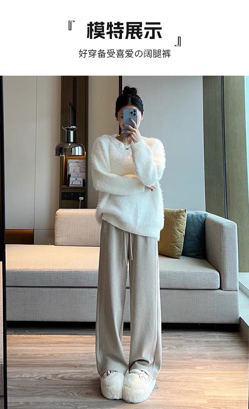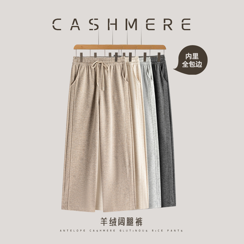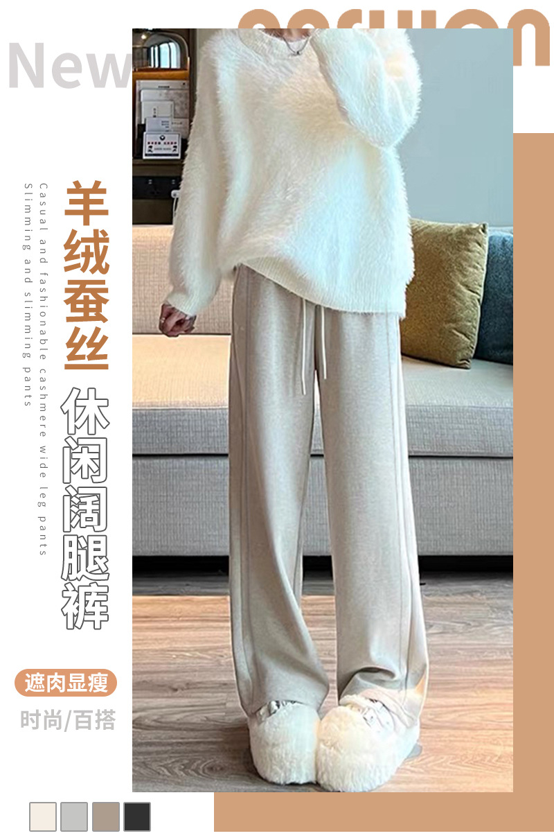 香香爆款秋冬羚羊绒高腰裤子女垂感休闲糯米裤针织蚕丝直筒阔腿裤