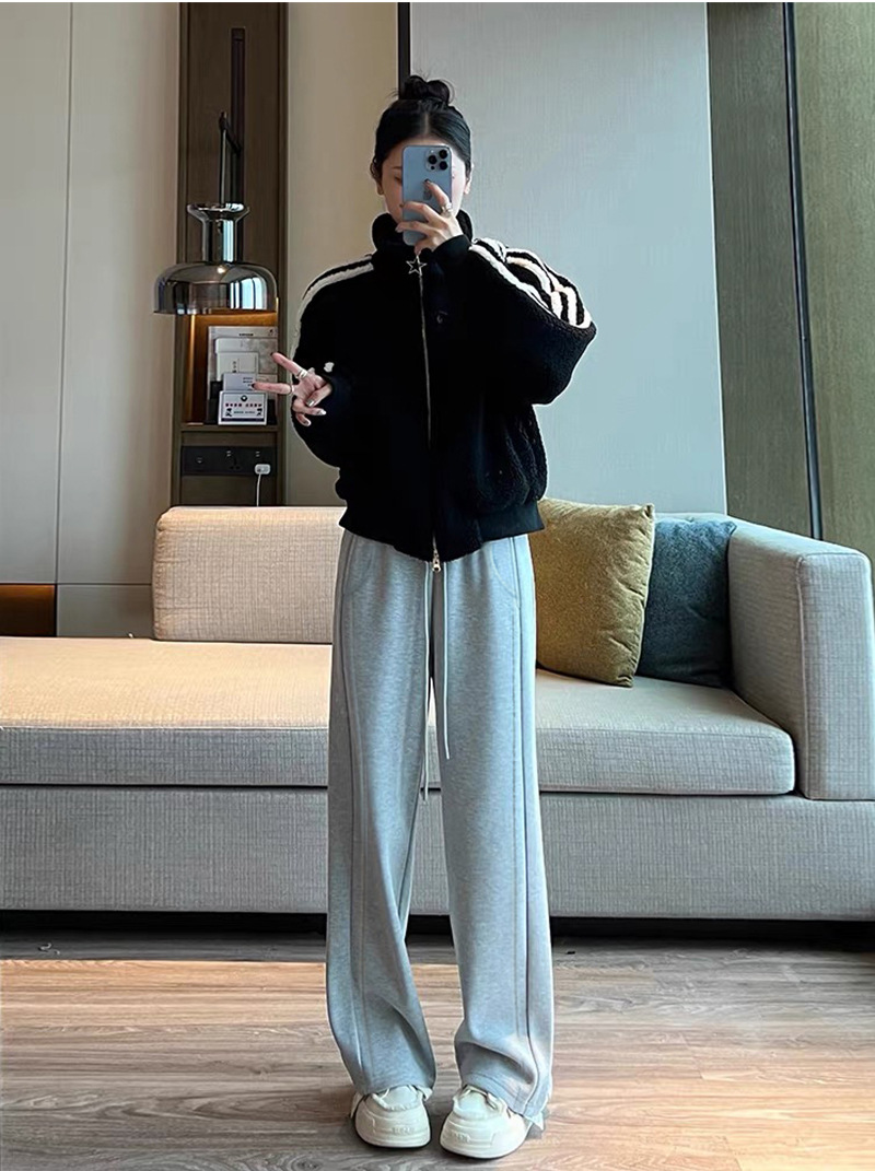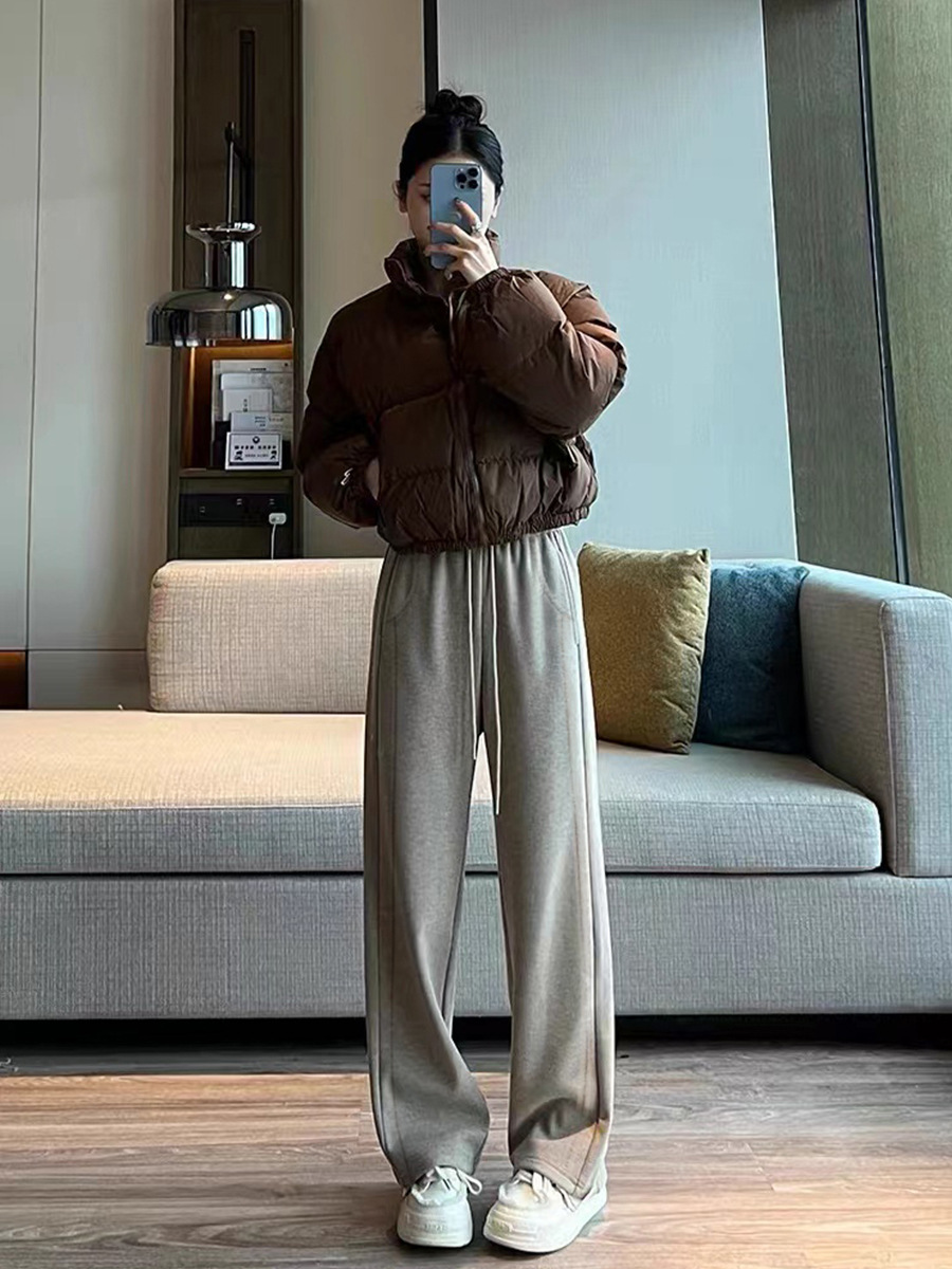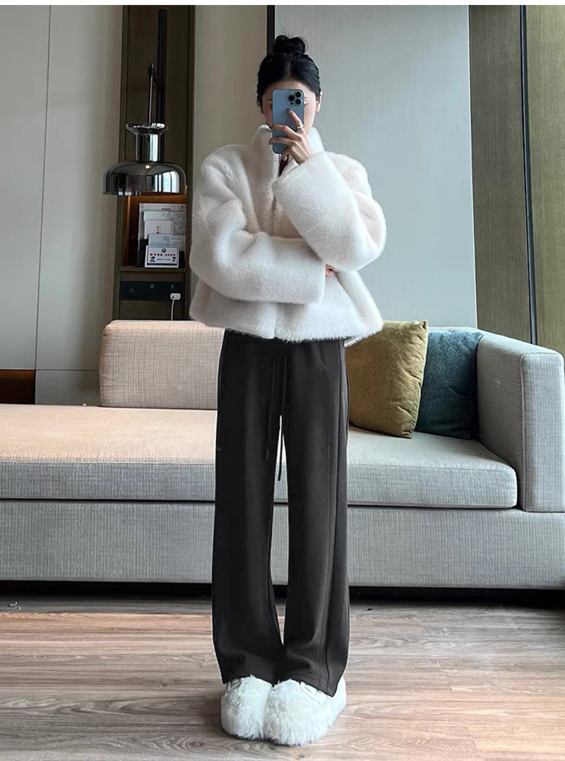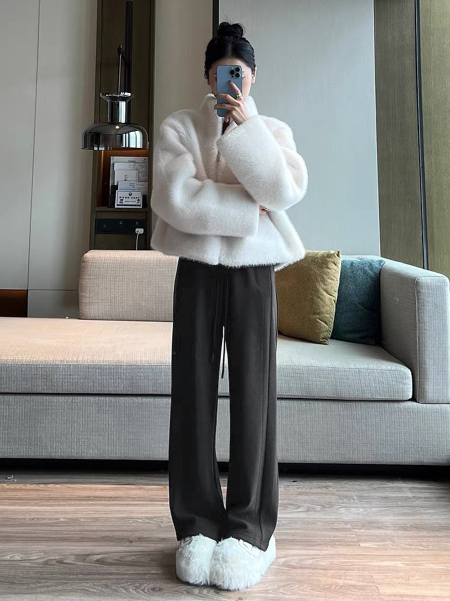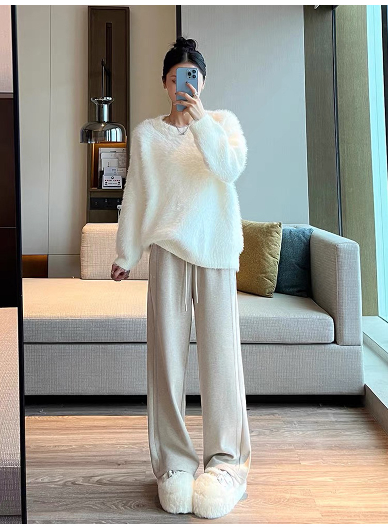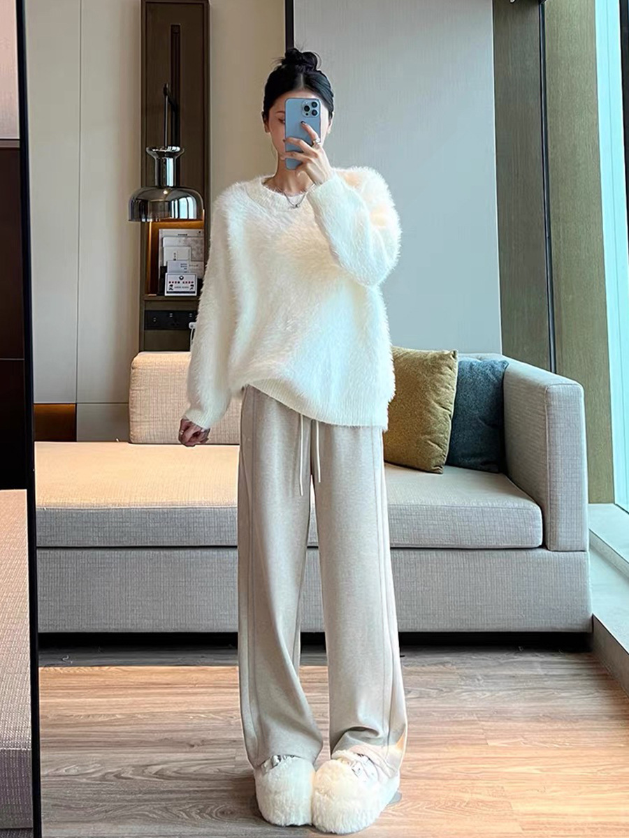 香香爆款秋冬羚羊绒高腰裤子女垂感休闲糯米裤针织蚕丝直筒阔腿裤