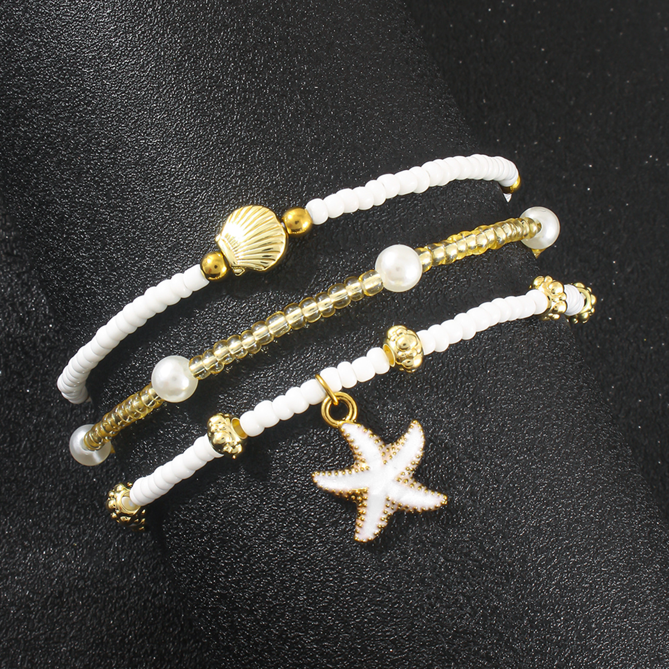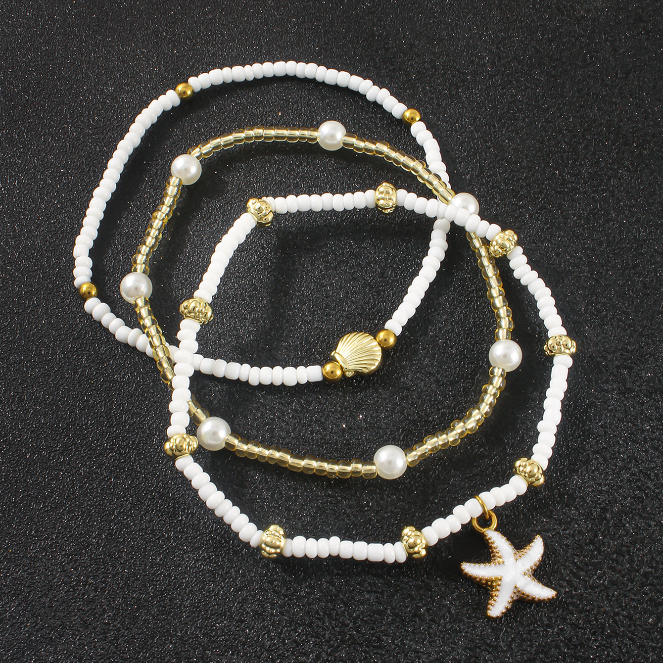 3件跨境欧美时尚个性的女脚链套装海星贝壳造型沙滩脚饰外贸饰品