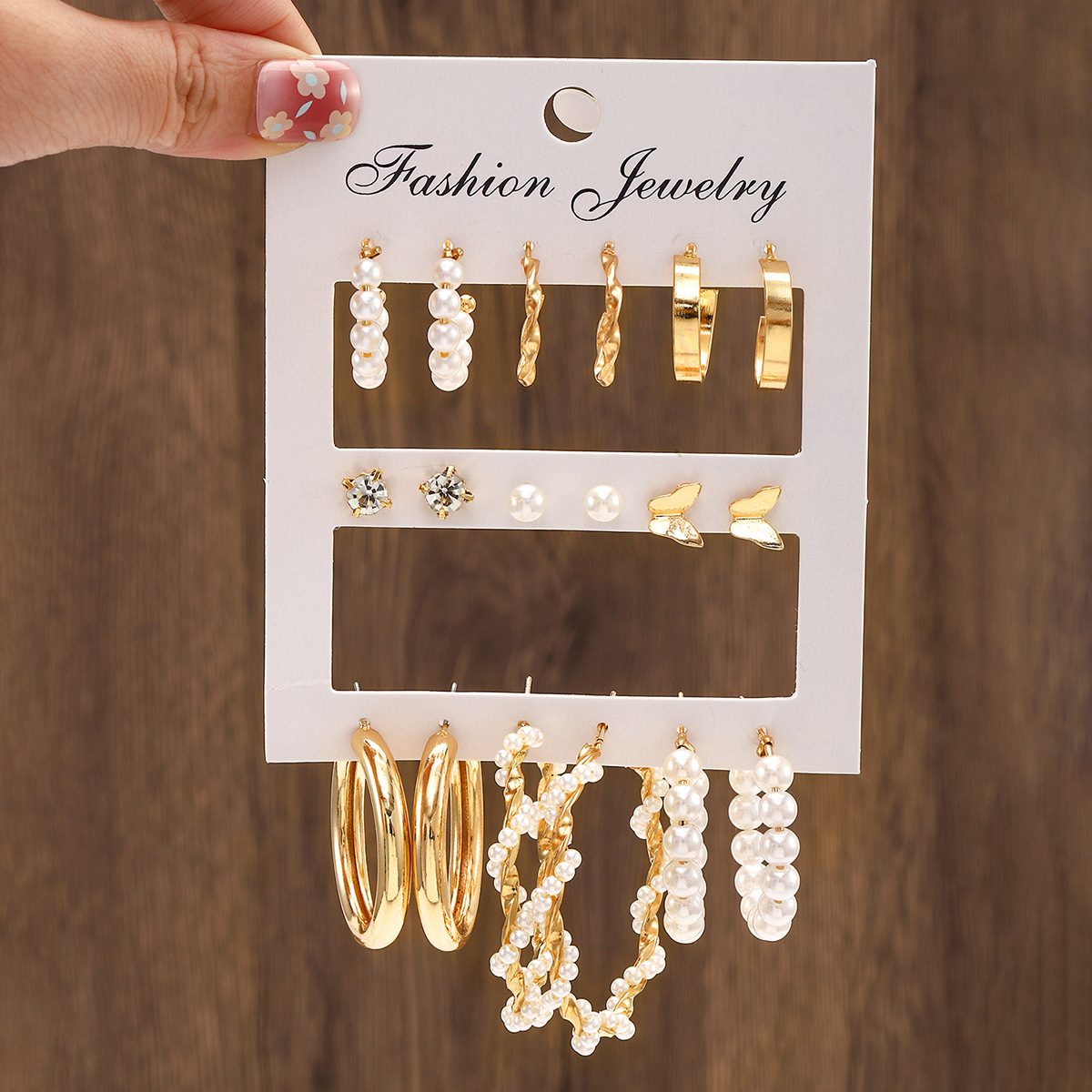 耳环套装组合欧美跨境热销款C型耳环卡装创意仿珍珠镶钻ins耳饰品
