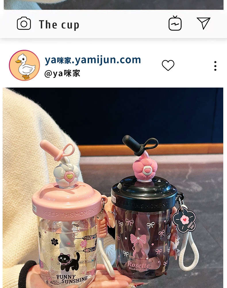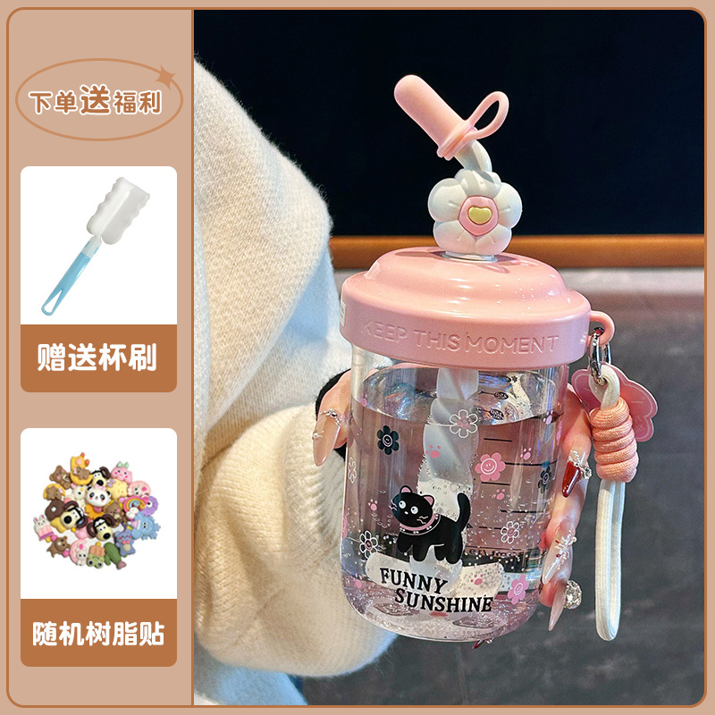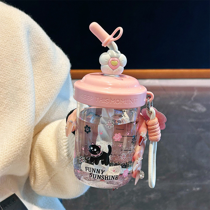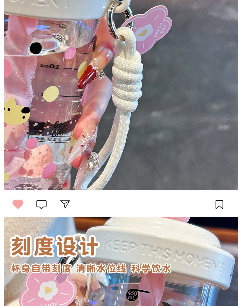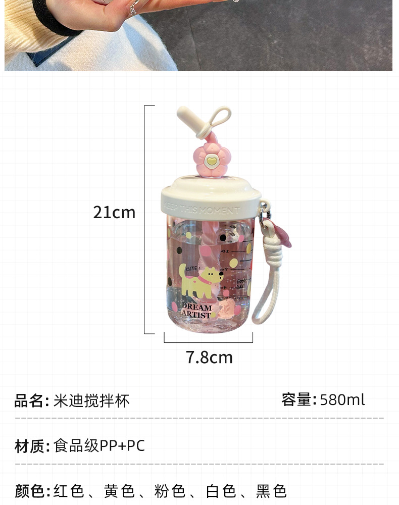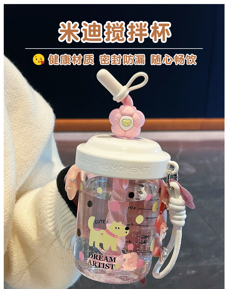 新款高颜值可爱搅拌水杯小巧便携带吸管塑料杯密封防漏带刻度水杯