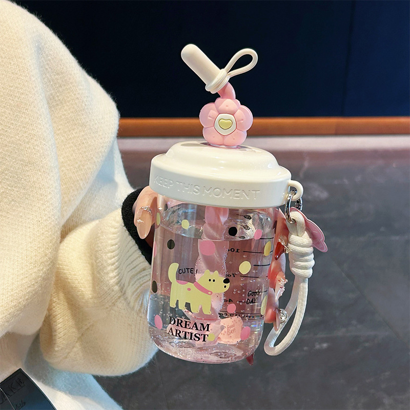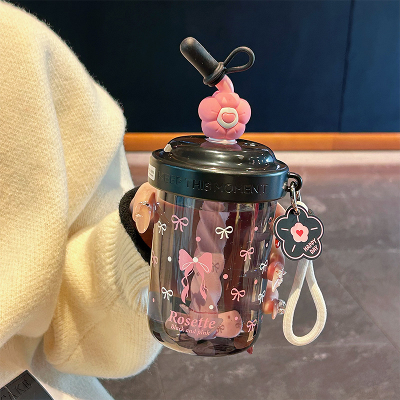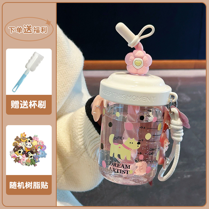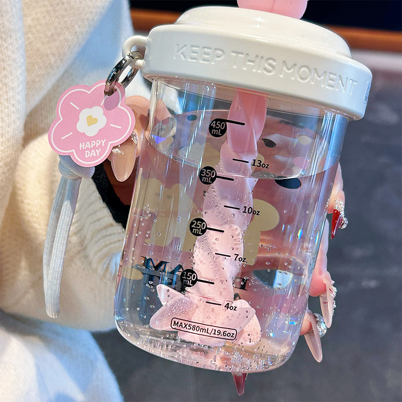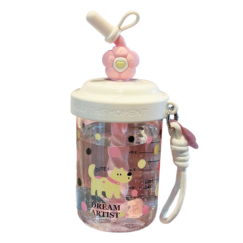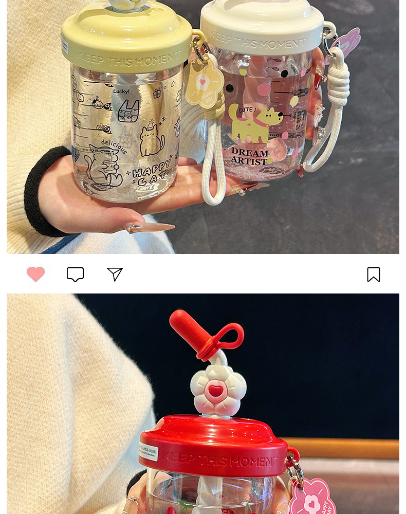 新款高颜值可爱搅拌水杯小巧便携带吸管塑料杯密封防漏带刻度水杯