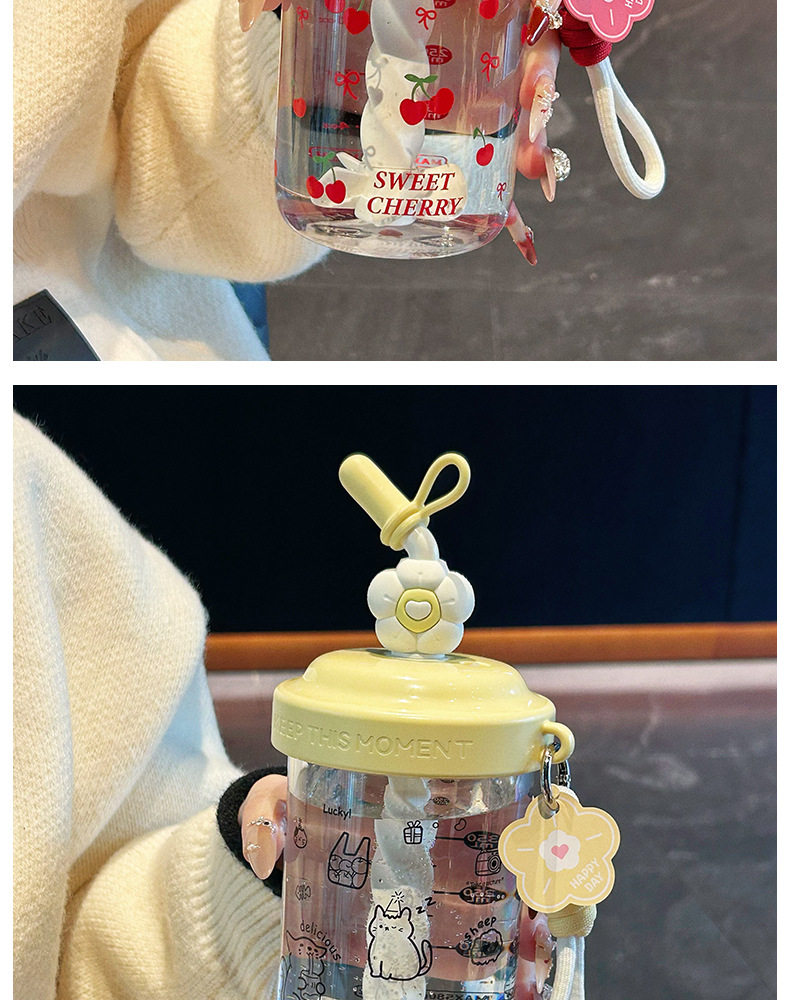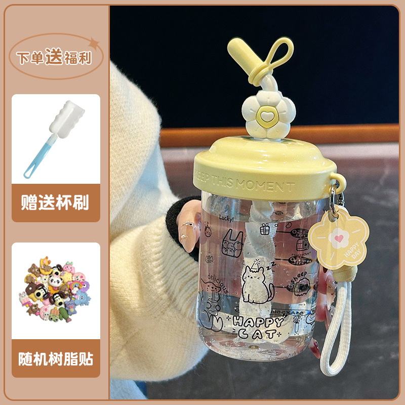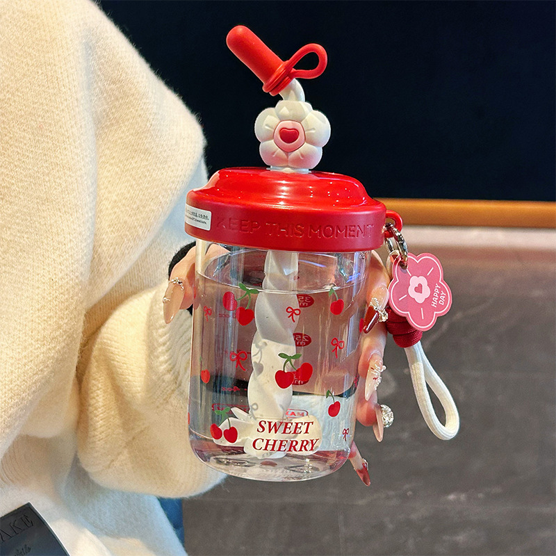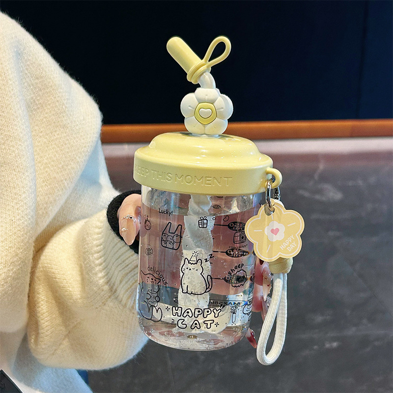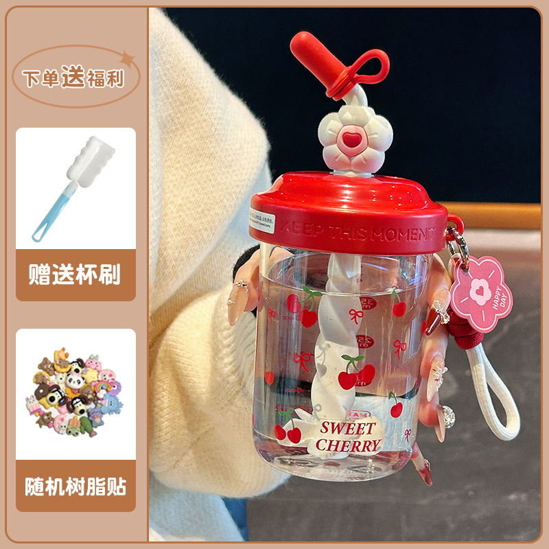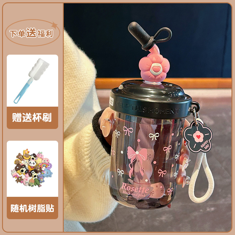 新款高颜值可爱搅拌水杯小巧便携带吸管塑料杯密封防漏带刻度水杯