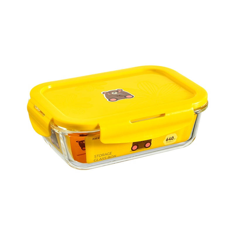 耐热微波炉饭盒玻璃透明保鲜盒密封便当玻璃碗带盖冰箱收纳盒640