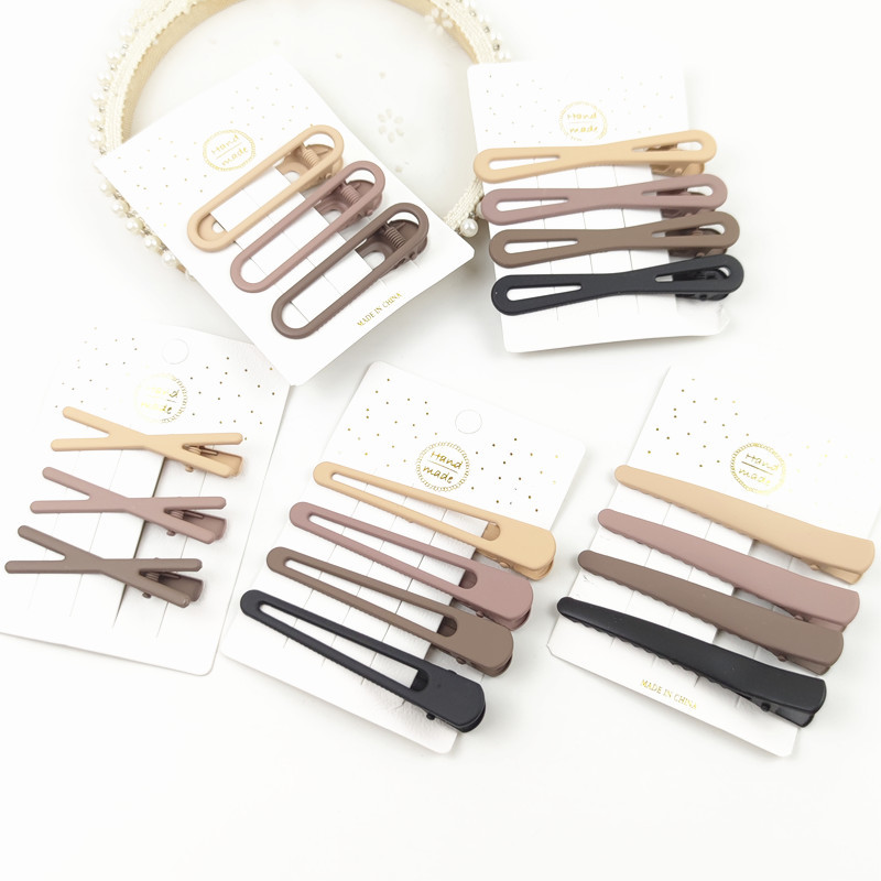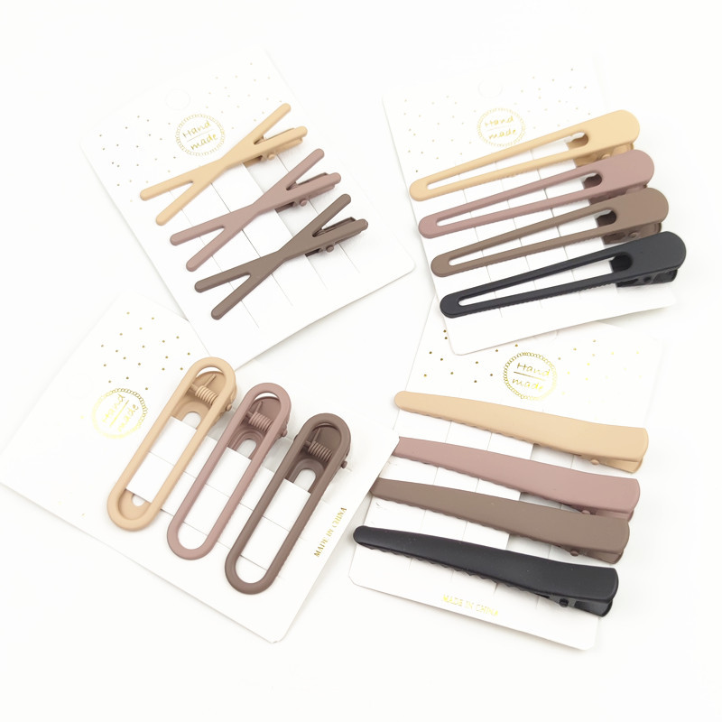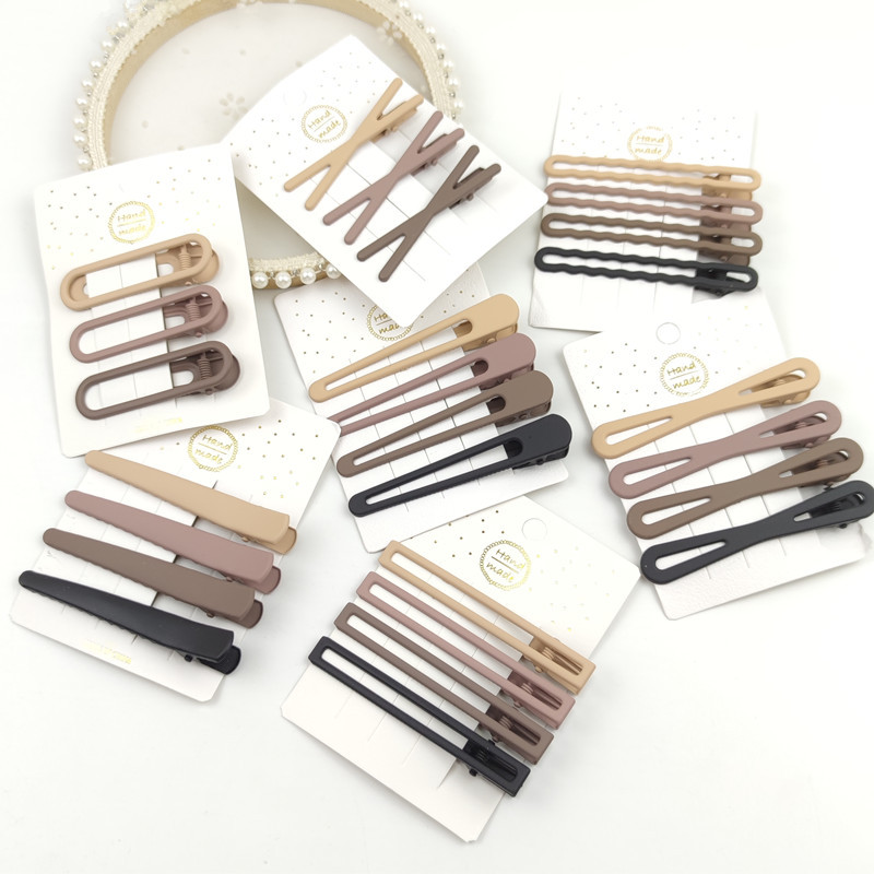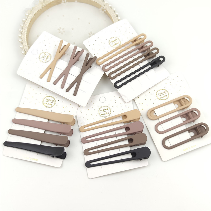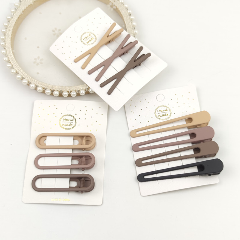 奶茶咖色无痕鸭嘴发夹女前额侧边碎发夹刘海夹磨砂发卡一字夹头饰