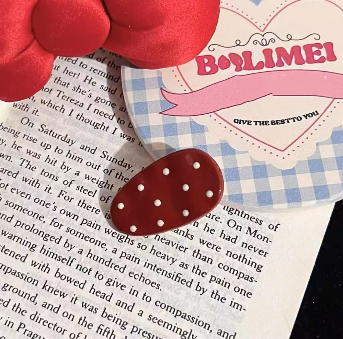 甜美波点蝴蝶结椭圆发夹女前额侧边刘海夹碎发鸭嘴夹儿童发卡头饰