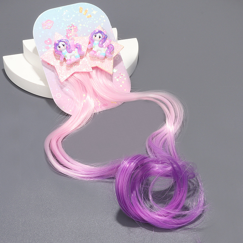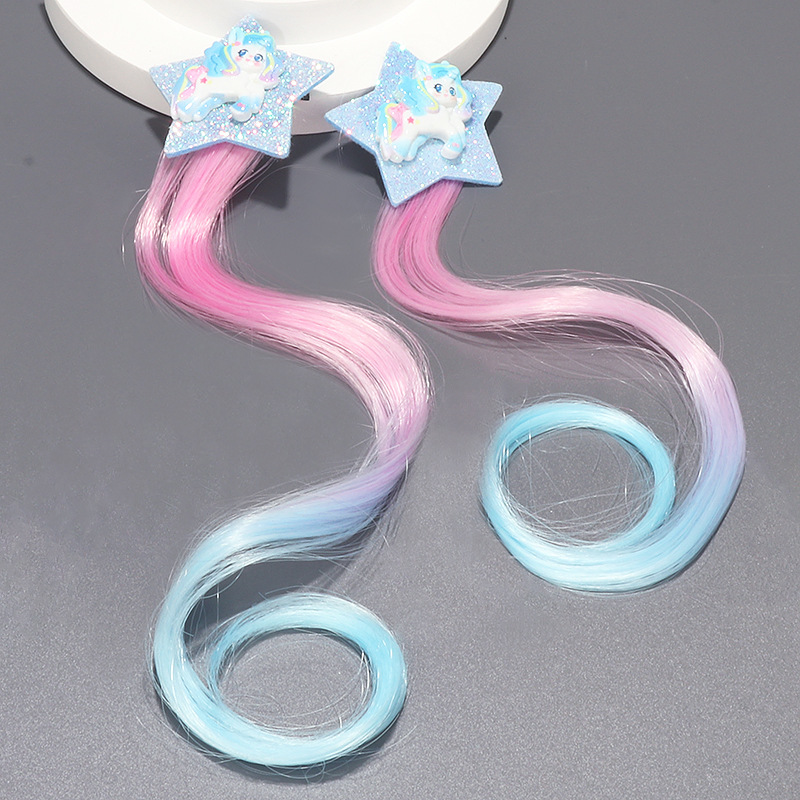 小马宝莉儿童假发辫子挑染公主可爱卡通五角星卷发发夹编发头饰品