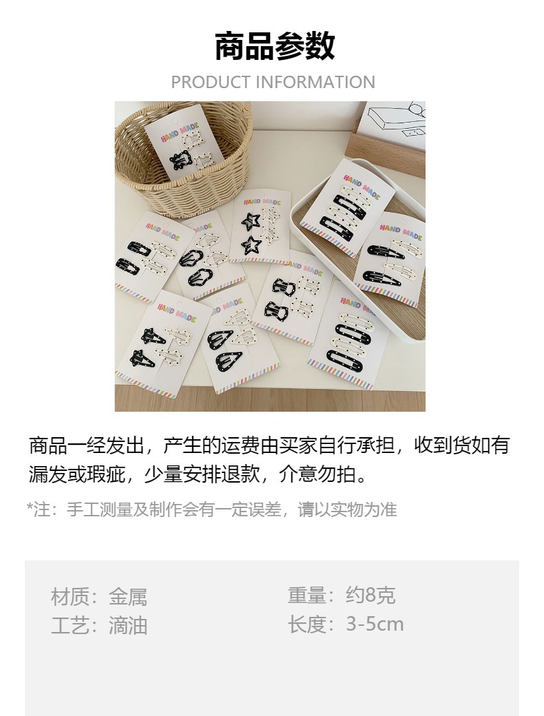 新款黑白波点bb夹儿童迷你可爱星星Y2K发夹金属彩点云朵夹子发饰