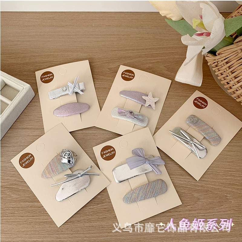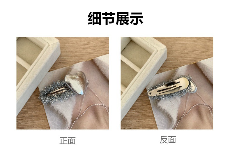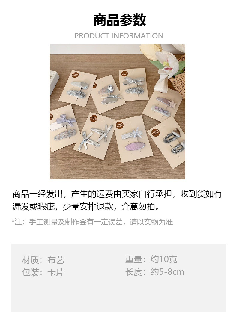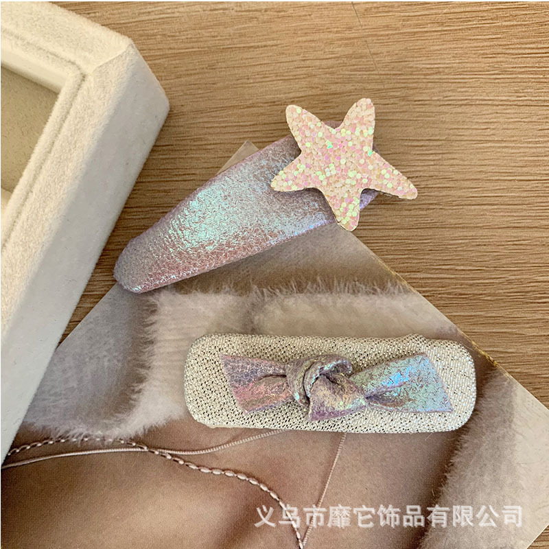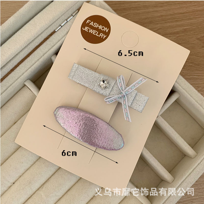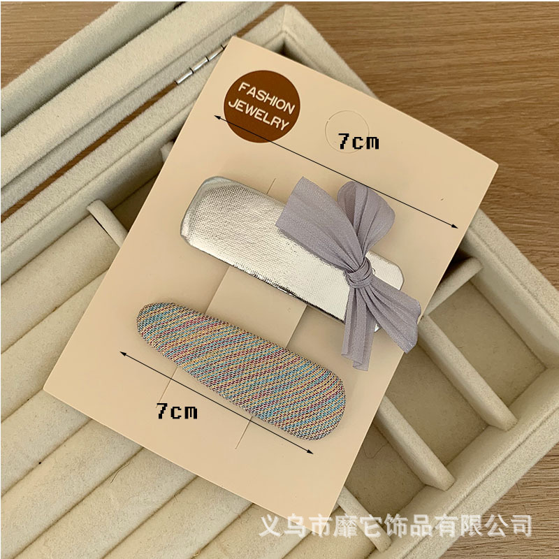 日韩银色系甜美可爱bb夹儿童皮质蝴蝶结发卡灰色甜酷侧边发夹女童