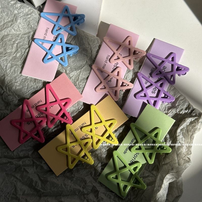两件套彩色星星发夹女侧边刘海发卡前额碎发鸭嘴夹子可爱儿童头饰