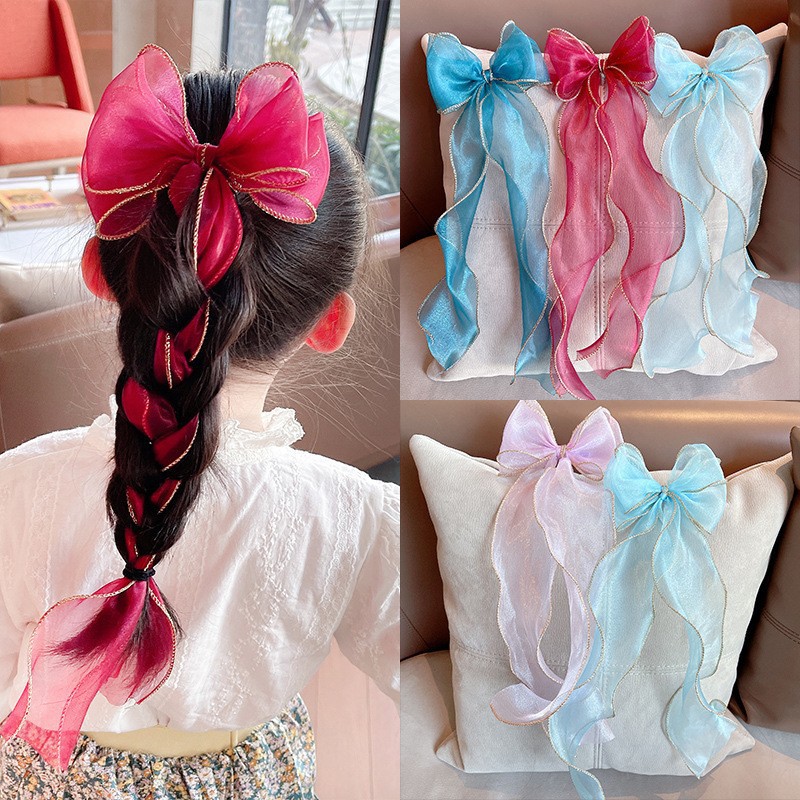 蝴蝶结头饰儿童夹子公主超仙韩国韩版编发绳潮洋气彩带飘带花发卡