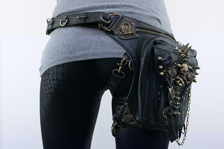 TEMU跨境新款蒸汽朋克复古机车包 个性铆钉单肩斜挎包女 手机腰包