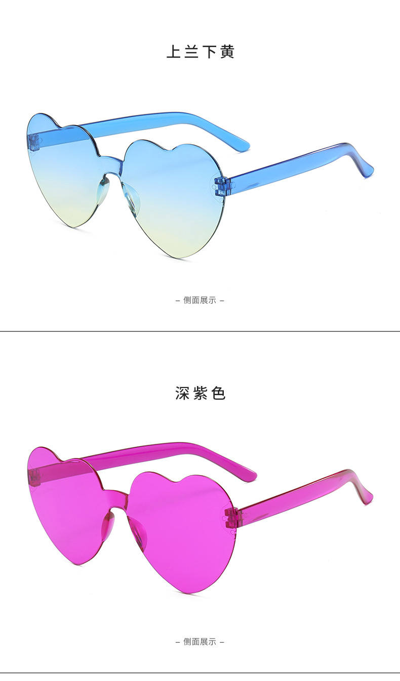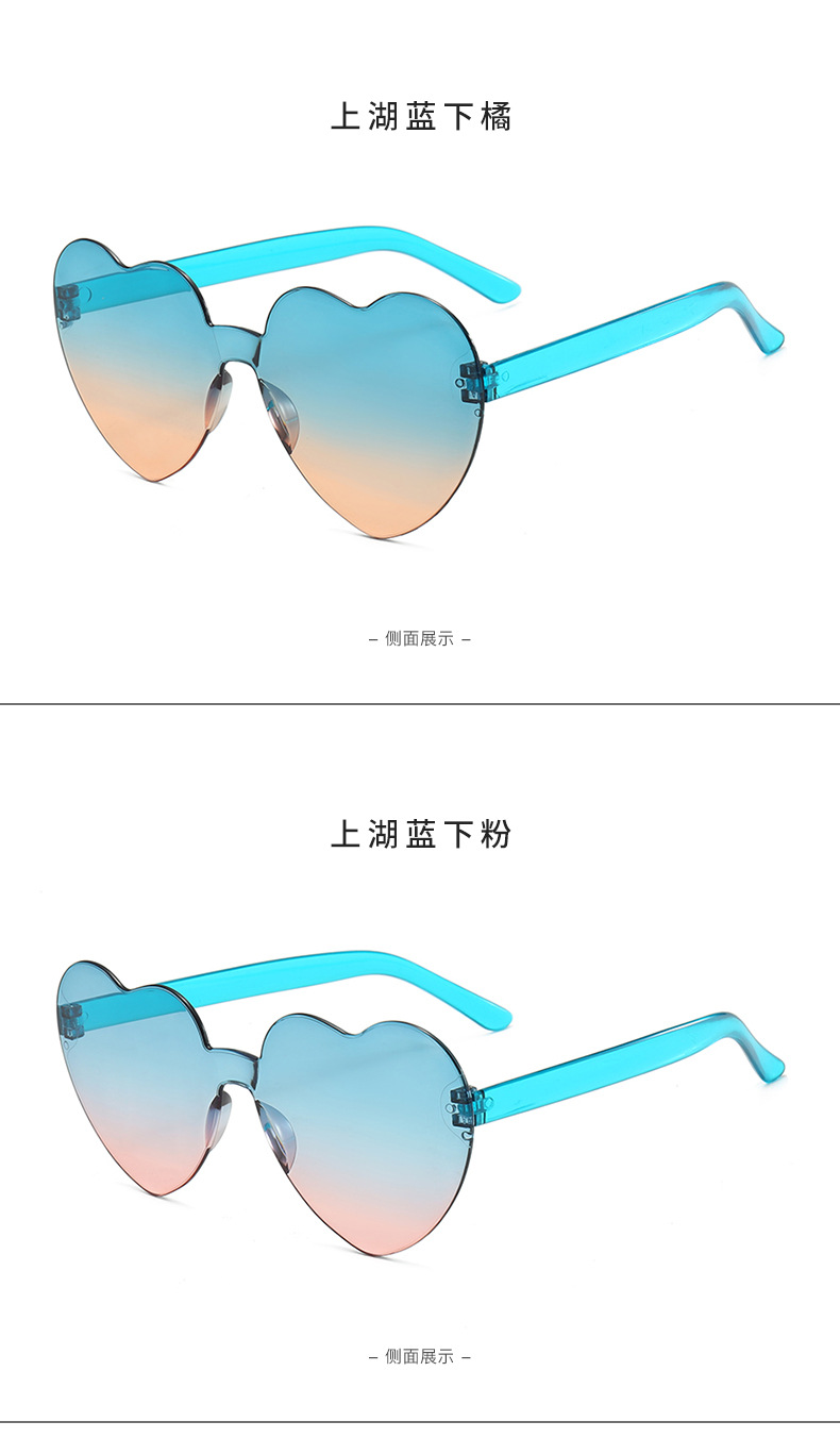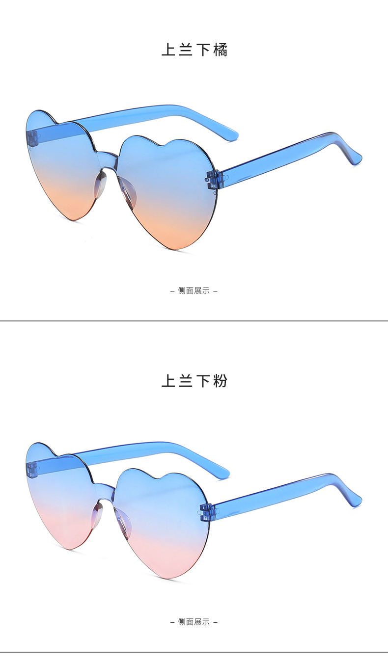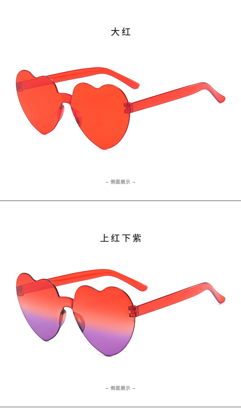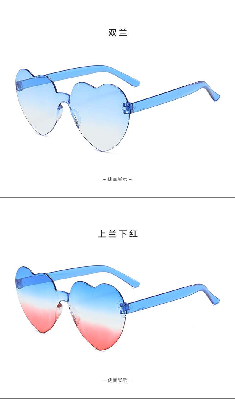 新款跨境桃心太阳镜爱心眼镜欧美潮流无框连体海洋片炫目色彩墨镜